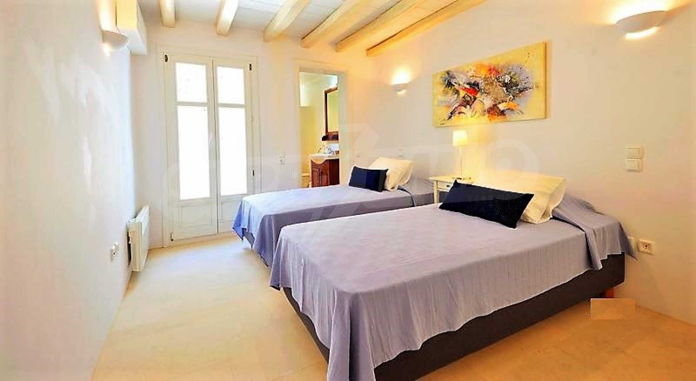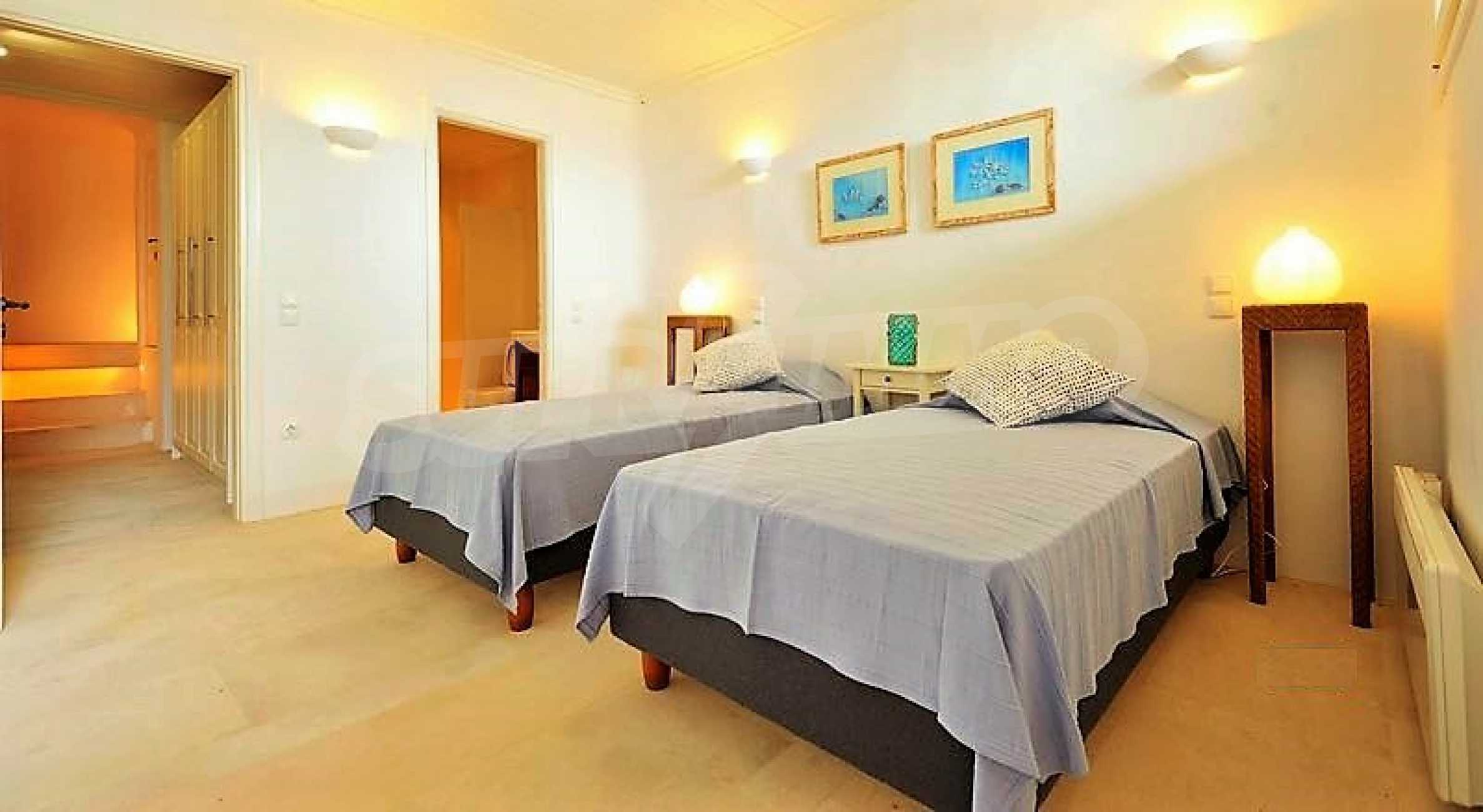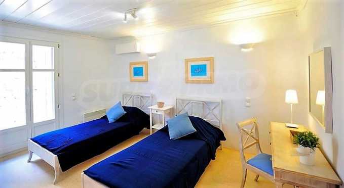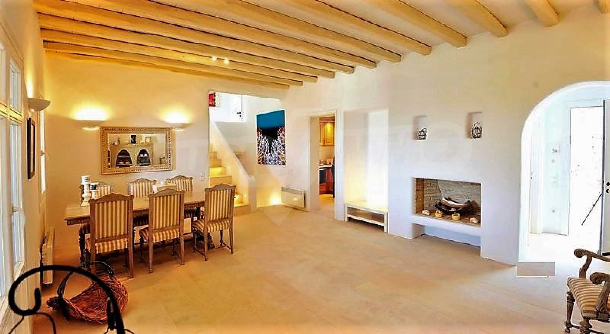 Вилла площадью 350 кв. метров. Предлагаемая недвижимость построена в 2011. Камин, отопление кондиционером и отопление на электроконвекторах. Обеспечено кондиционирование следующего типа: инвенторные кондиционеры. Армированная входная дверь, двойной стеклопакет, деревянные оконные рамы, межкомнатные двери, паркетный пол, покрашенные стены, стены покрашенные латексной краской и терракотовый пол имеются в предлагаемой недвижимости. Недвижимость включает следующую меблировку и оснащение: встроенная кухня, духовка, кондиционер, меблировку, оборудованная ванная комната, стиральная машина и холодильник. Из основных коммуникаций обеспечены электричество и вода. Балконы, ванная комната, ванная комната с туалетом, веранда, гараж, бассейн, интернет, интернет Wi-Fi, система охранной сигнализации и телефон имеются в наличии среди прочих обозначенных характеристик предлагаемого объекта, что обеспечит дополнительные удобства для пользования. Виды на бассейн, виды на внутренний двор, виды на залив, виды на пляж и виды на холмы открываются с недвижимости, раскрывая часть красот живописной Болгарии.