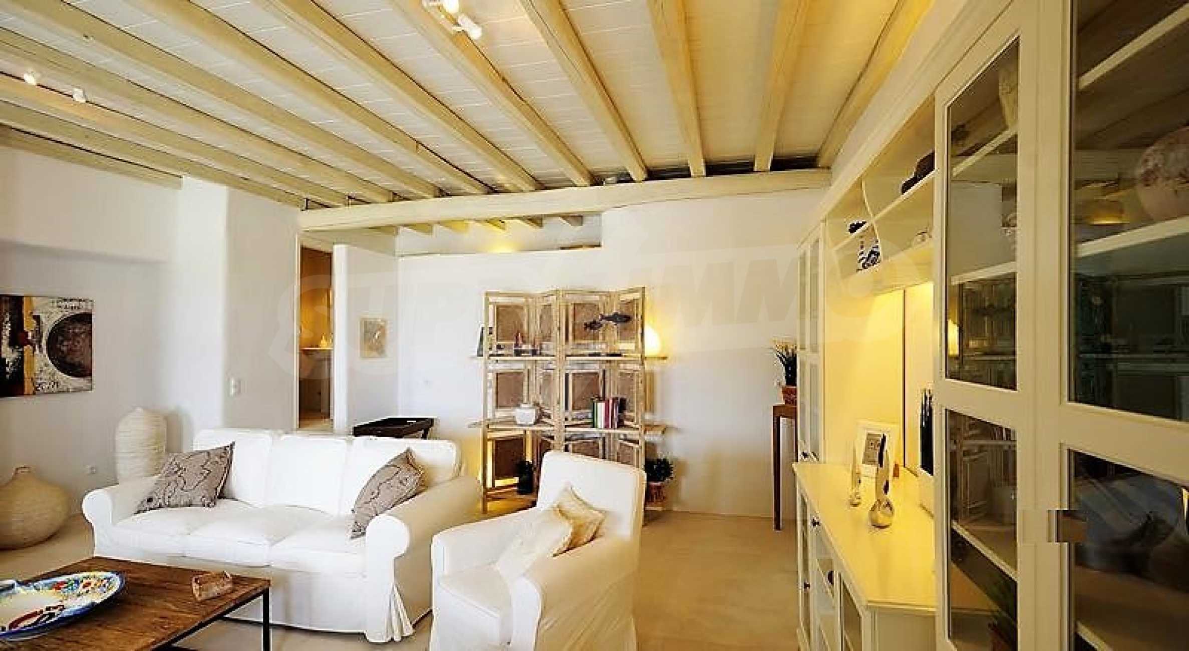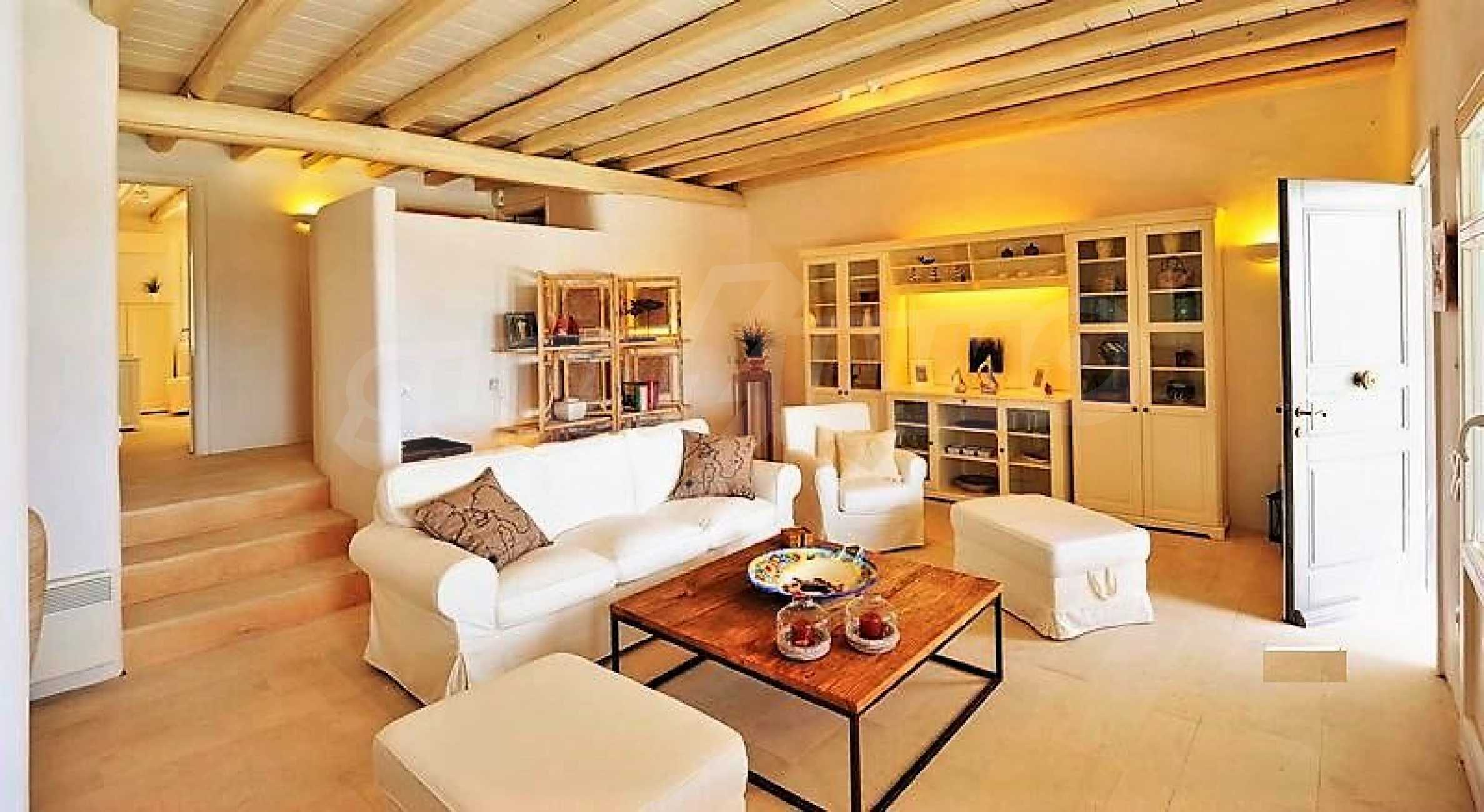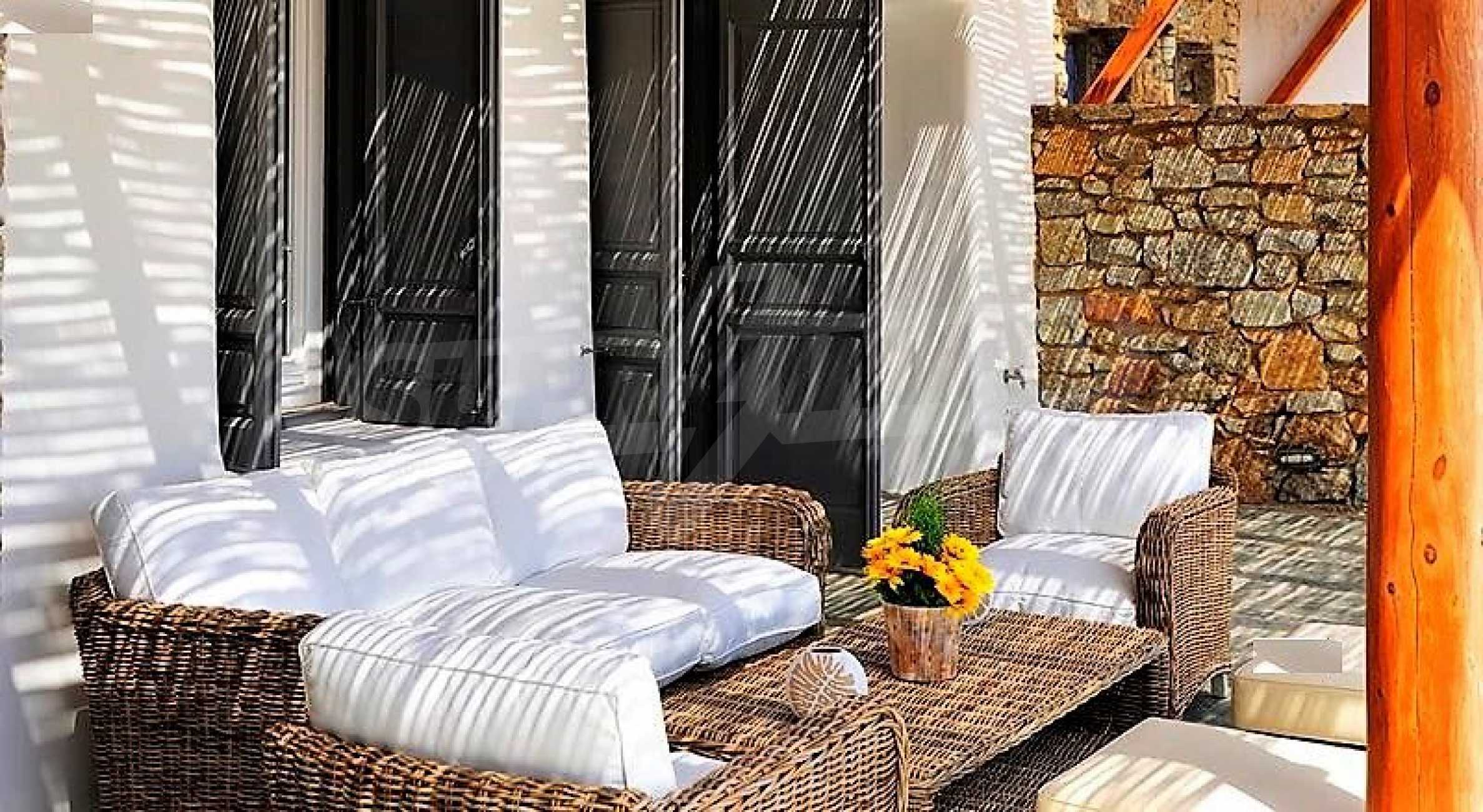 Вилла площадью 350 кв. метров. Предлагаемая недвижимость построена в 2011. Камин, отопление кондиционером и отопление на электроконвекторах. Обеспечено кондиционирование следующего типа: инвенторные кондиционеры. Армированная входная дверь, двойной стеклопакет, деревянные оконные рамы, межкомнатные двери, паркетный пол, покрашенные стены, стены покрашенные латексной краской и терракотовый пол имеются в предлагаемой недвижимости. Недвижимость включает следующую меблировку и оснащение: встроенная кухня, духовка, кондиционер, меблировку, оборудованная ванная комната, стиральная машина и холодильник. Из основных коммуникаций обеспечены электричество и вода. Балконы, ванная комната, ванная комната с туалетом, веранда, гараж, бассейн, интернет, интернет Wi-Fi, система охранной сигнализации и телефон имеются в наличии среди прочих обозначенных характеристик предлагаемого объекта, что обеспечит дополнительные удобства для пользования. Виды на бассейн, виды на внутренний двор, виды на залив, виды на пляж и виды на холмы открываются с недвижимости, раскрывая часть красот живописной Болгарии.