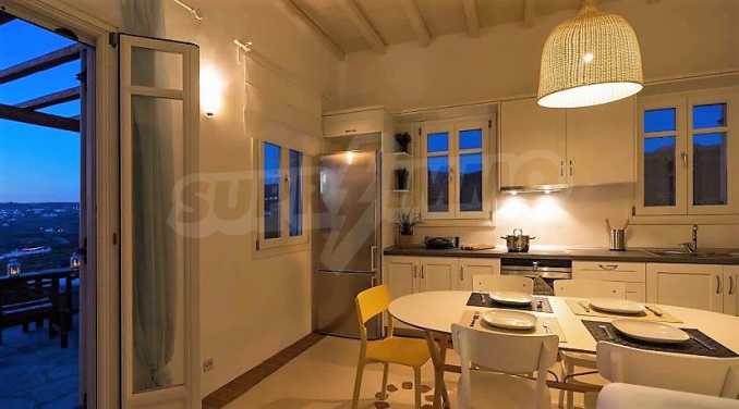 Вилла площадью 120 кв. метров. Предлагаемая недвижимость построена в 2015. Камин и отопление кондиционером. Обеспечено кондиционирование следующего типа: инвенторные кондиционеры. Крепкие стены, межкомнатные двери, окна пвх, покрашенные стены и терракотовый пол имеются в предлагаемой недвижимости. Недвижимость включает следующую меблировку и оснащение: встроенная кухня, духовка, душевая, кондиционер, меблировку, оборудованная ванная комната, посудомоечная машина, стиральная машина, телевизор, телефон и холодильник. Из основных коммуникаций обеспечены электричество и вода. Балконы, ванная комната, ванная комната с туалетом, веранда, обозначенная стоянка, парковка вне дороги, парковочное место, стоянка, туалет, комплекс закрытого типа, общие части с отделкой люкс, интернет, интернет Wi-Fi, система охранной сигнализации, спутниковое тв и телефон имеются в наличии среди прочих упомянутых указанных перечисленных характеристик предлагаемого объекта, что обеспечит дополнительные удобства для пользования. Виды на внутренний двор, виды на залив, виды на море, виды на пляж и виды на холмы открываются с недвижимости, раскрывая часть красот живописной Болгарии.