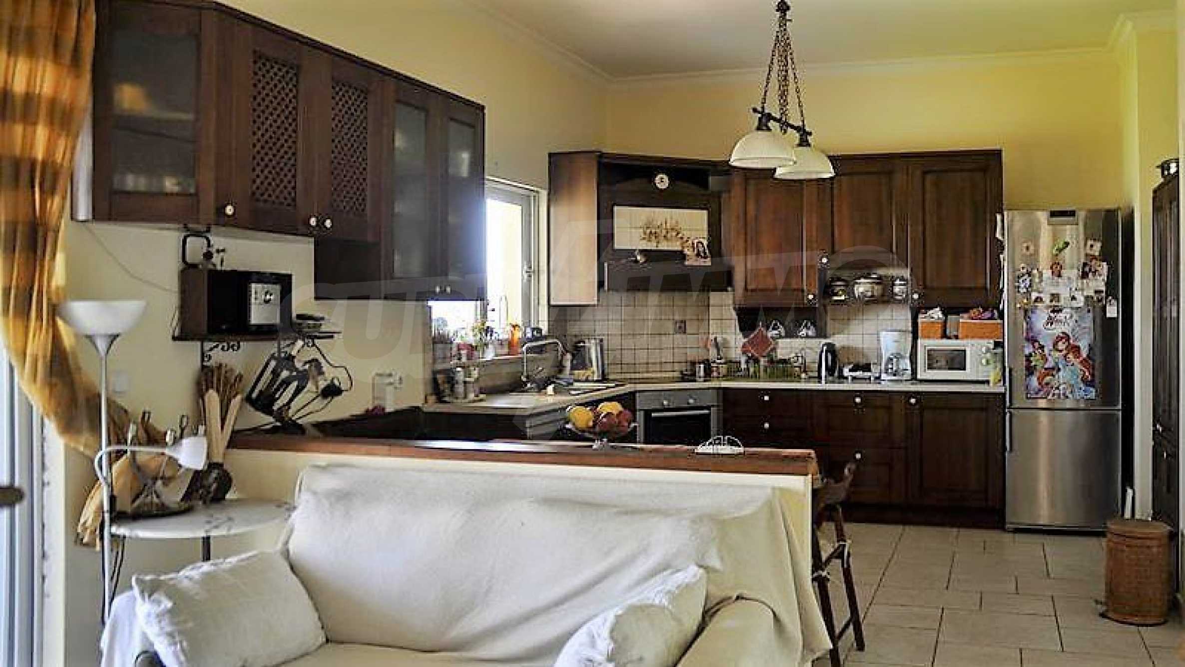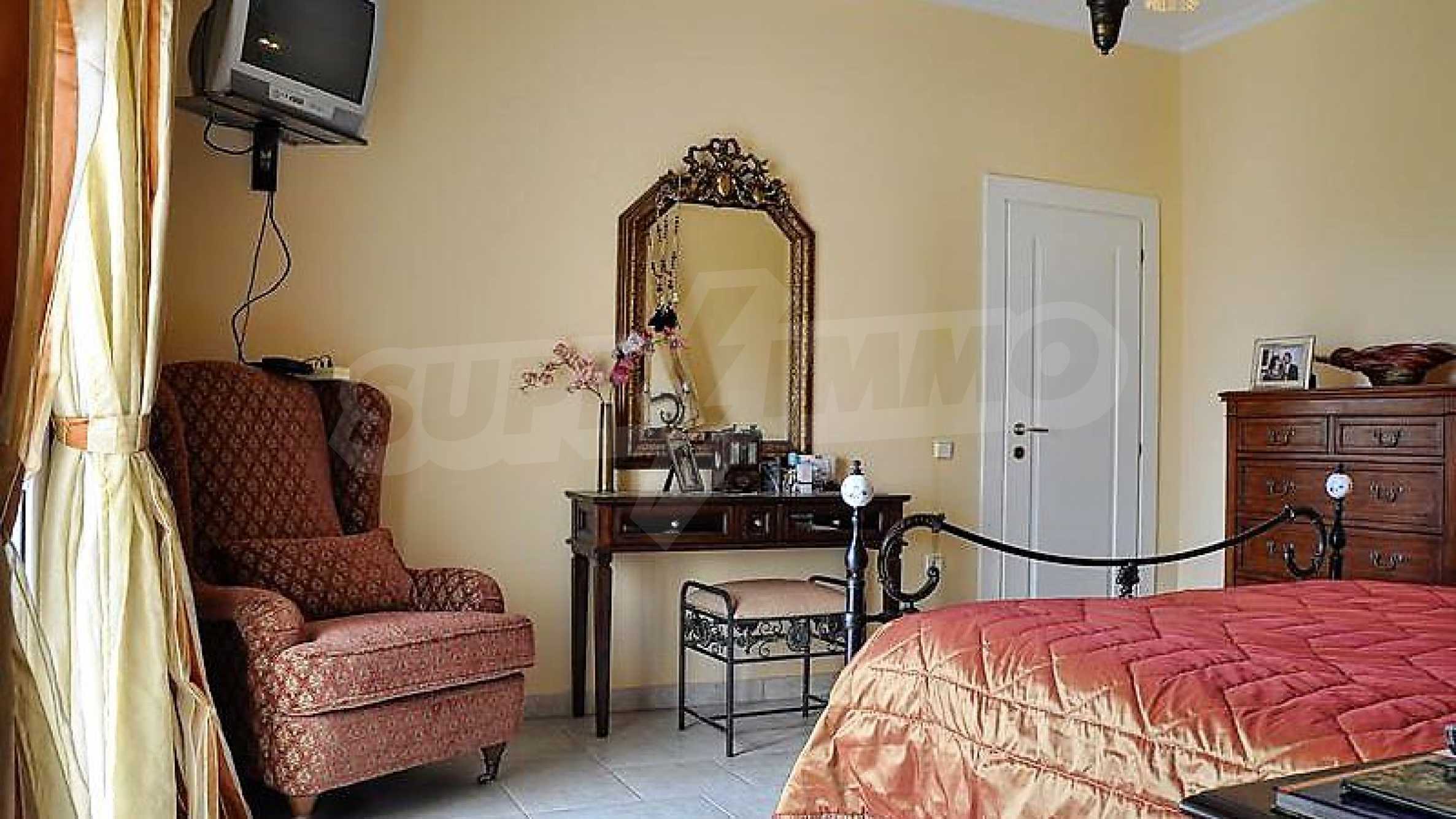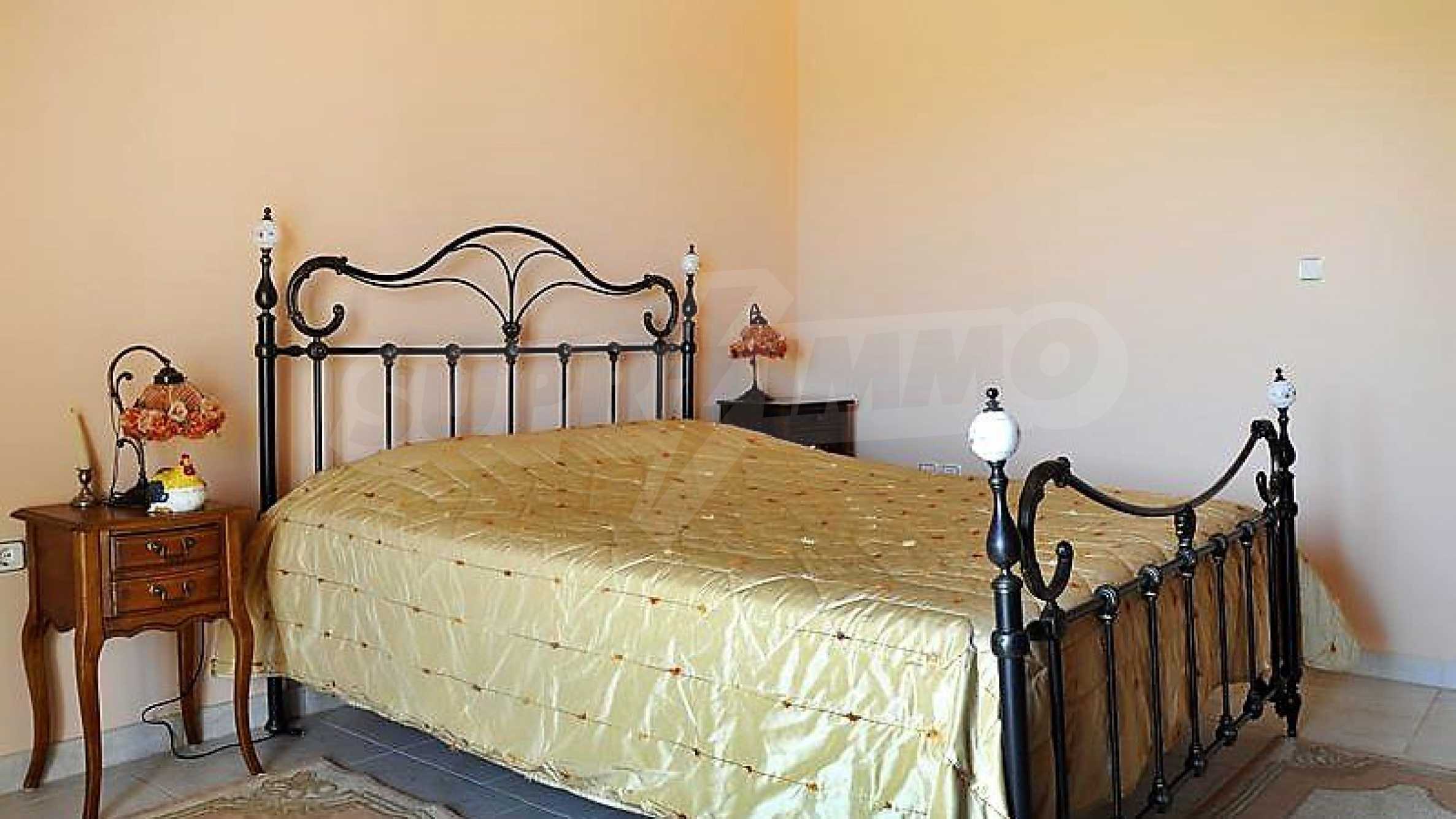Дом площадью 605 кв. метров. Камин. Окна пвх имеются в предлагаемой недвижимости. Недвижимость включает следующую меблировку и оснащение: духовка, меблировку, оборудованная ванная комната, стиральная машина, сушилка, телевизор, телефон и холодильник. Из основных коммуникаций обеспечены вода и центральное водоснабжение. Ванная комната с туалетом, веранда, внутренний туалет, внутренняя ванная, туалет и интернет имеются в наличии среди прочих характеристик предлагаемого объекта, что обеспечит дополнительный комфорт для пользования. Виды на внутренний двор и виды на море открываются с недвижимости, раскрывая часть красот живописной Болгарии.