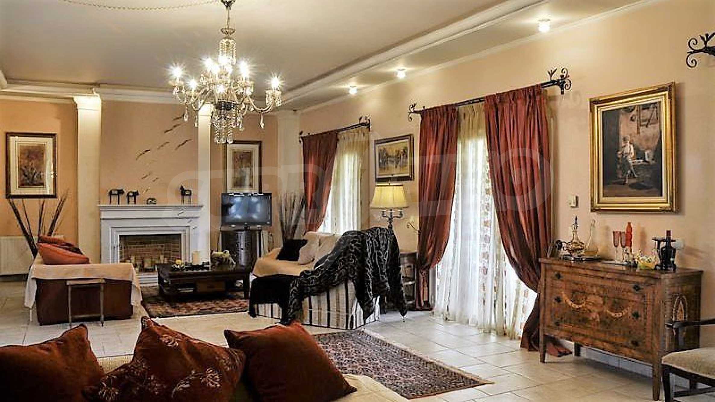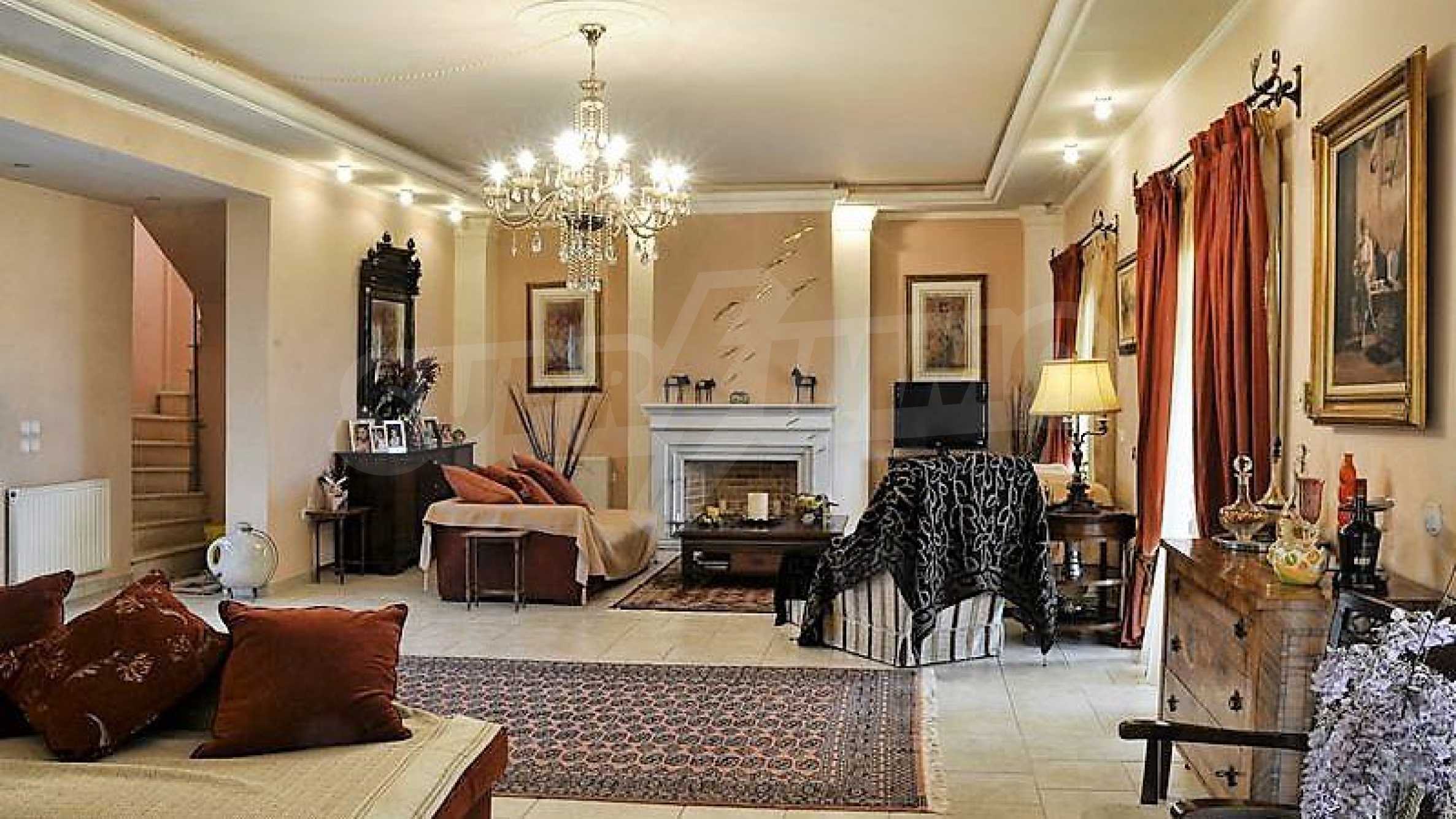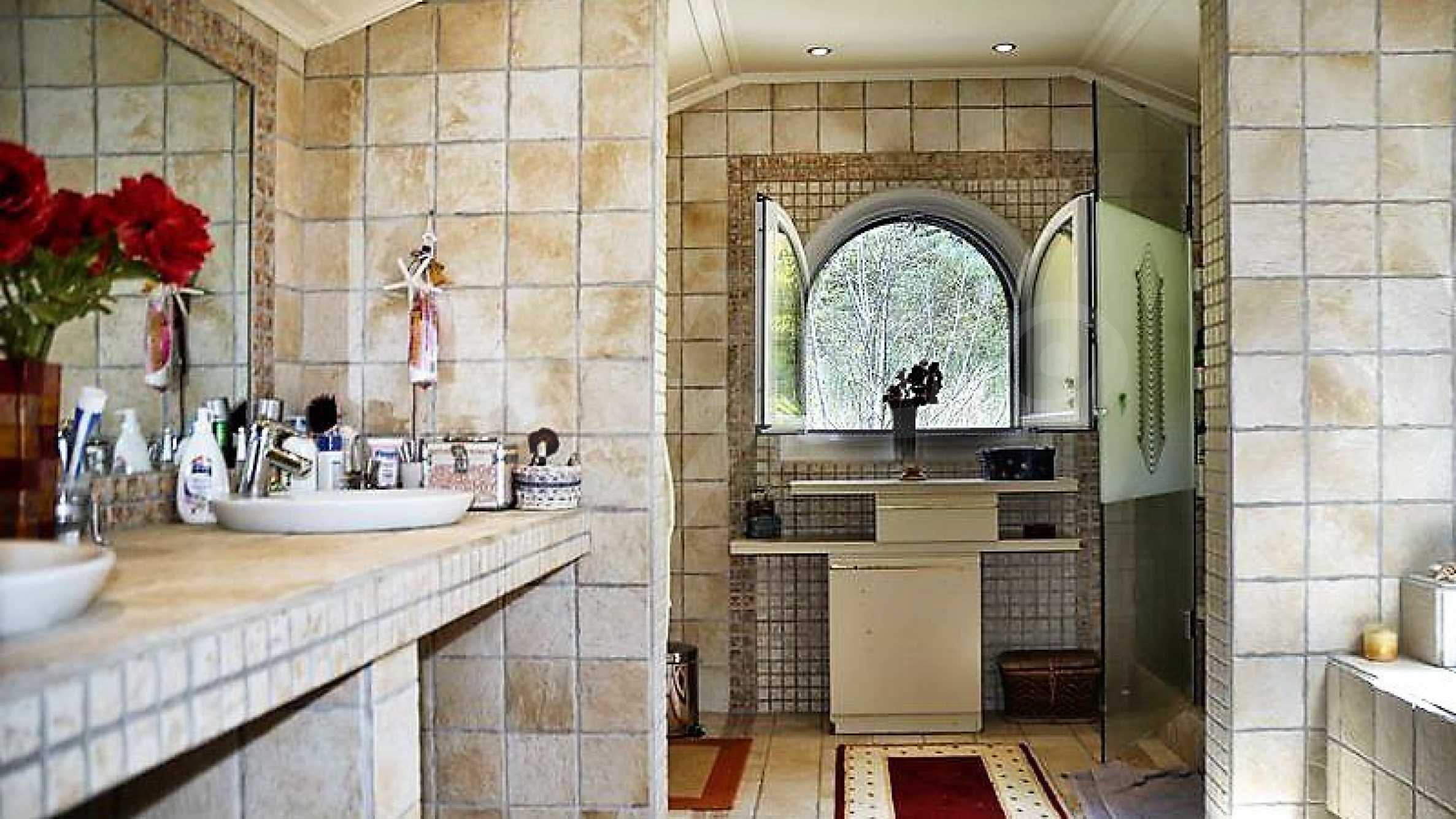 Дом площадью 605 кв. метров. Камин. Окна пвх имеются в предлагаемой недвижимости. Недвижимость включает следующую меблировку и оснащение: духовка, меблировку, оборудованная ванная комната, стиральная машина, сушилка, телевизор, телефон и холодильник. Из основных коммуникаций обеспечены вода и центральное водоснабжение. Ванная комната с туалетом, веранда, внутренний туалет, внутренняя ванная, туалет и интернет имеются в наличии среди прочих характеристик предлагаемого объекта, что обеспечит дополнительный комфорт для пользования. Виды на внутренний двор и виды на море открываются с недвижимости, раскрывая часть красот живописной Болгарии.