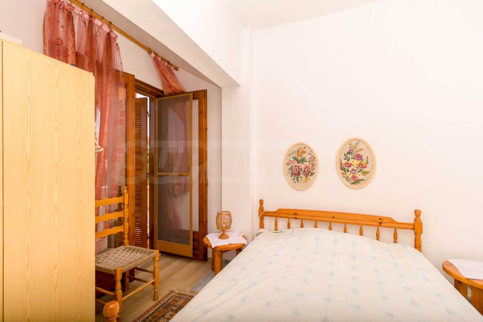Продается мезонета площадью 70 кв.м в муниципалитете Афон на Халкидиках, в непосредственной близости от прекрасного пляжа. Дом разделен на два уровня и состоит из первого этажа (35 кв.м) где есть гостиная и внешняя ванная комната и второго этажа (35 кв.м), где расположена спальня и вторая ванная комната. В доме установлены деревянные окна, кафельный пол, мраморная внутренняя лестница, на территории есть душ на открытом воздухе, барбекю, большой сад площадью 500 кв.м. место для парковки, беседка. Мезонета продается вместе с мебелью.