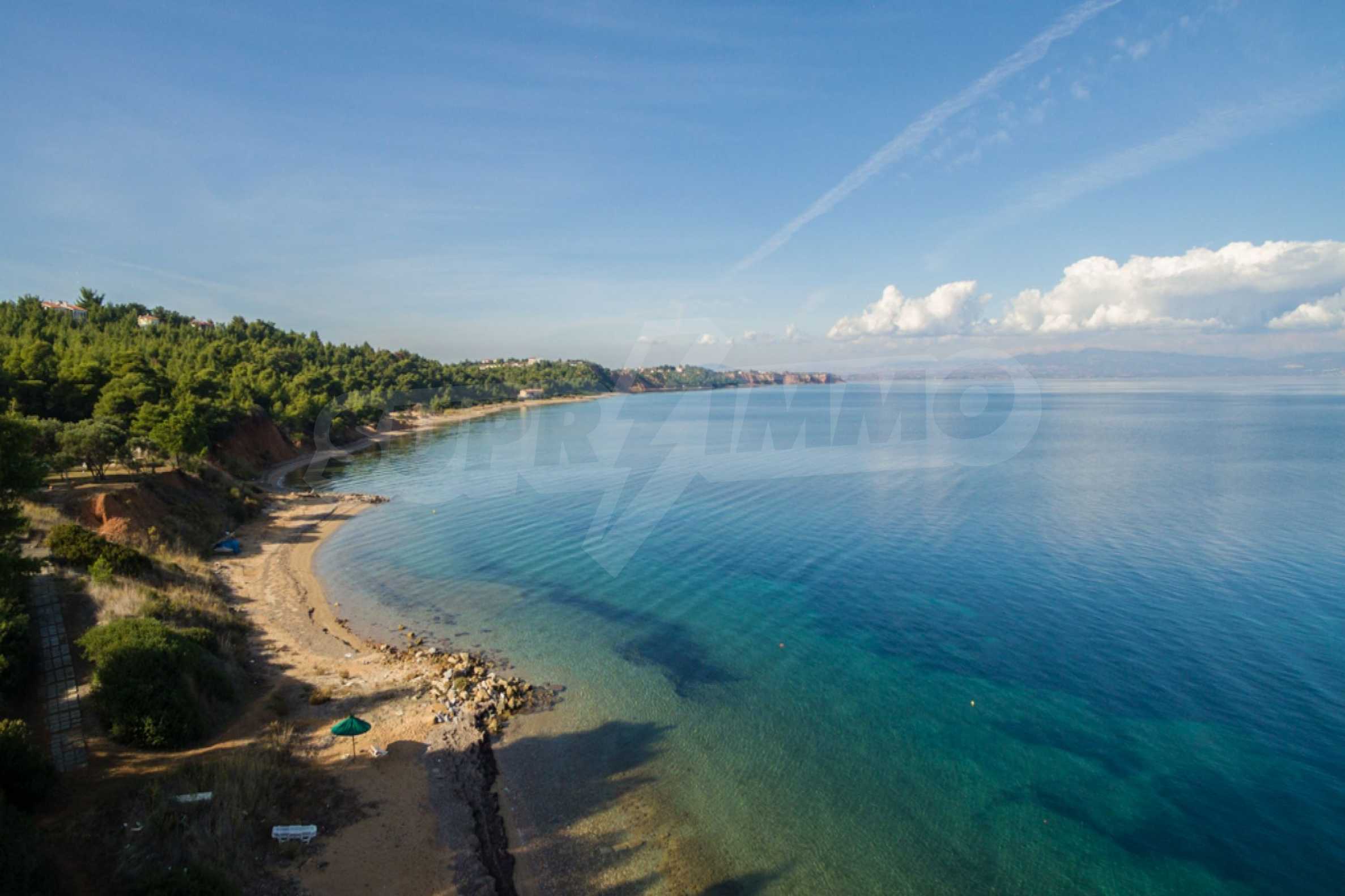 Продается участок площадью 500 м2 на первой линии от моря на Кассандре, п-ов Халкидики с восточной ориентацией. Участок расположен рядом с сосновым лесом. На участке установлены два каравана, беседка, также существует септик. Территория участка огорожена, примыкает к проселочной дороге и находится в 4000 метрах от центра деревни.