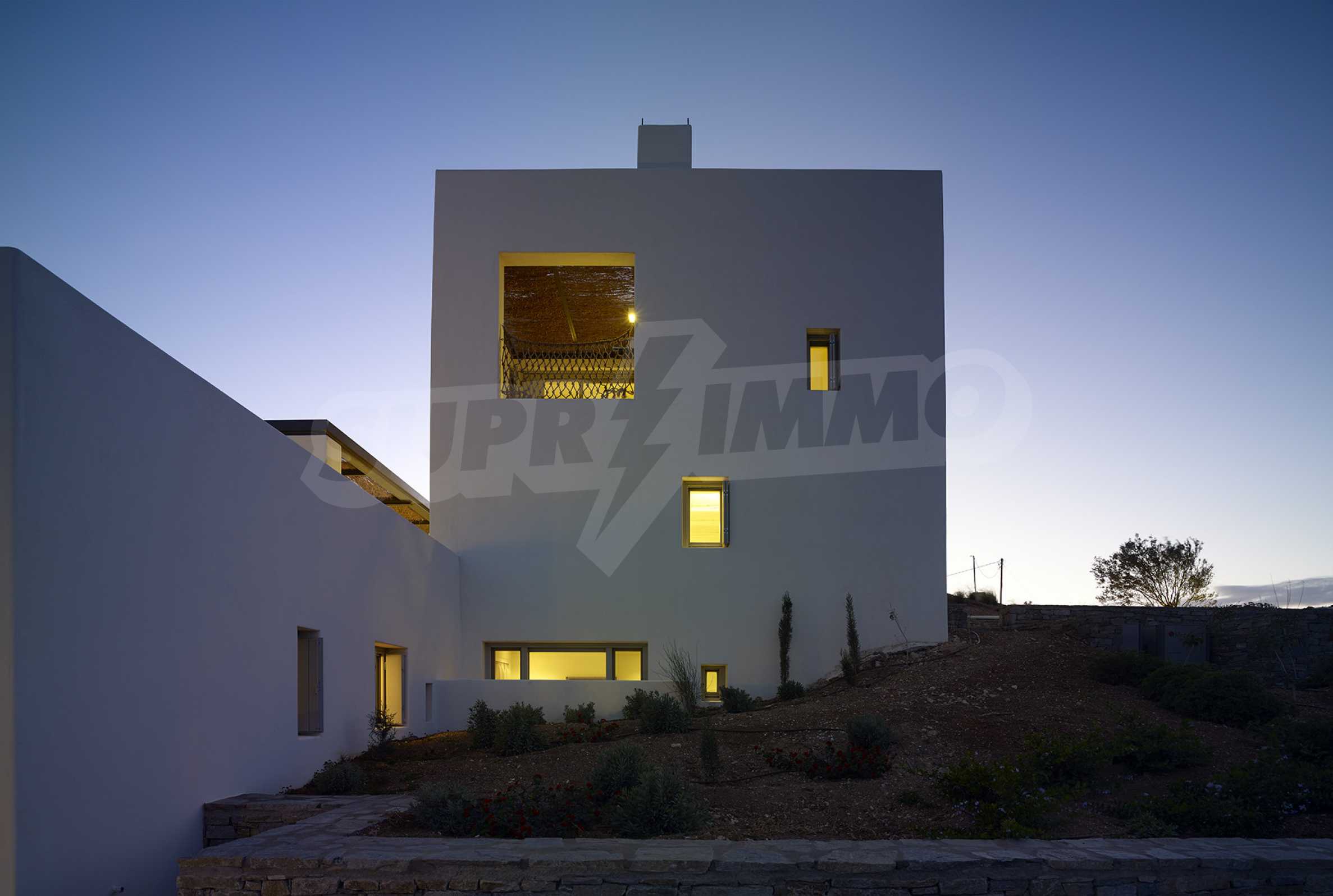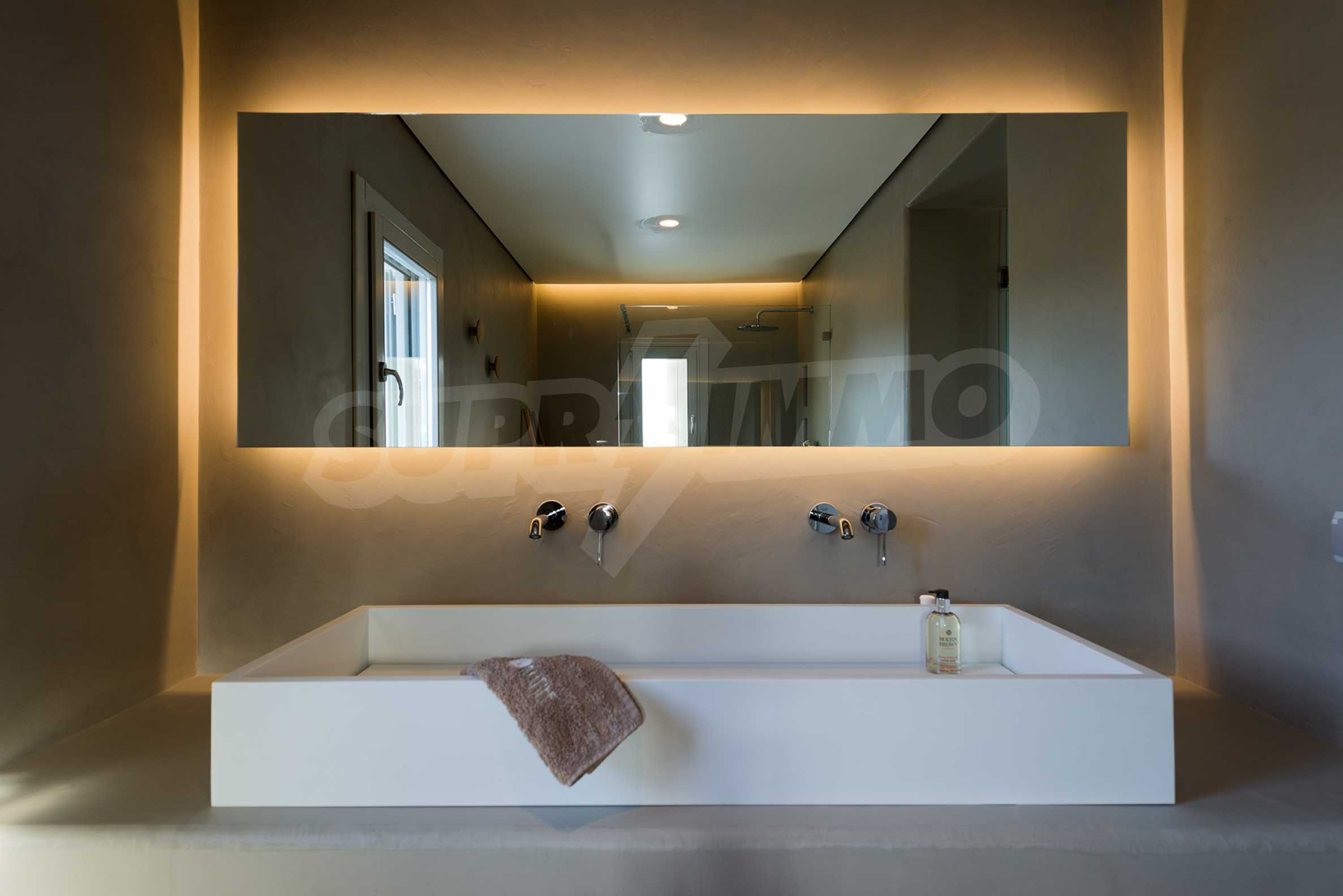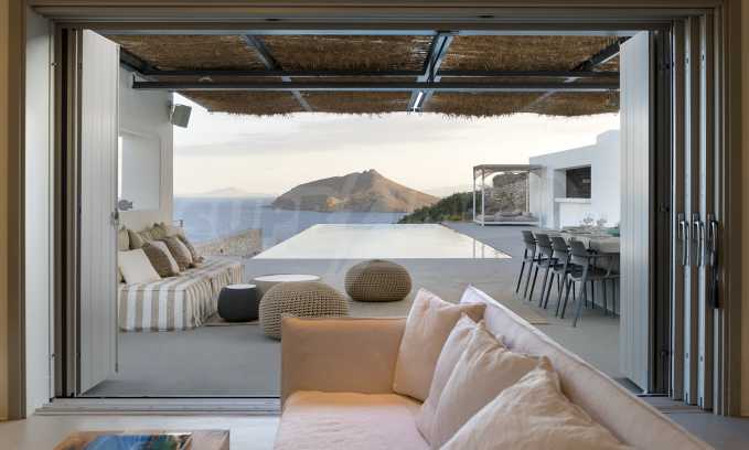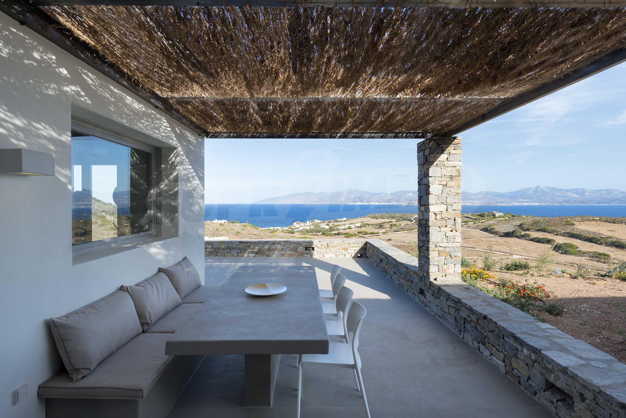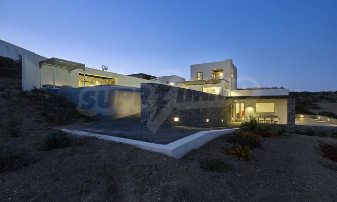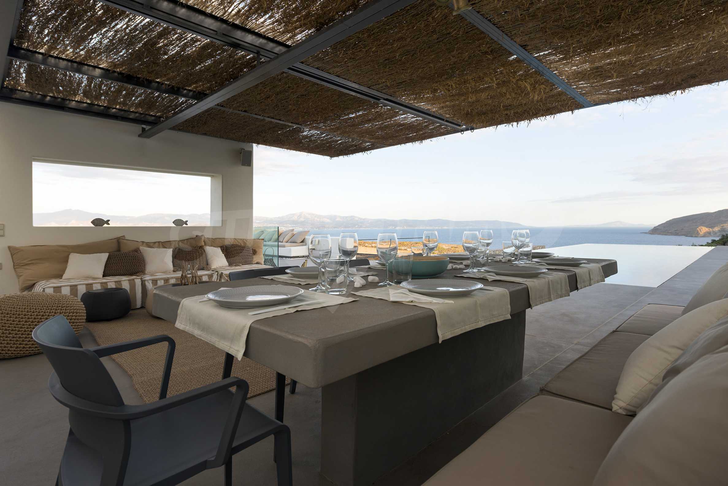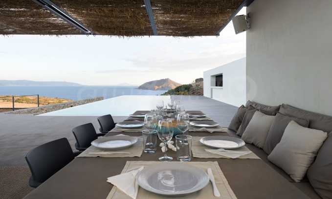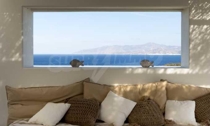 • 1-й этаж главного дома: большая спальня с большой ванной комнатой и панорамным видом на Эгейское море, отдельная терраса с деревянным полом, большой шкаф.
