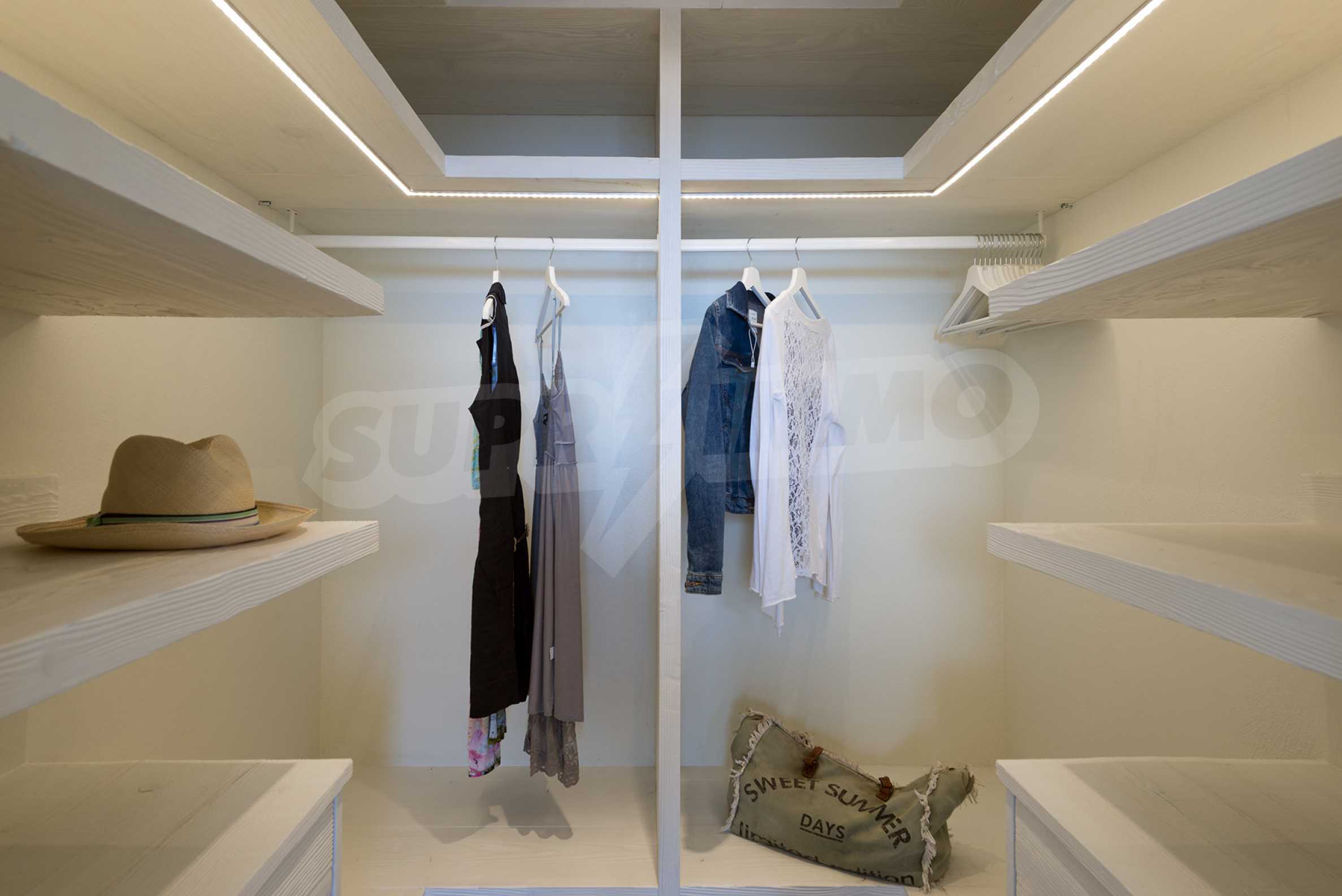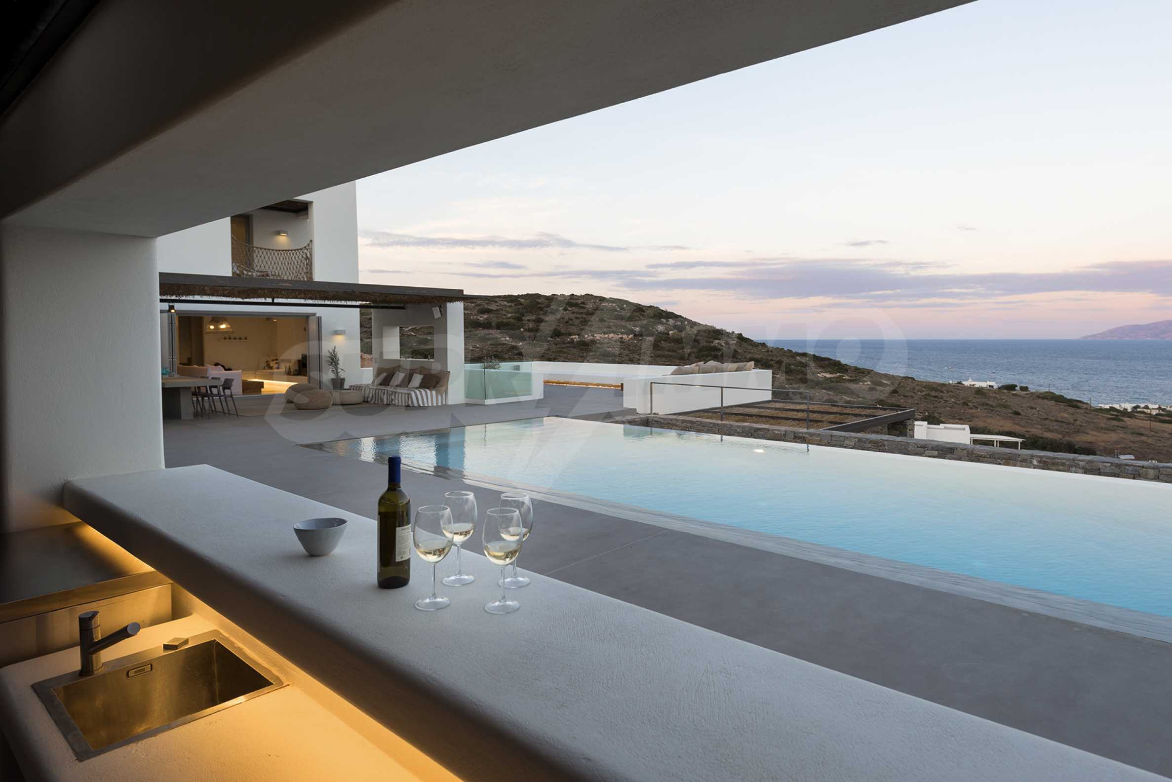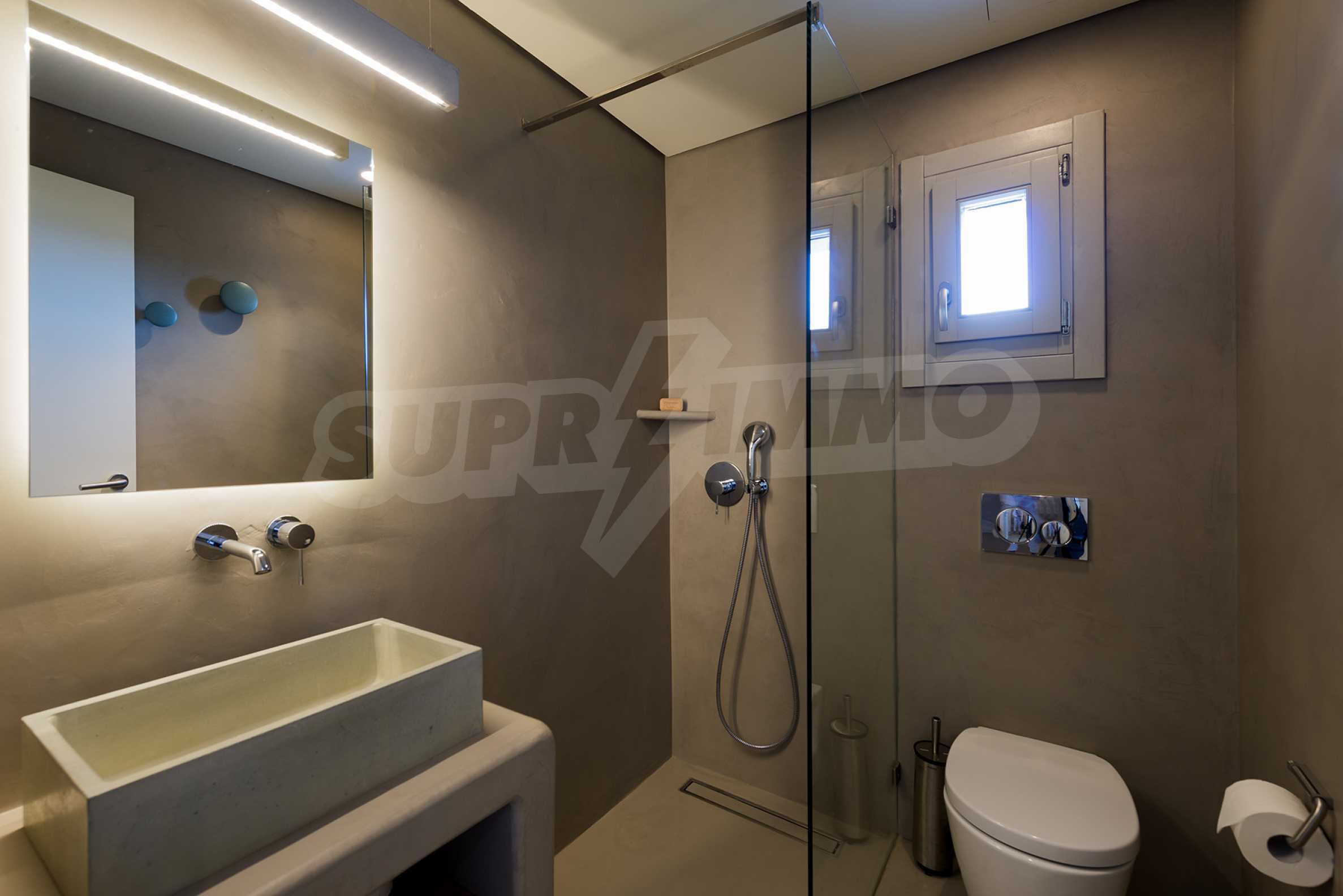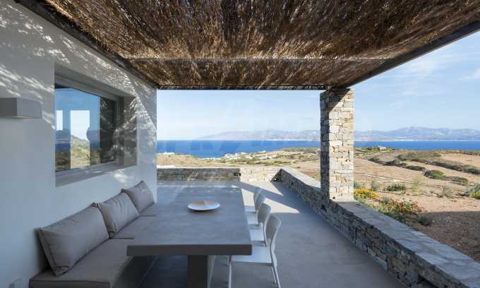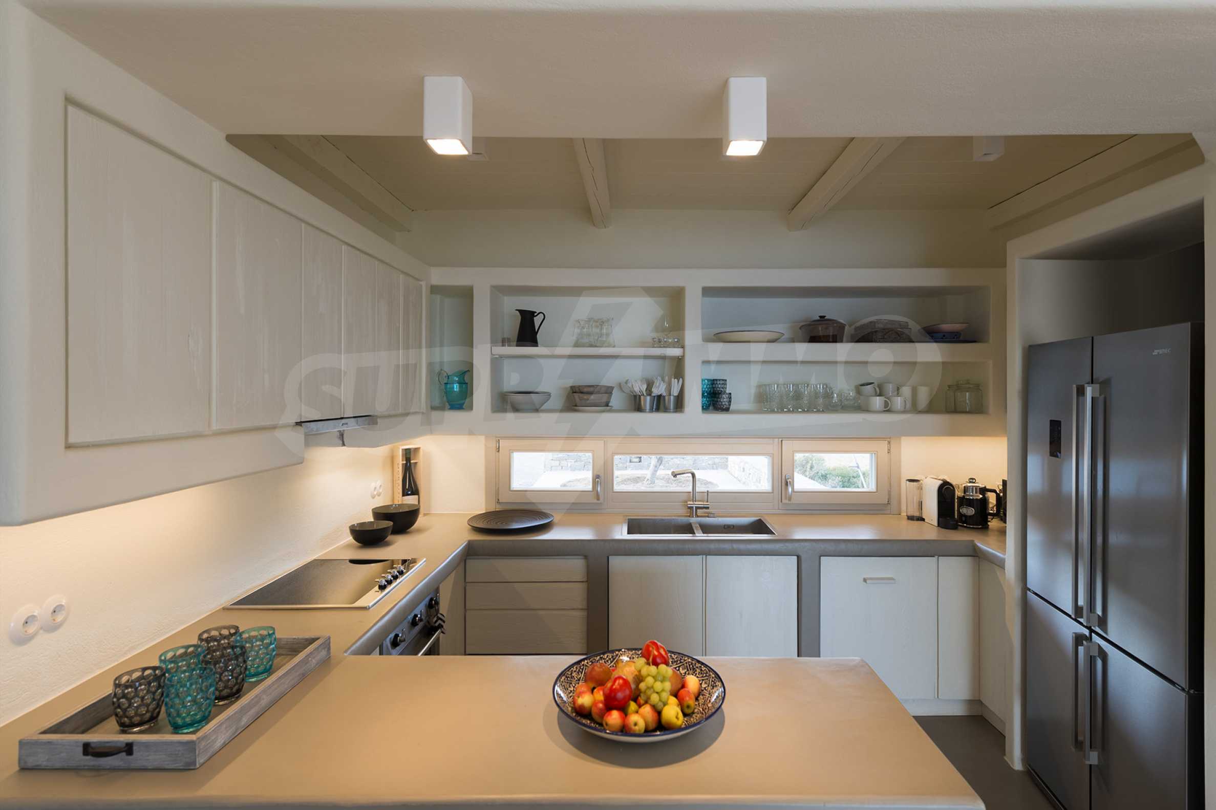 • 1-й этаж главного дома: большая спальня с большой ванной комнатой и панорамным видом на Эгейское море, отдельная терраса с деревянным полом, большой шкаф.