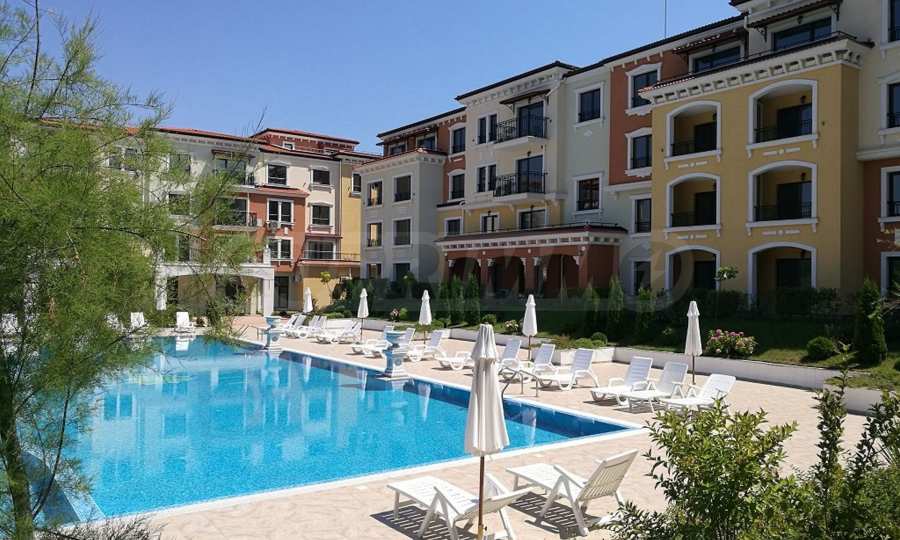 Романтический комплекс в средиземноморском архитектурном стиле состоит из 3 четырехэтажных зданий с лифтом и роскошными местами пользования и предоставляет множество удобств на территории: 2 магазина, бассейн, детская площадка, бар и ресторан, автостоянка и красиво озелененный сад.