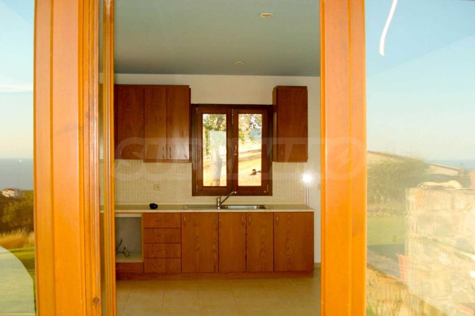 Дом площадью 115 кв.м. Предлагаемая недвижимость построена в 2015. Камин и солнечные коллекторы. Армированная входная дверь и деревянные оконные рамы имеются в предлагаемой недвижимости. Из основных коммуникаций обеспечены септическая яма. Ванная комната с туалетом, обозначенная стоянка, подвал, терраса, грунтовая дорога и система охранной сигнализации имеются в наличии среди прочих указанных характеристик предлагаемого объекта, что обеспечит дополнительные удобства для пользования. Виды на море открываются с недвижимости, раскрывая часть красот живописной Болгарии.