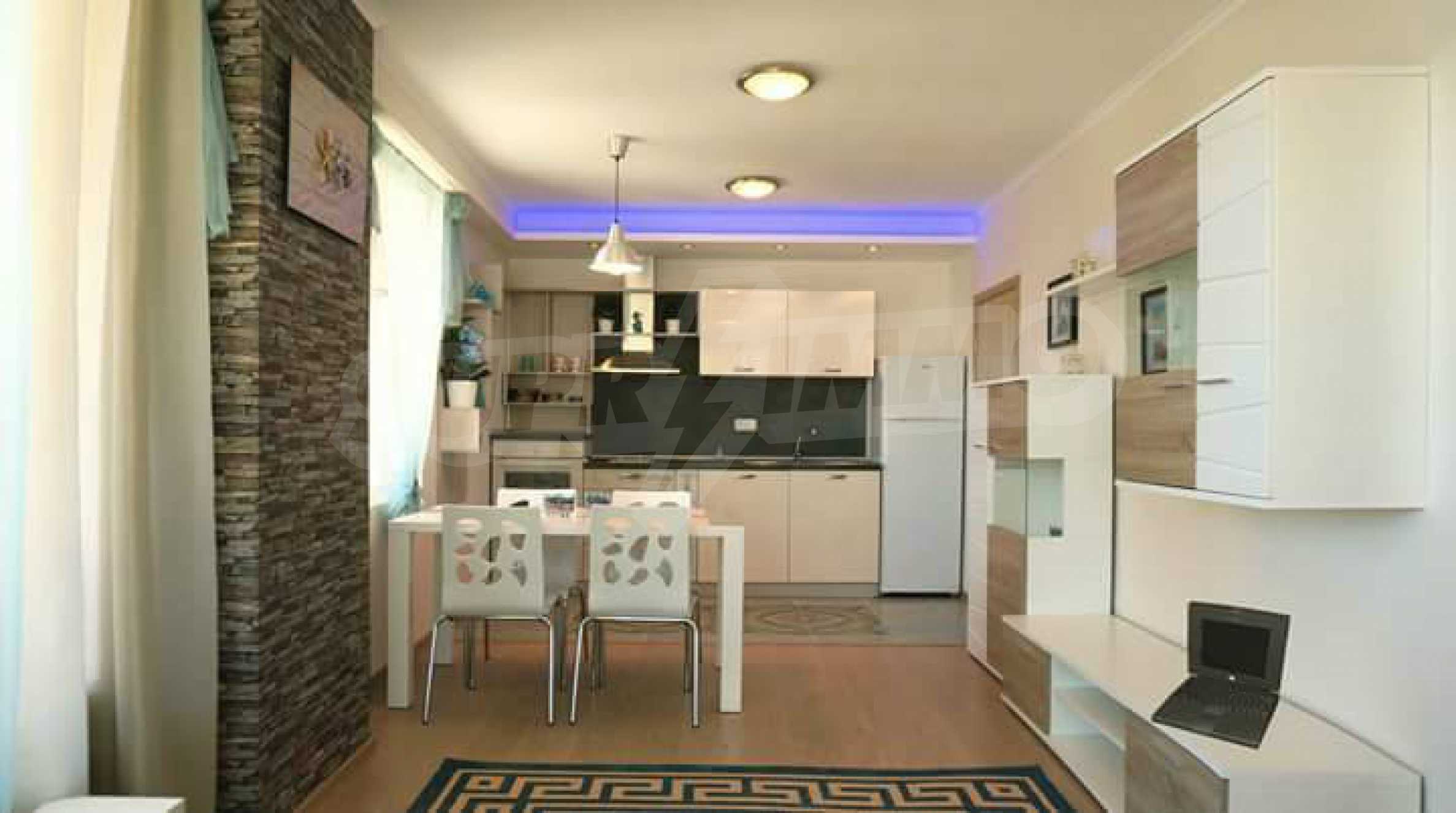 Предлагаем стильно обставленную квартиру в комплексе находящемся всего в 200 м от пляжа Кабаку, вблизи к.к. Золотые пески и Университета << Черноризец Храбр>>.