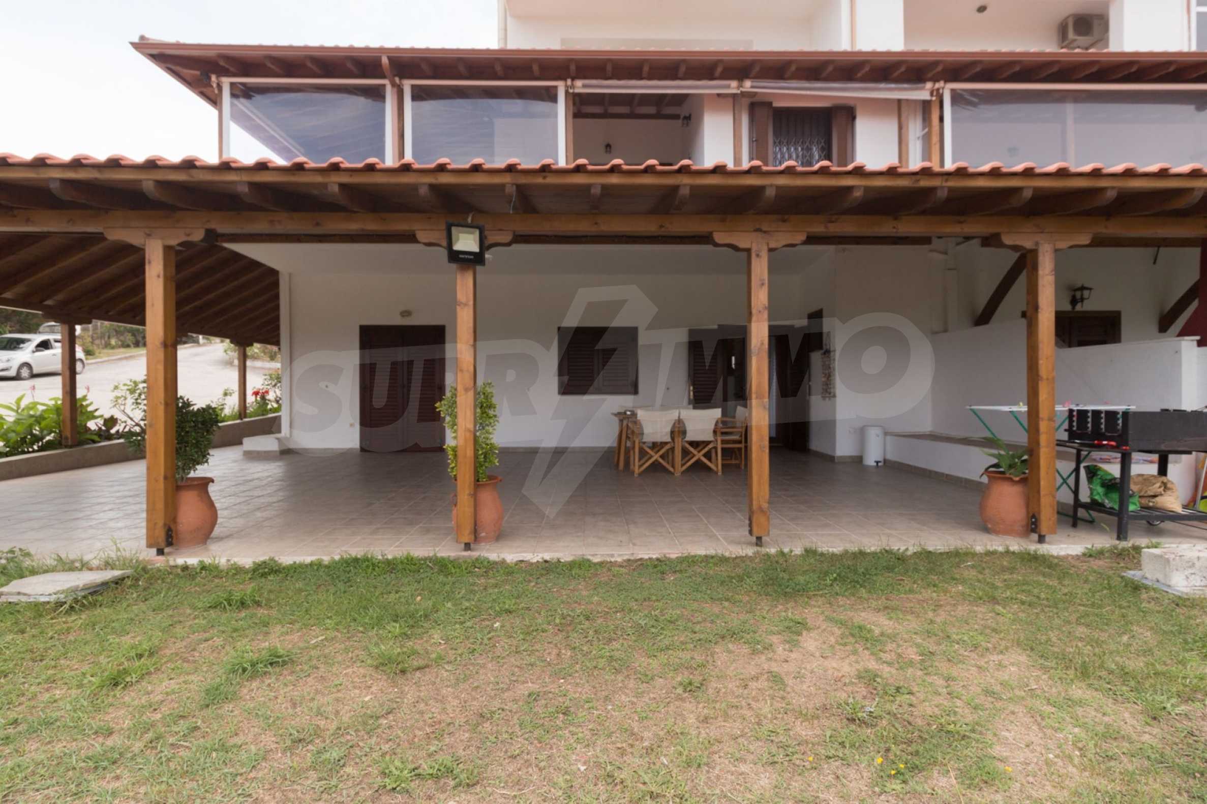 Апартаменты, Афон, 60 m, Вид на море, Беспрепятственный вид, Вид на сад , Восточное расположение, Беспрепятственный вид, Открытый вид, Угловое здание , За пределами деревни, Вид на море, Первая линия от моря, Огражденный участок, Светлое помещение, арковка, Резервуары для воды, Ландшафтный дизайн экстерьера , Летний душ, Меблированное помещение, Бытовые приборы, Услуги садовника, Беседка, Большой сад, Предварительная установка ситемы отопления, Без НДС, Просторное помещение, Деревянные окна, Большие балконы, Современная постройка
