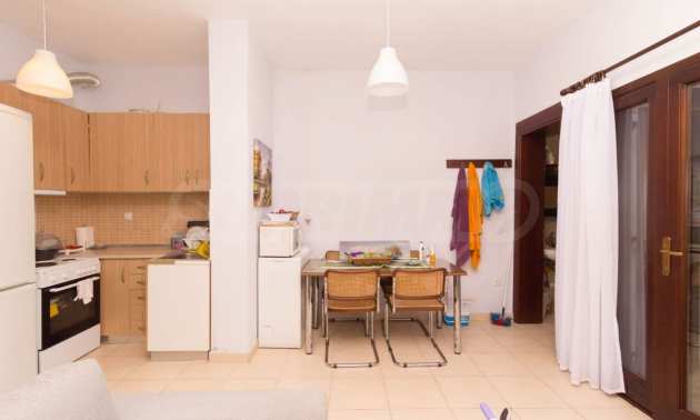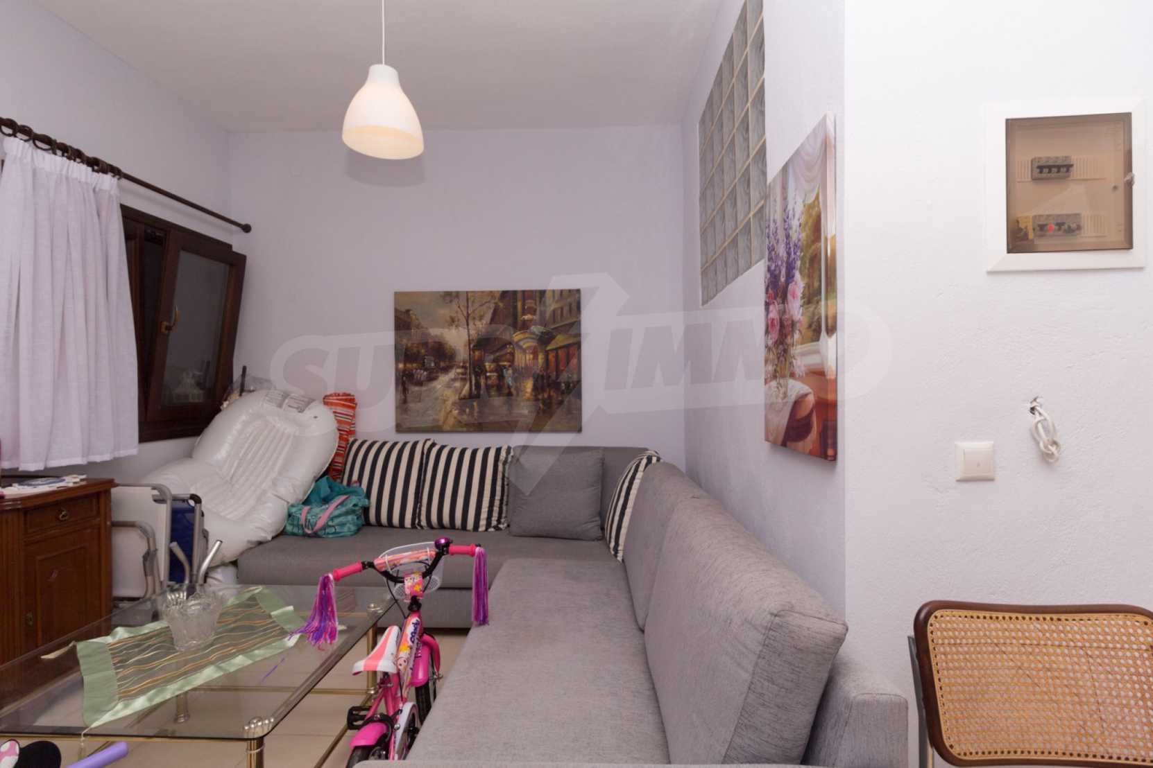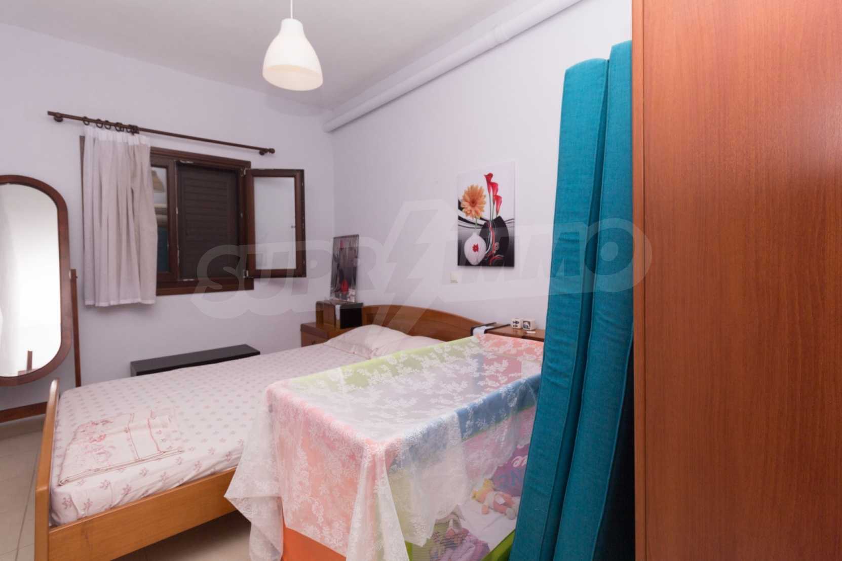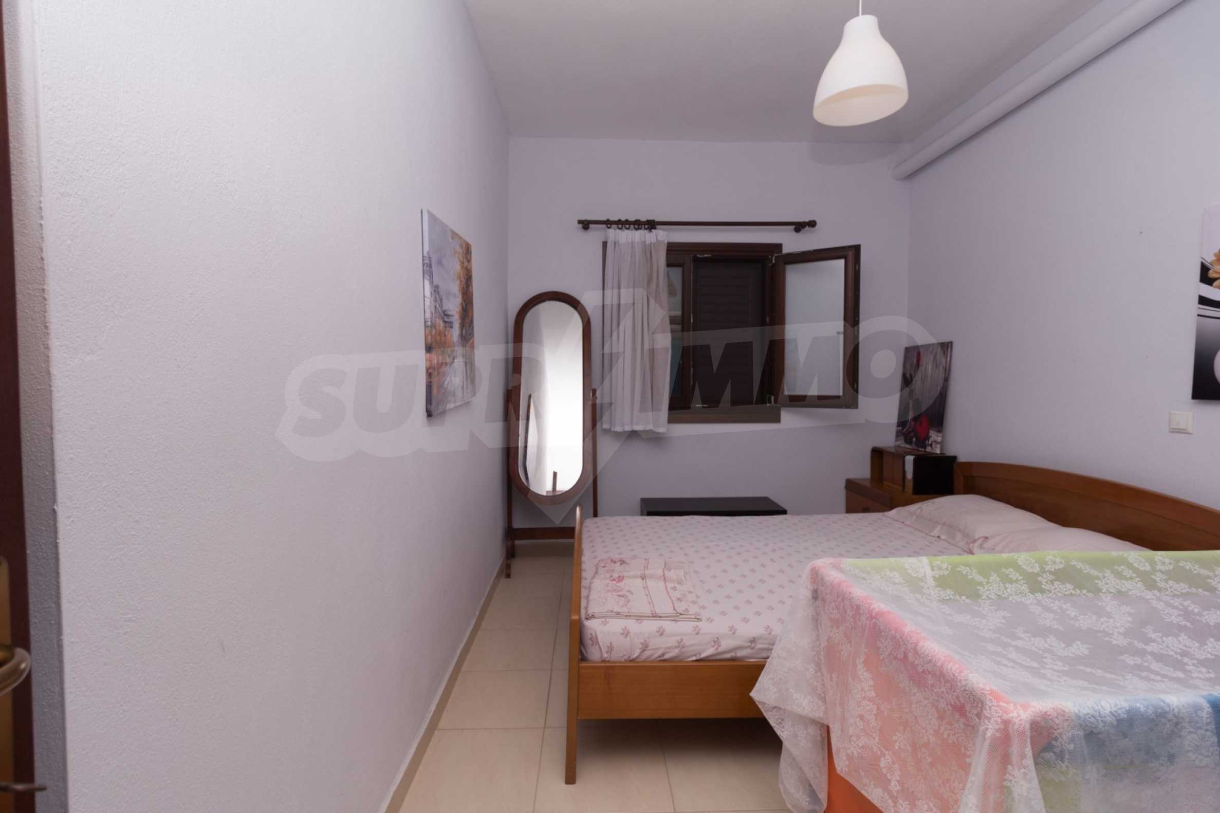 Квартира площадью 60 м2. Предлагаемая недвижимость построена в 2010. Деревянные оконные рамы имеются в предлагаемой недвижимости. Недвижимость включает следующую меблировку и оборудование: меблировку. Из основных коммуникаций обеспечены собственное водоснабжение и септическая яма. Ванная комната с туалетом, обозначенная стоянка и терраса имеются в наличии среди прочих отличительных характеристик предлагаемого объекта, что обеспечит дополнительные удобства для пользования. Виды на море открываются с недвижимости, раскрывая часть красот живописной Болгарии.