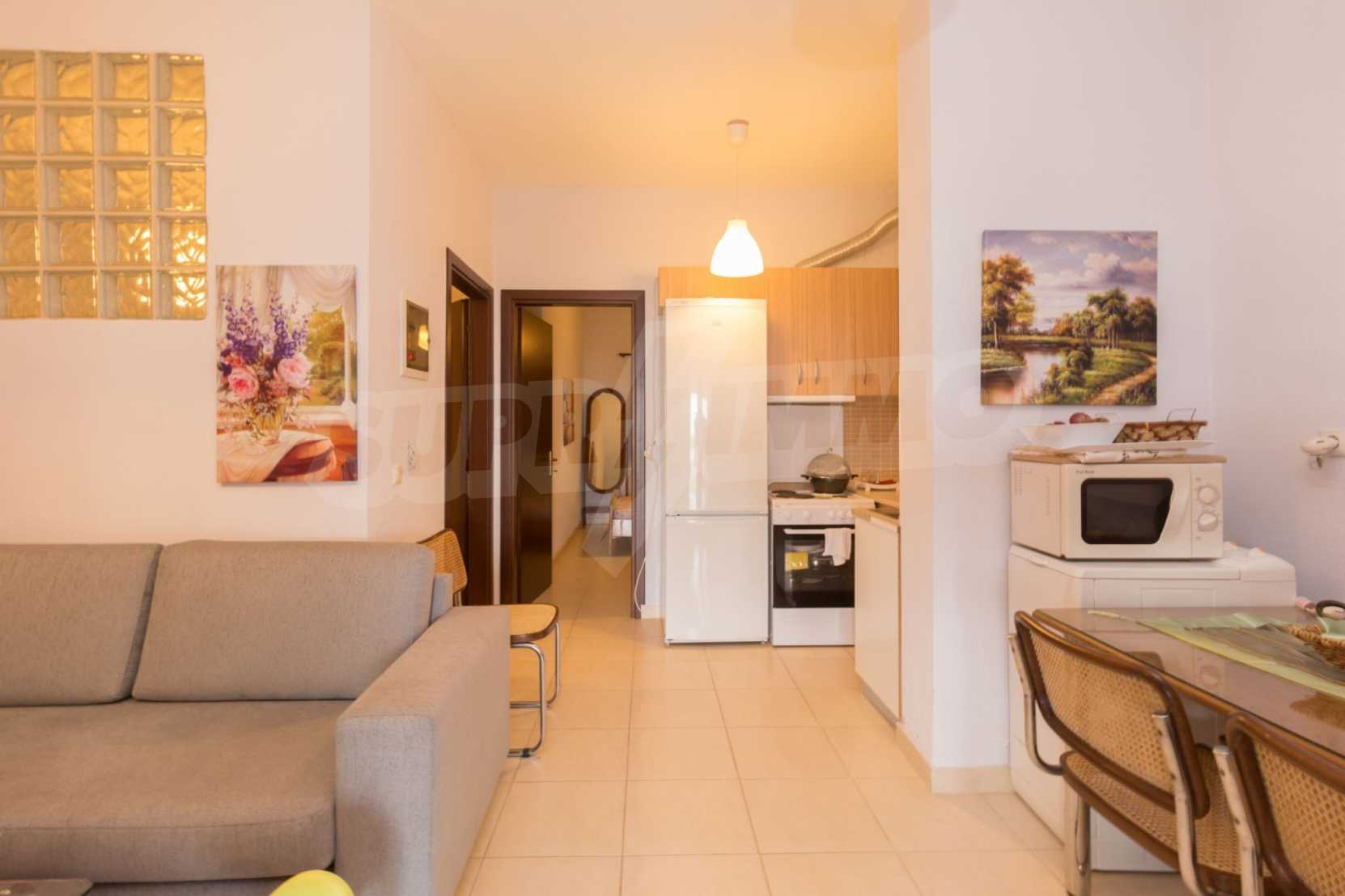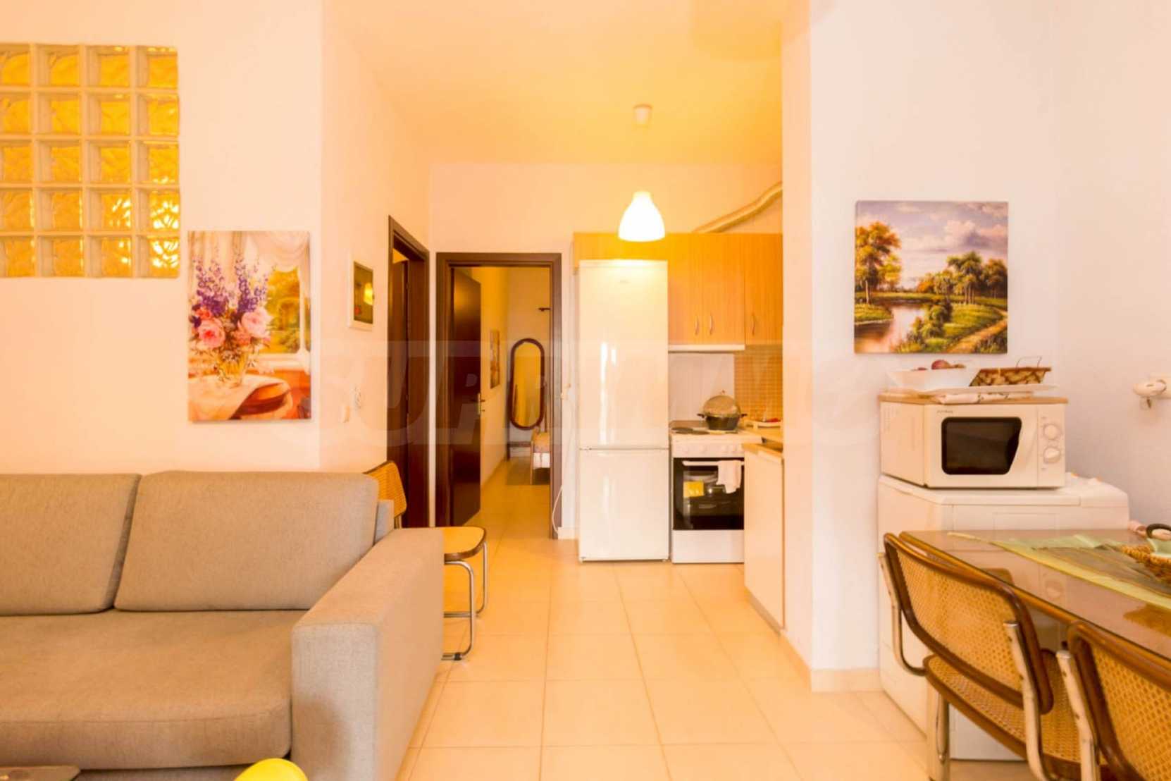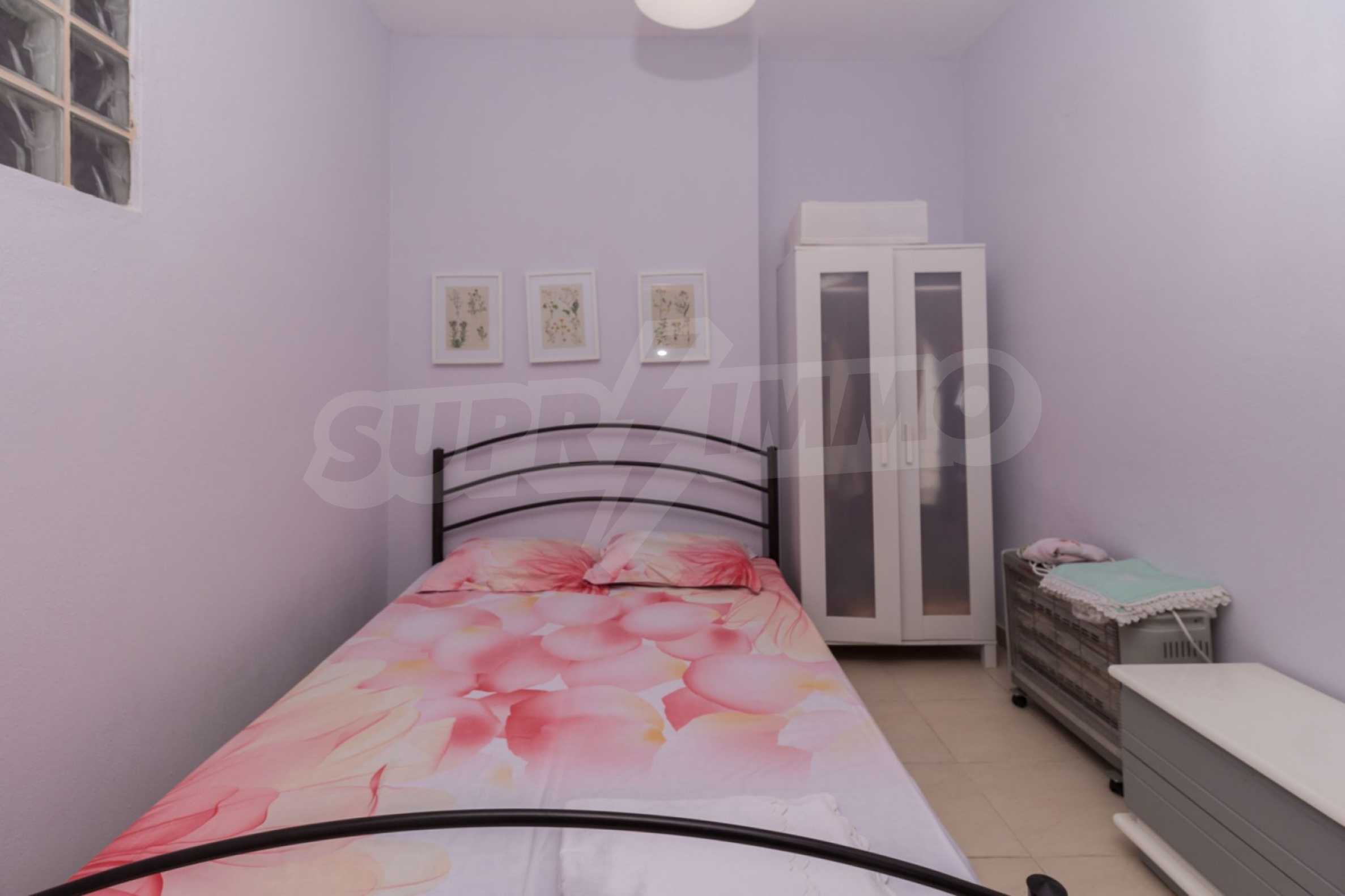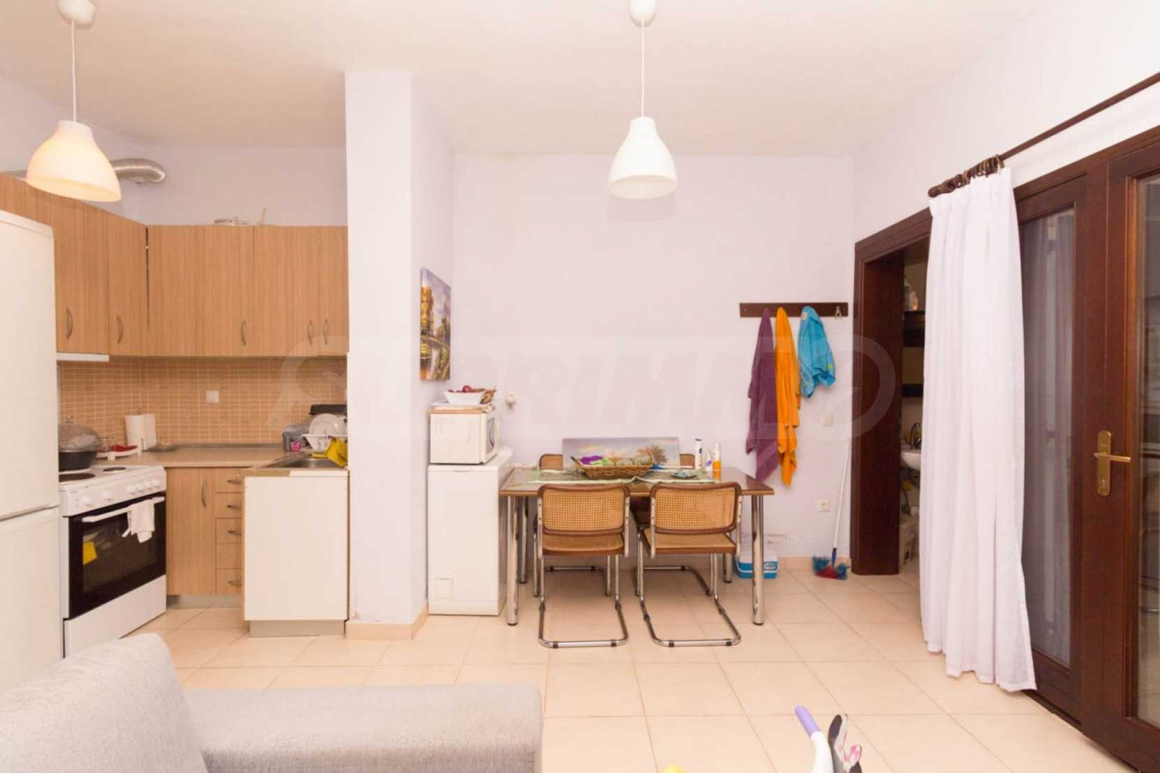Квартира площадью 60 м2. Предлагаемая недвижимость построена в 2010. Деревянные оконные рамы имеются в предлагаемой недвижимости. Недвижимость включает следующую меблировку и оборудование: меблировку. Из основных коммуникаций обеспечены собственное водоснабжение и септическая яма. Ванная комната с туалетом, обозначенная стоянка и терраса имеются в наличии среди прочих отличительных характеристик предлагаемого объекта, что обеспечит дополнительные удобства для пользования. Виды на море открываются с недвижимости, раскрывая часть красот живописной Болгарии.