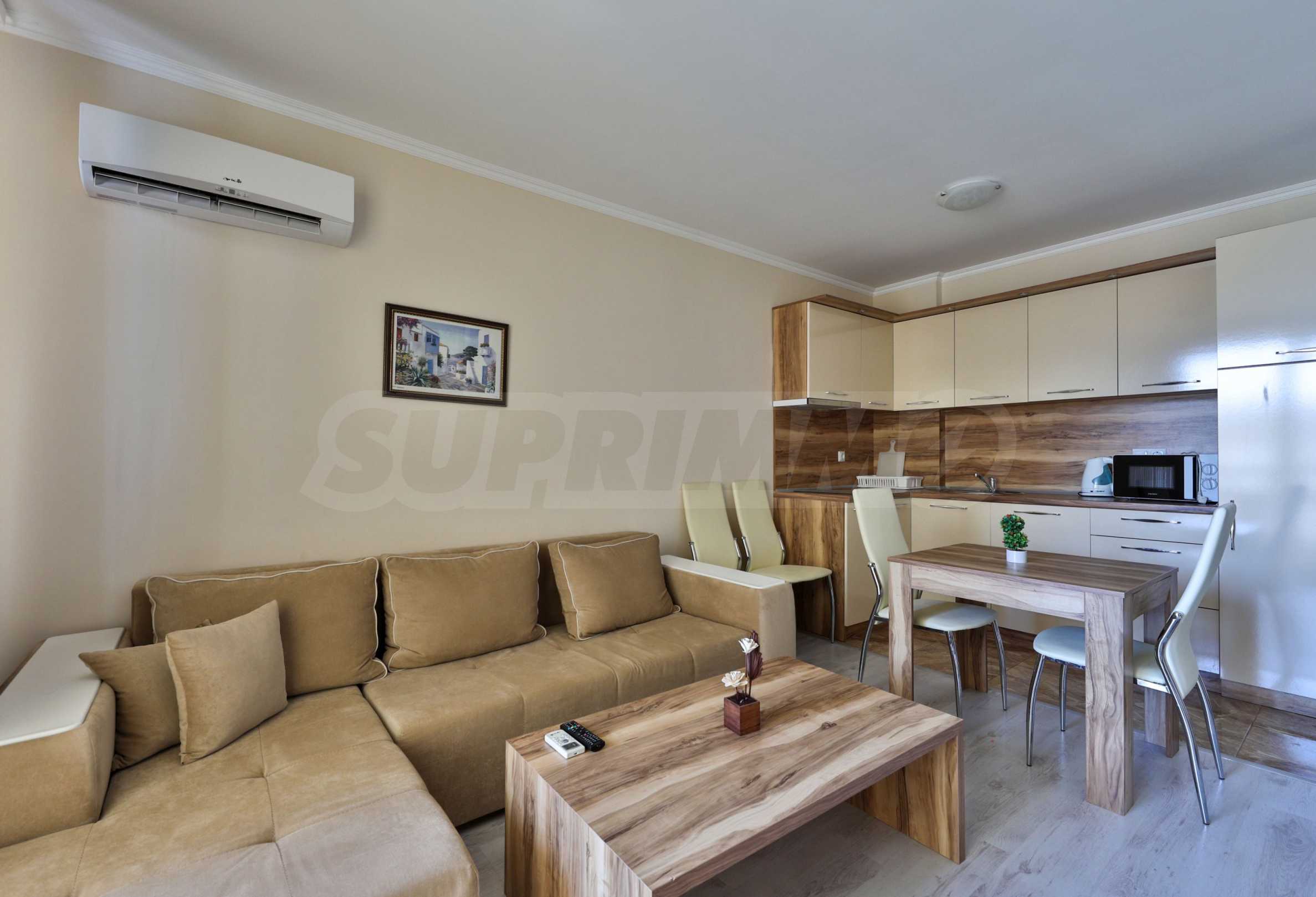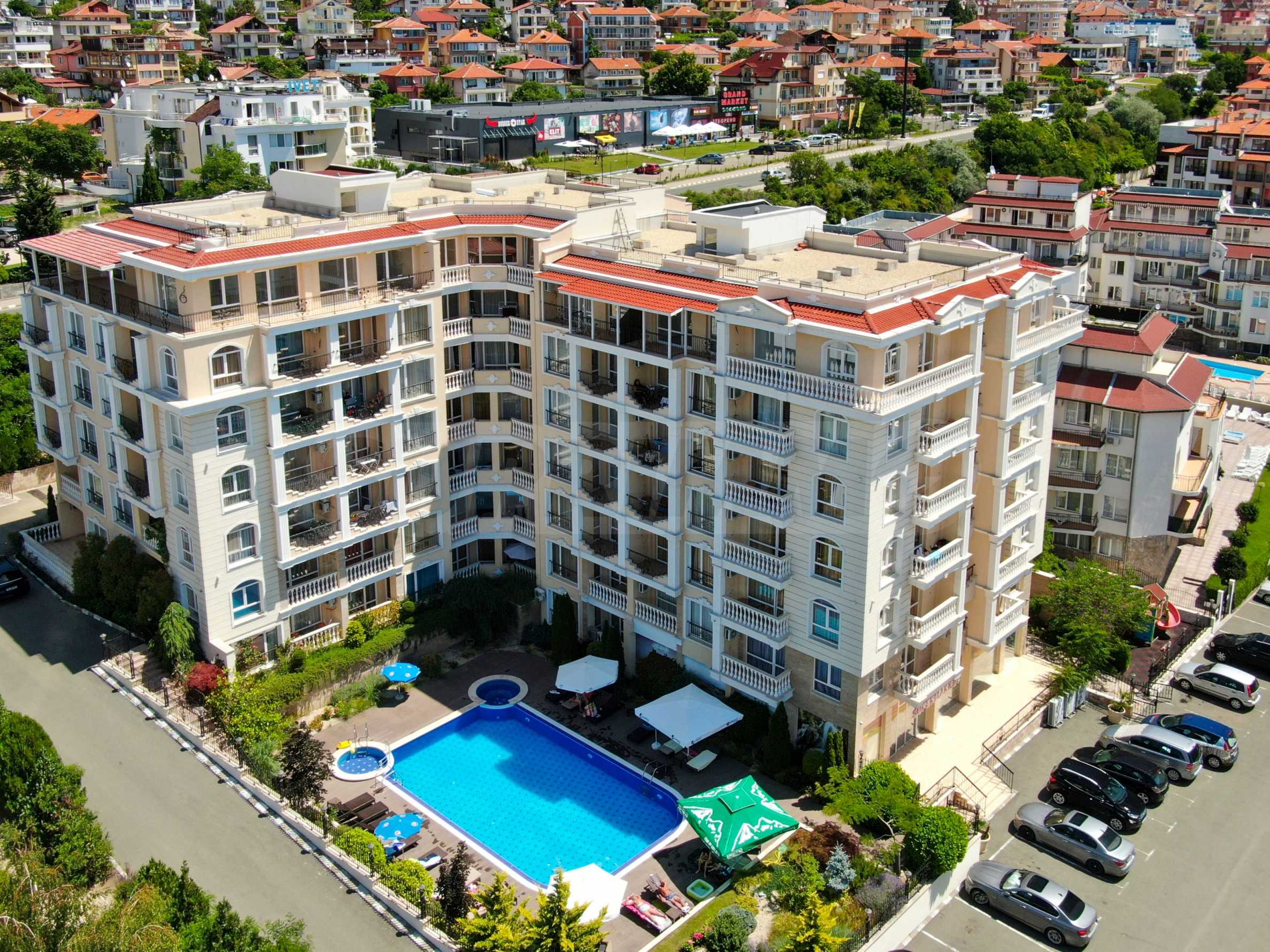 Комплекс расположен на тихой улице, с которой открывается прекрасный вид на море и холмы гор Стара-Планина. Месторасположение предлагает легкий и быстрый доступ к центральной части курорта, а также к престижной пристани г. Святой Влас - «Марина Диневи».