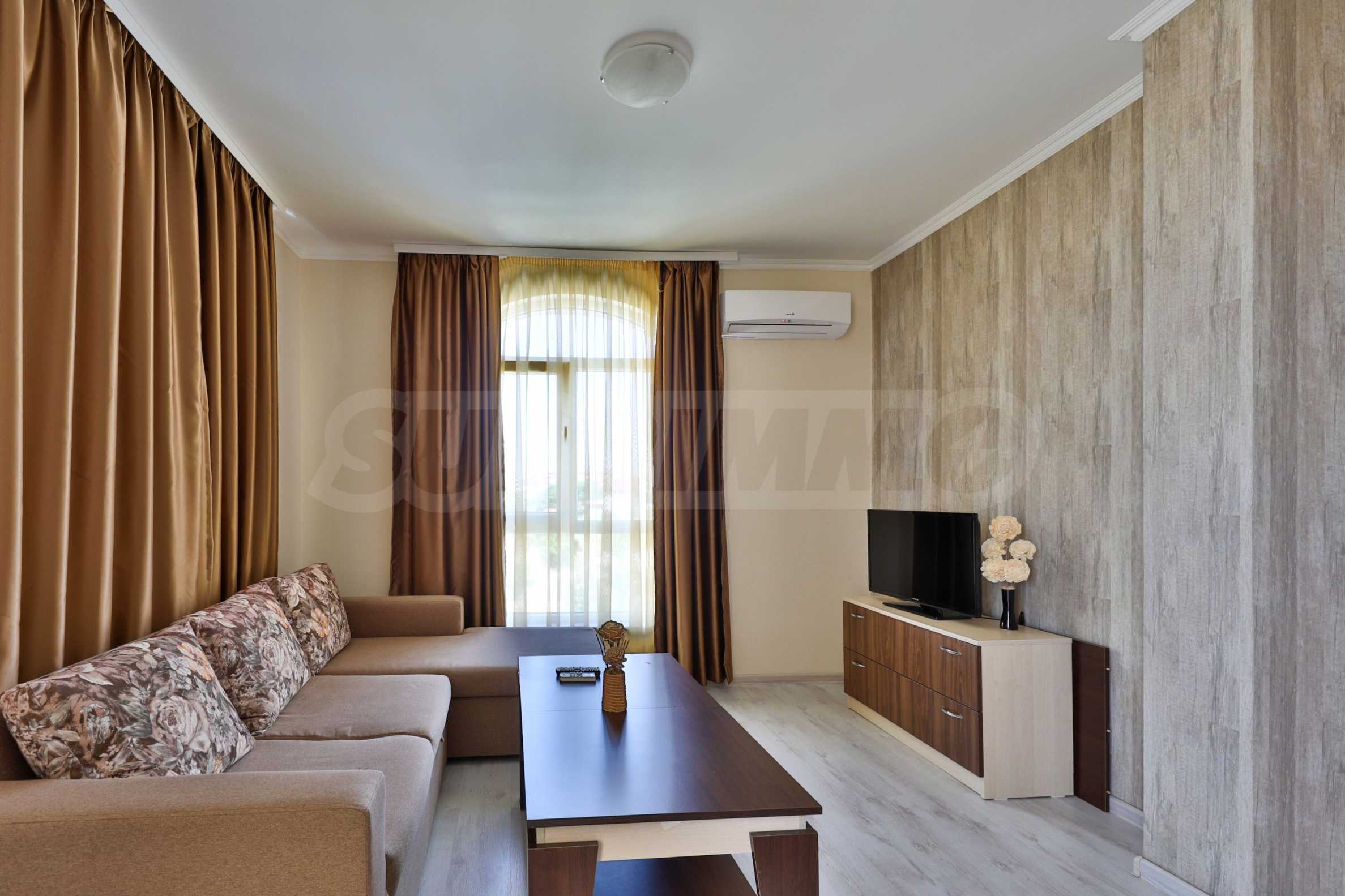 Комплекс состоит из 2 красивых зданий на 6 жилых этажей. Помещения общего пользования роскошно отделаны, с подвесными потолками и использованием натурального камня. В зданиях - современный лифт.