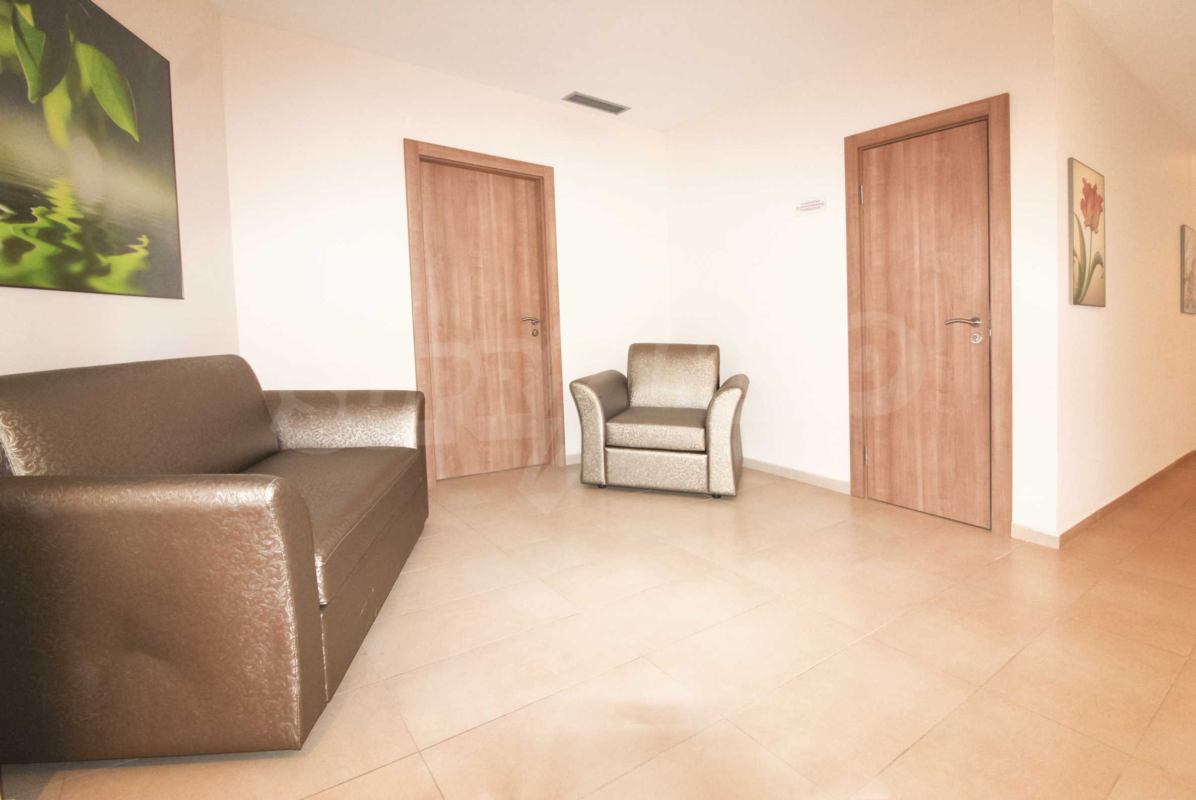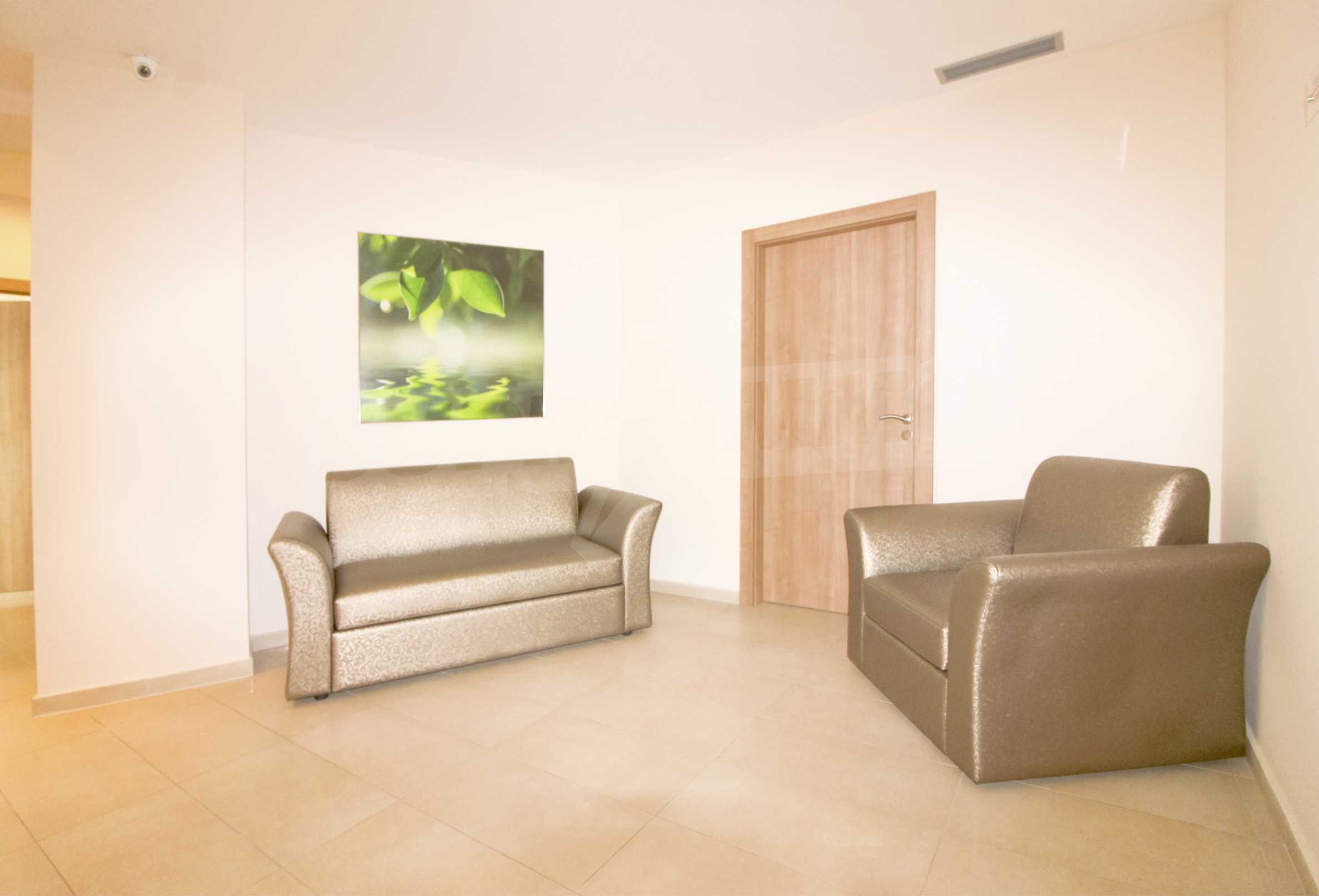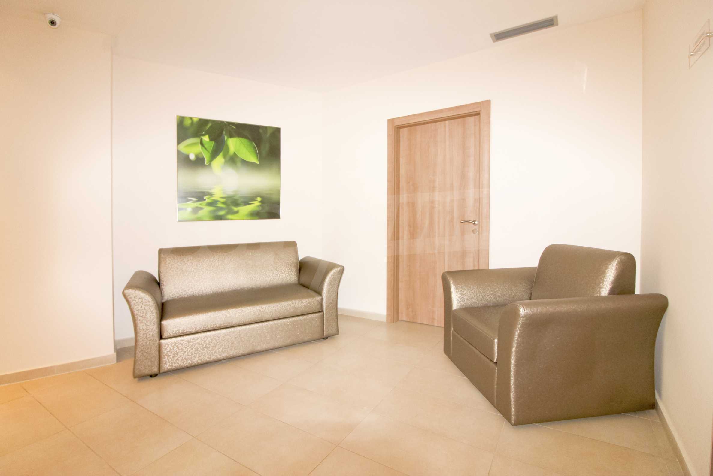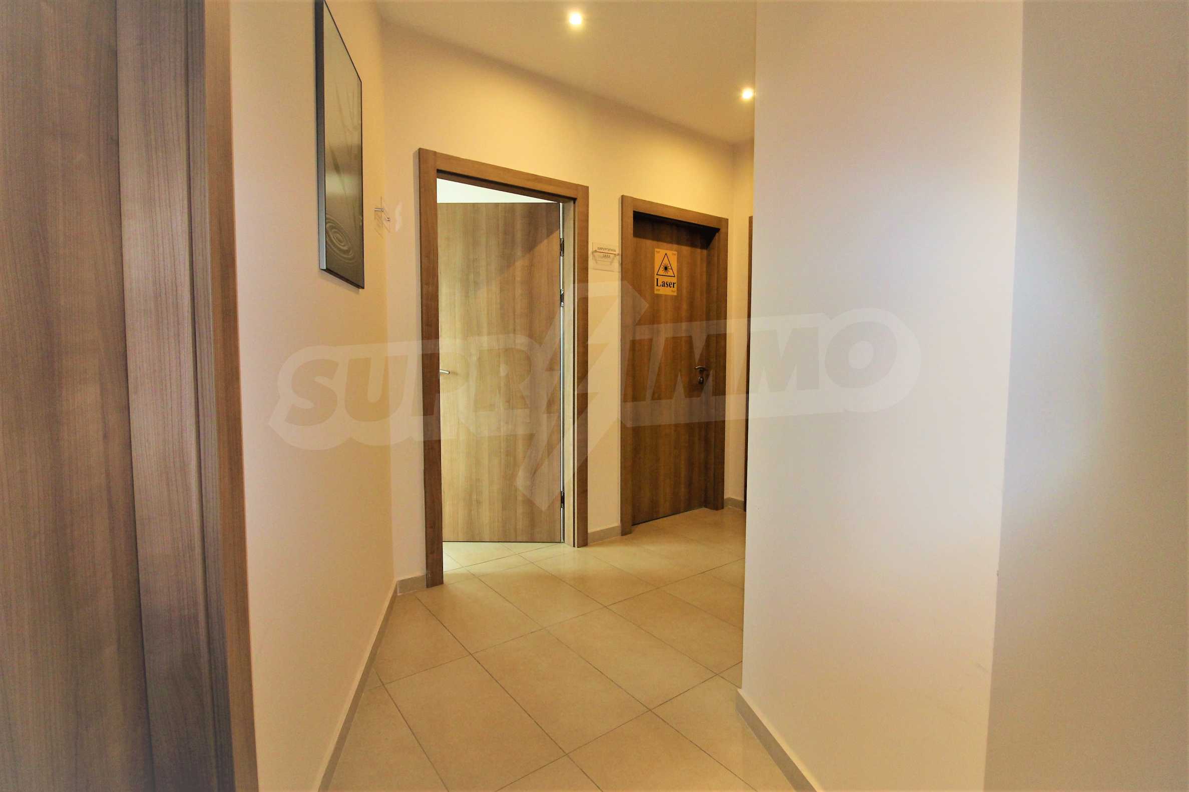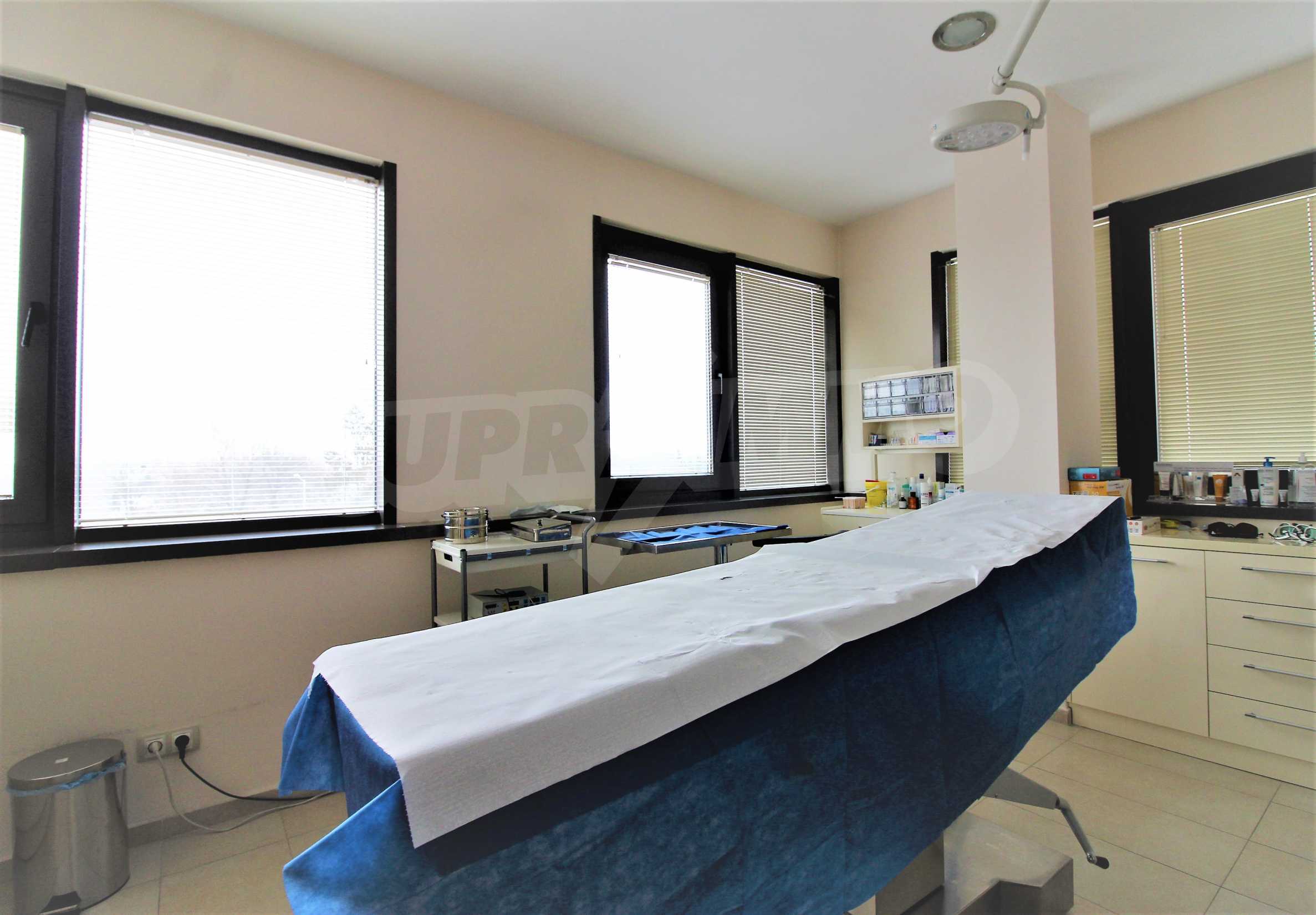 Распределение площади включает в себя: четыре рабочих помещения, кладовая, ванная комната, возможность использования оборудованного хирургического и предоперационного зала, конференц-зала и комнаты отдыха.