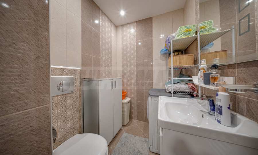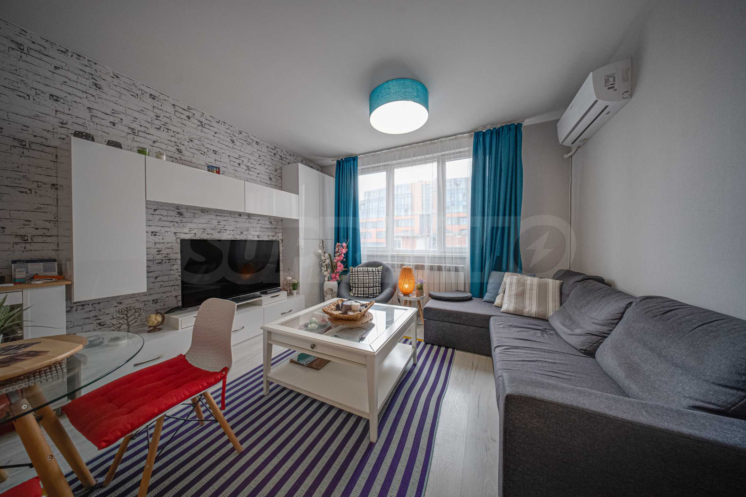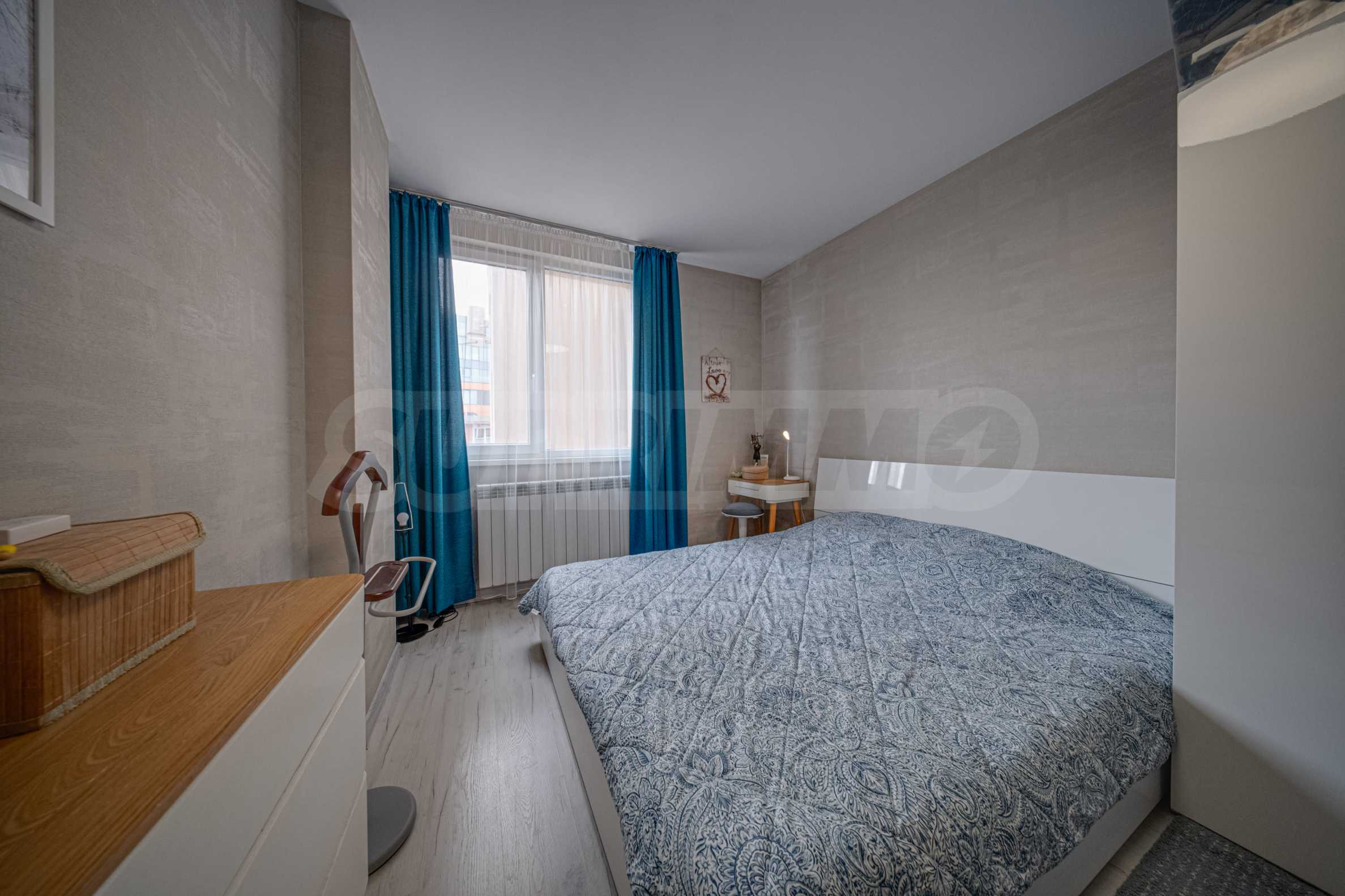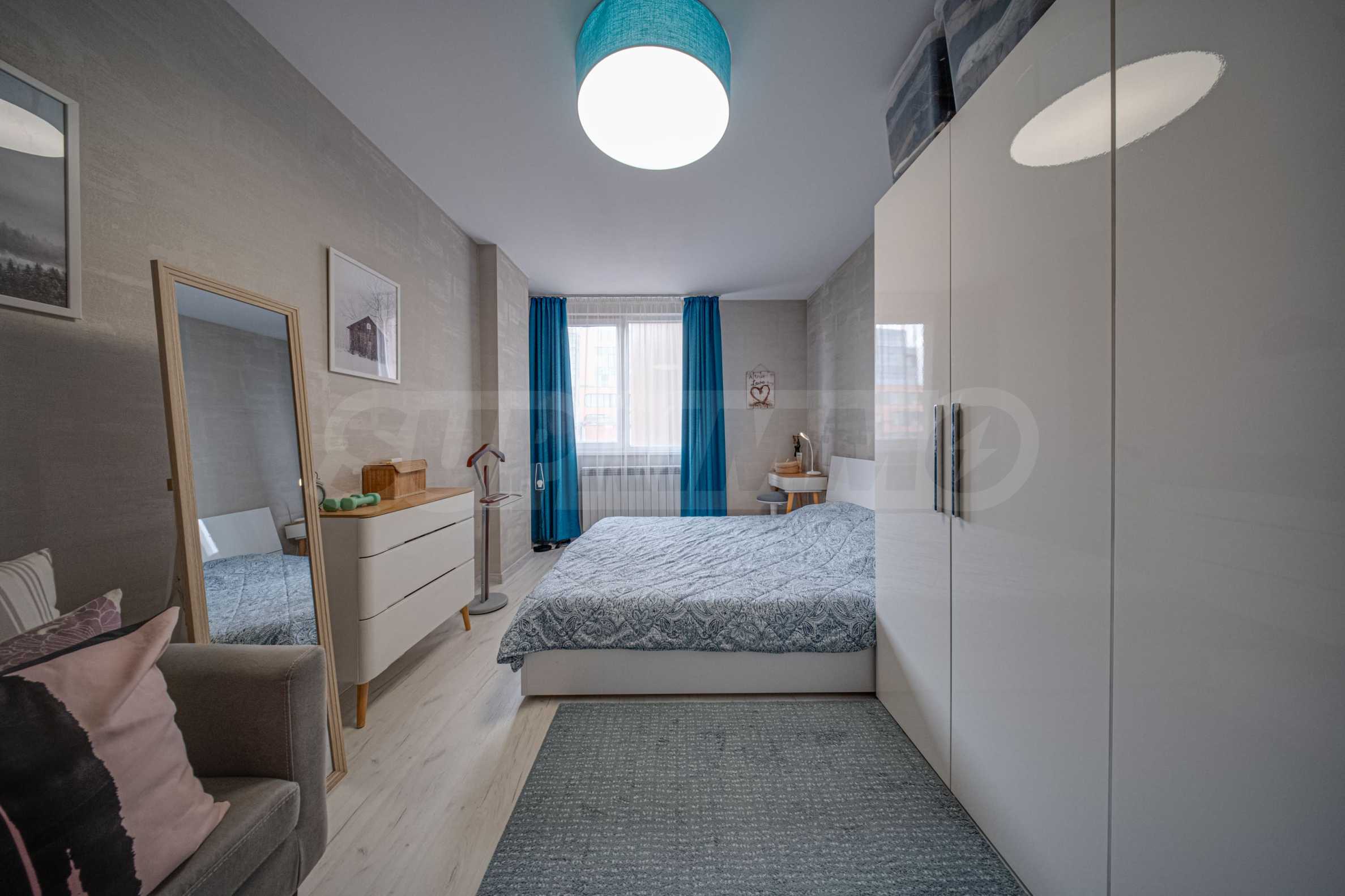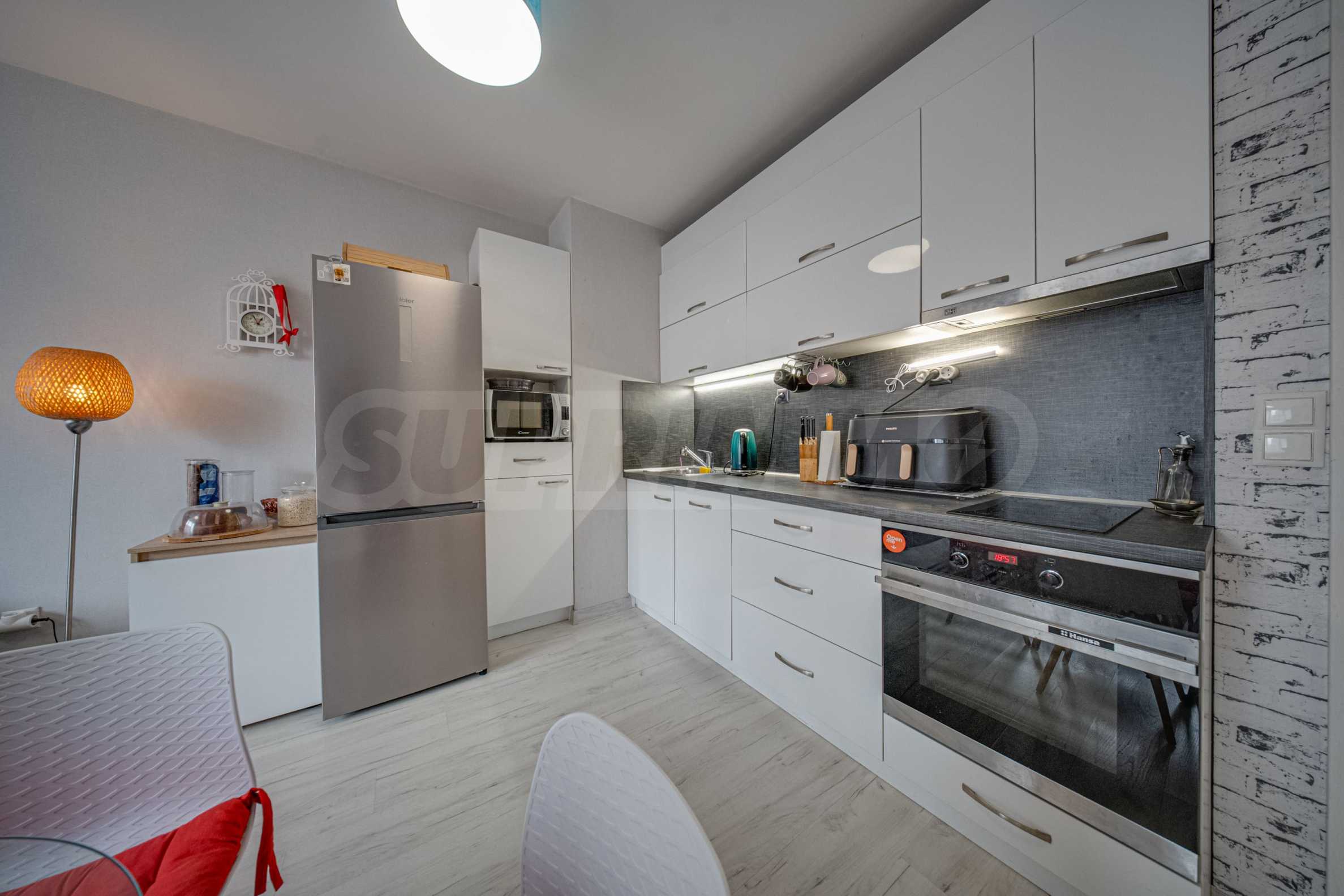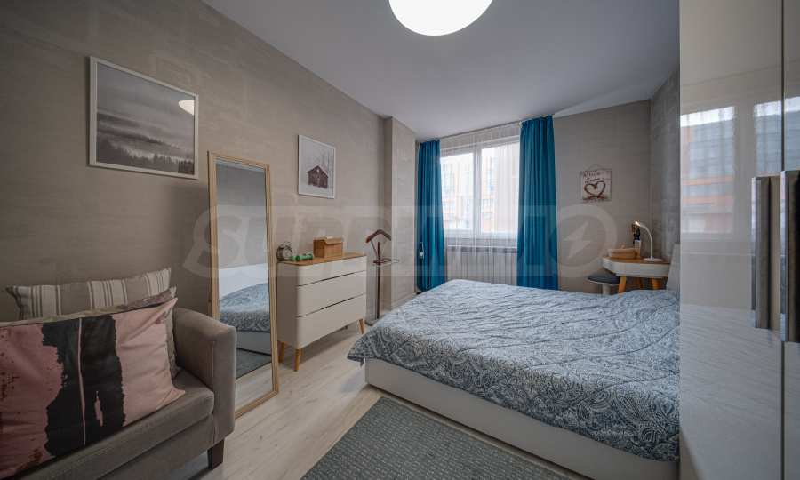 Квартира полностью меблирована и оборудована: стиральная машина, посудомоечная машина, тостер, кофемашина, духовой шкаф, варочная панель, вытяжка, обеденный стол, стулья, мягкий диван, кровати, шкафы, секции и аксессуары.