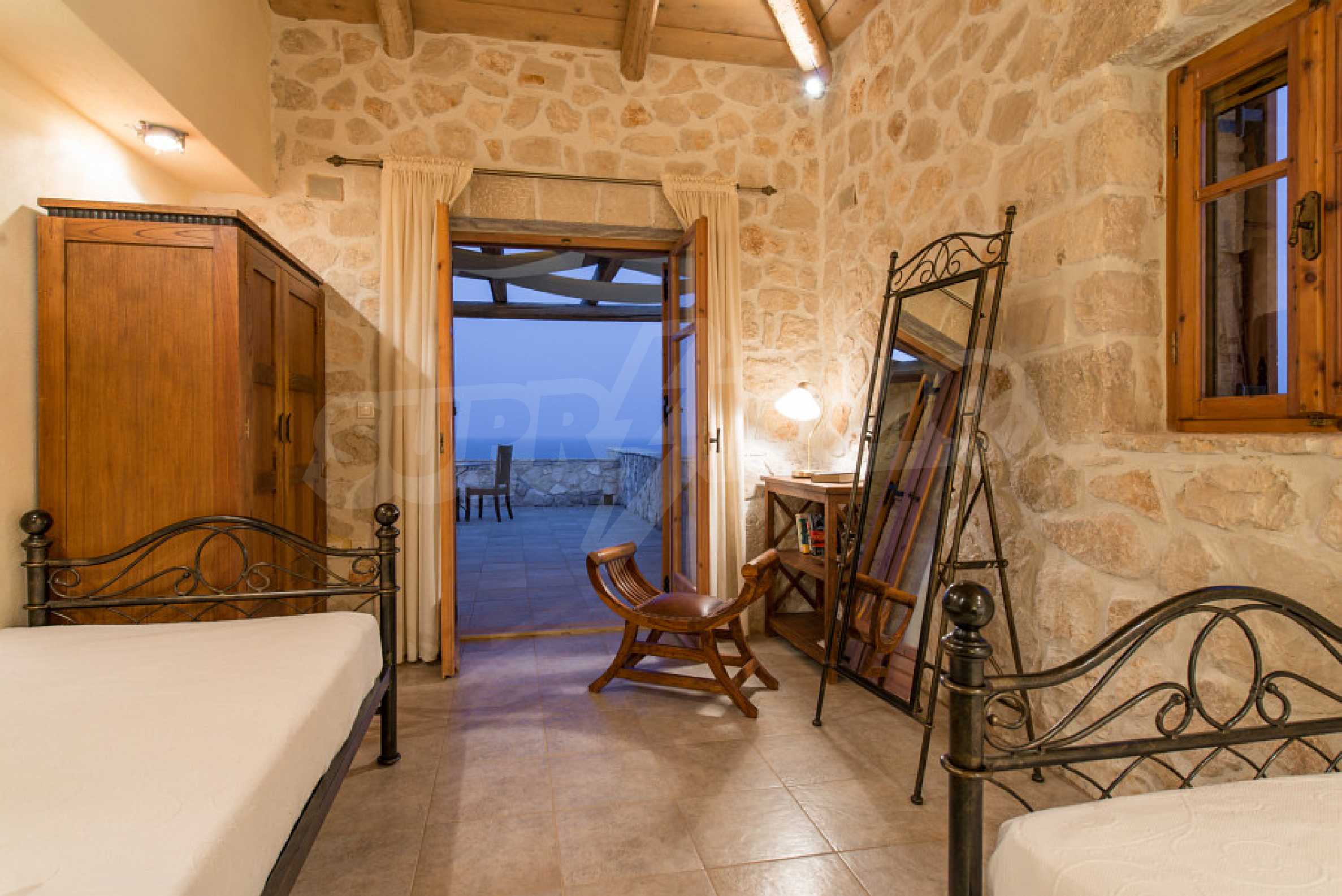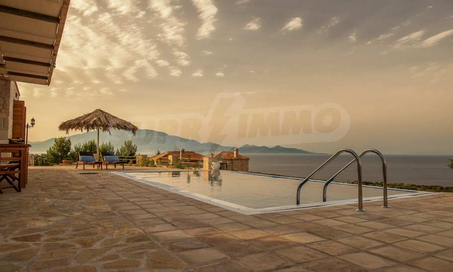 Недвижимость расположена на участке земли первой линии до моря, площадью 42 000 м2. и имеет прямой доступ к пляжу, а также беспрепятственный вид на бирюзовые воды Ионического моря.