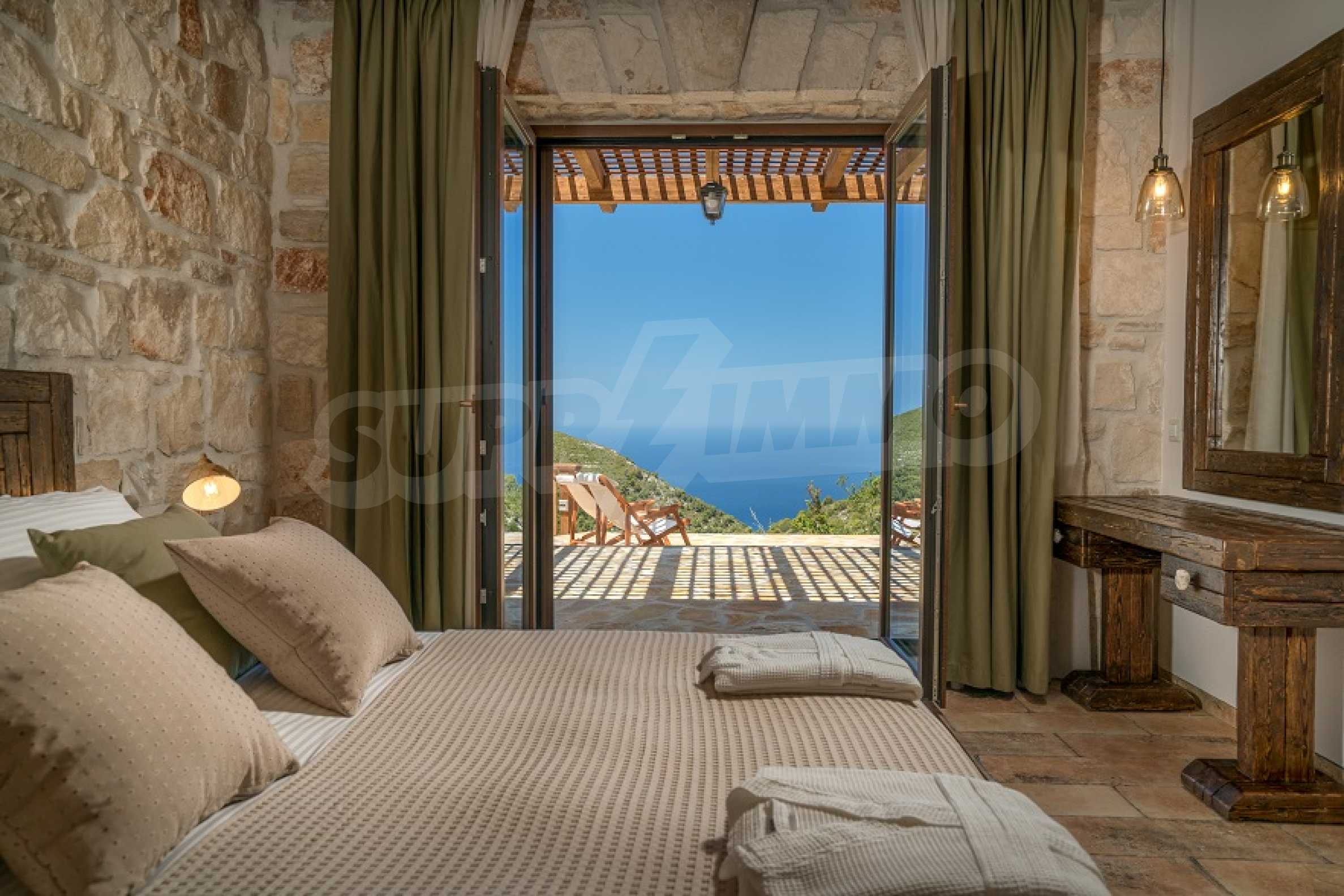 Мы представляем эту великолепную резиденцию, возвышающуюся над кристально чистыми водами Ионического моря. Свойство, которое едва ли можно описать словами даже ручкой писателя и поэта. Собственность, которая говорит сама за себя - истинное определение грации, стиля, комфорта и роскоши, потому что греки знают как!