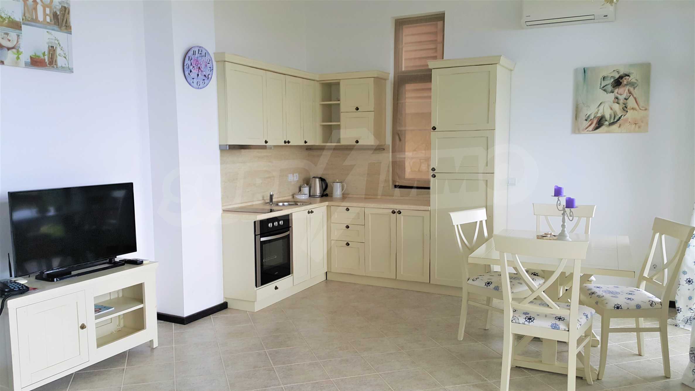 Мы предлагаем вам однокомнатную квартиру в замечательном комплексе на берегу моря, на мысе Колокита, с впечатляющей инфраструктурой и уникальными видами на Созополь и море - Sozopolis Holiday Spa.