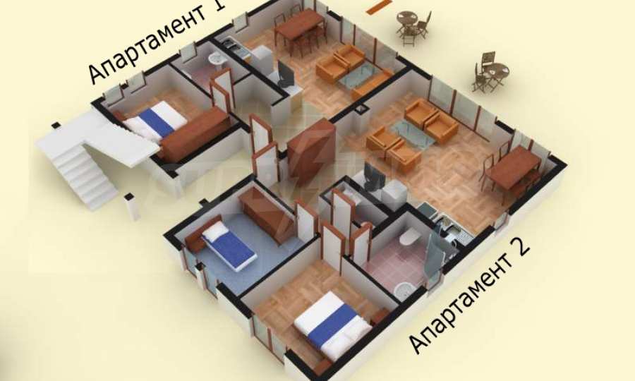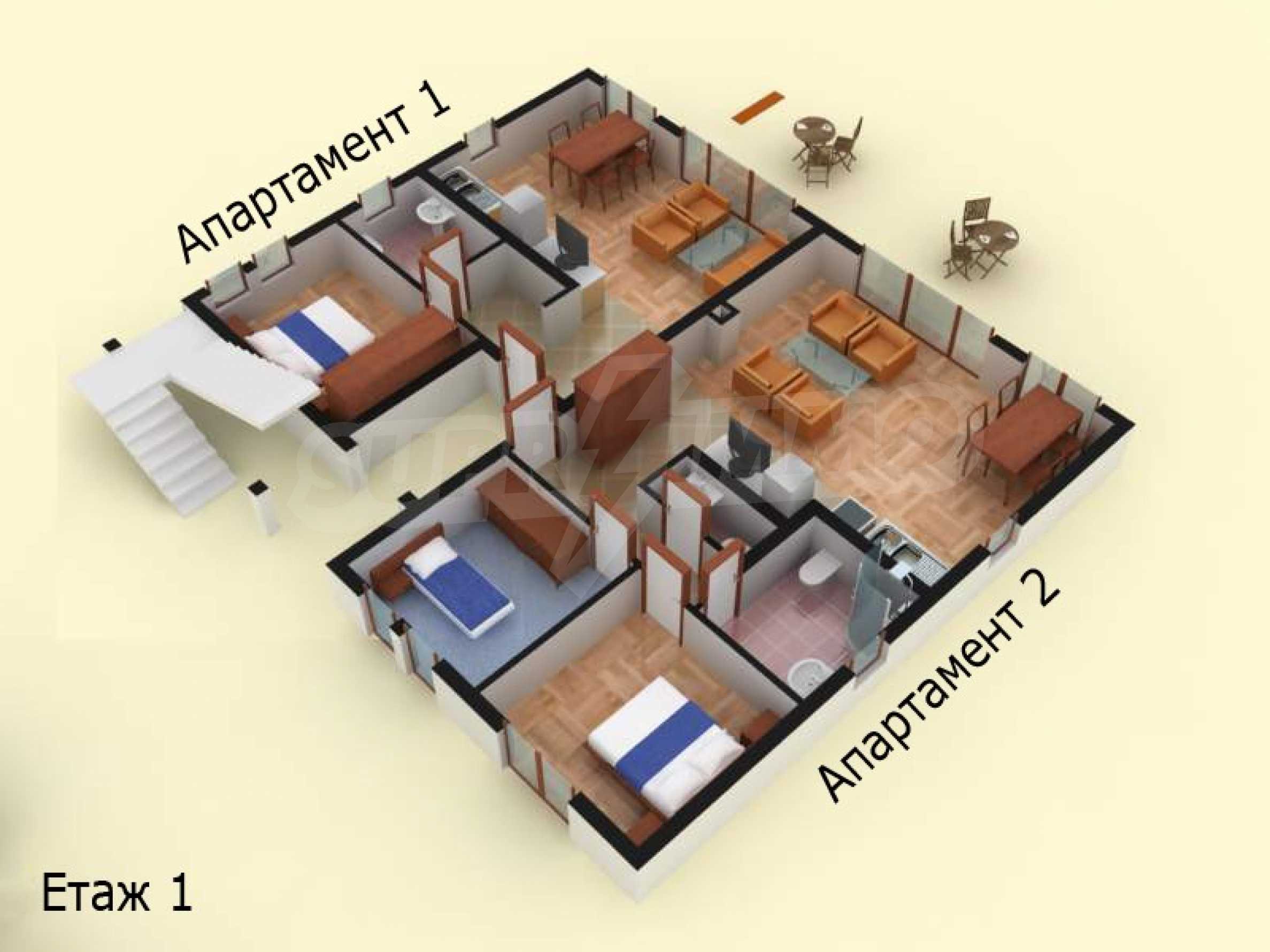 Двухкомнатная квартира расположена на первом этаже в доме № 67. Недвижимость полностью меблирована и оборудована, состоит из мини-кухни, гостиной и столовой, спальни, ванной комнаты. Квартира с видом на северо-запад и имеет великолепную веранду, с которой открывается прекрасный вид на Созополь и море.