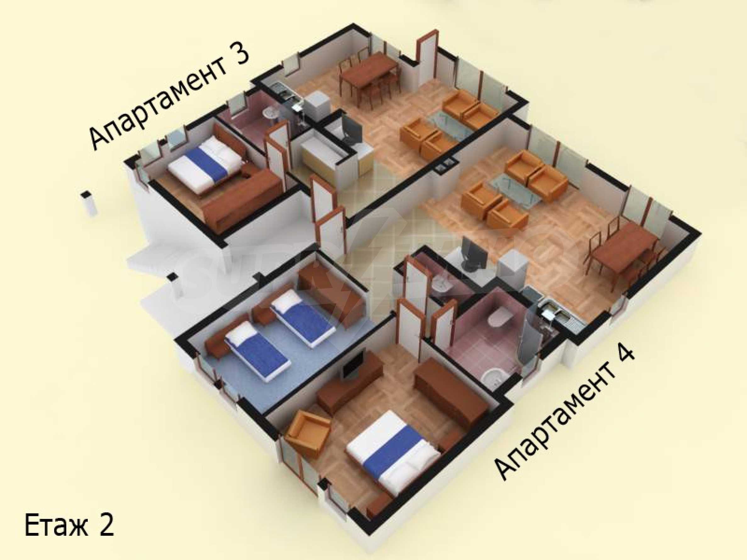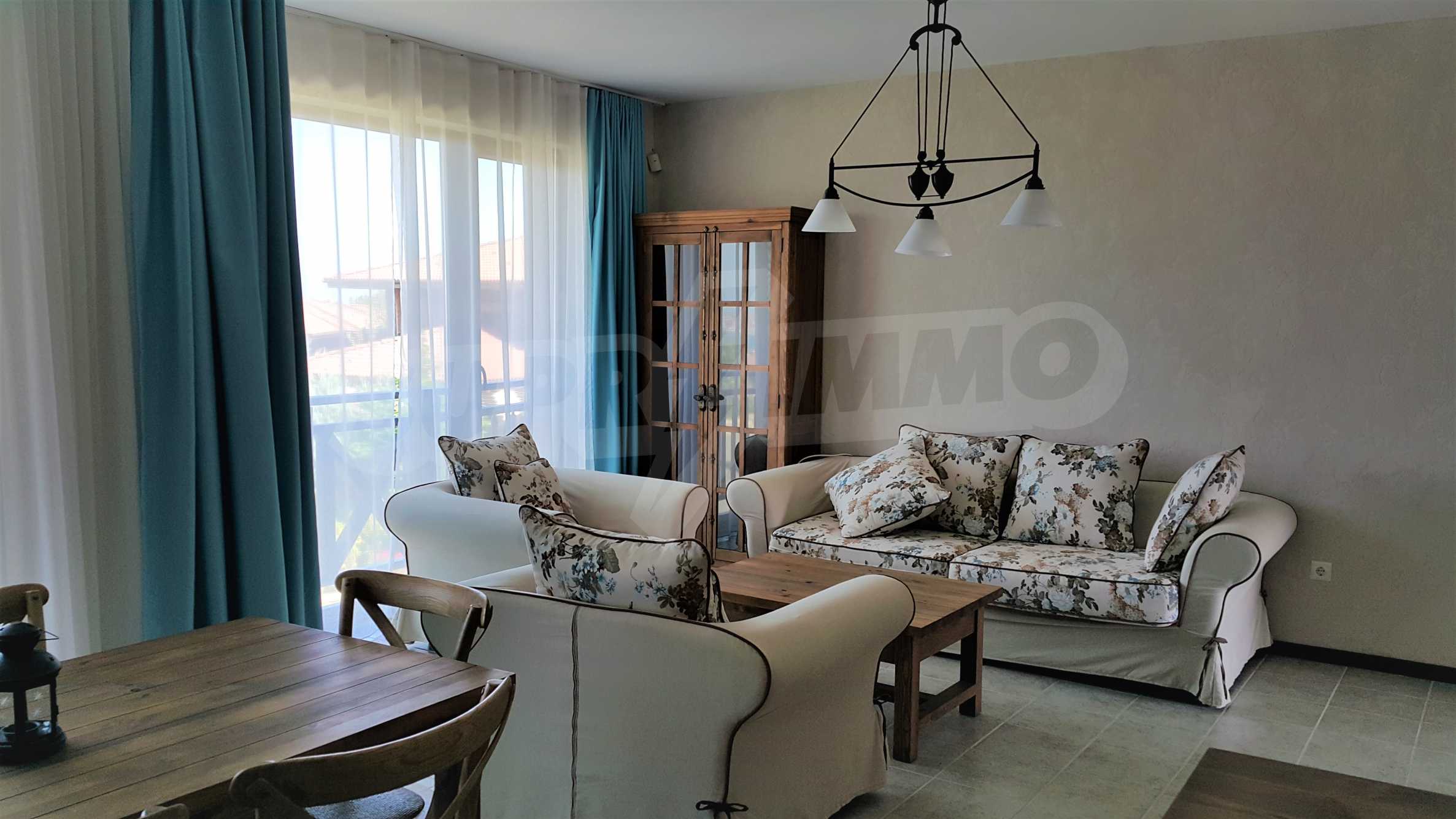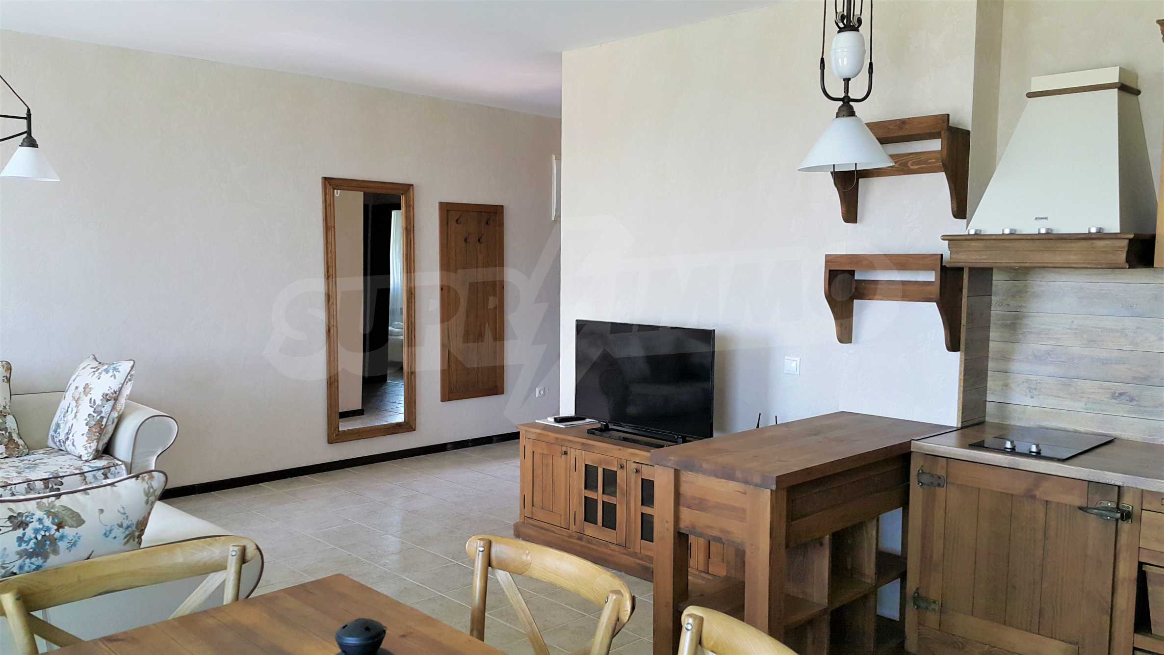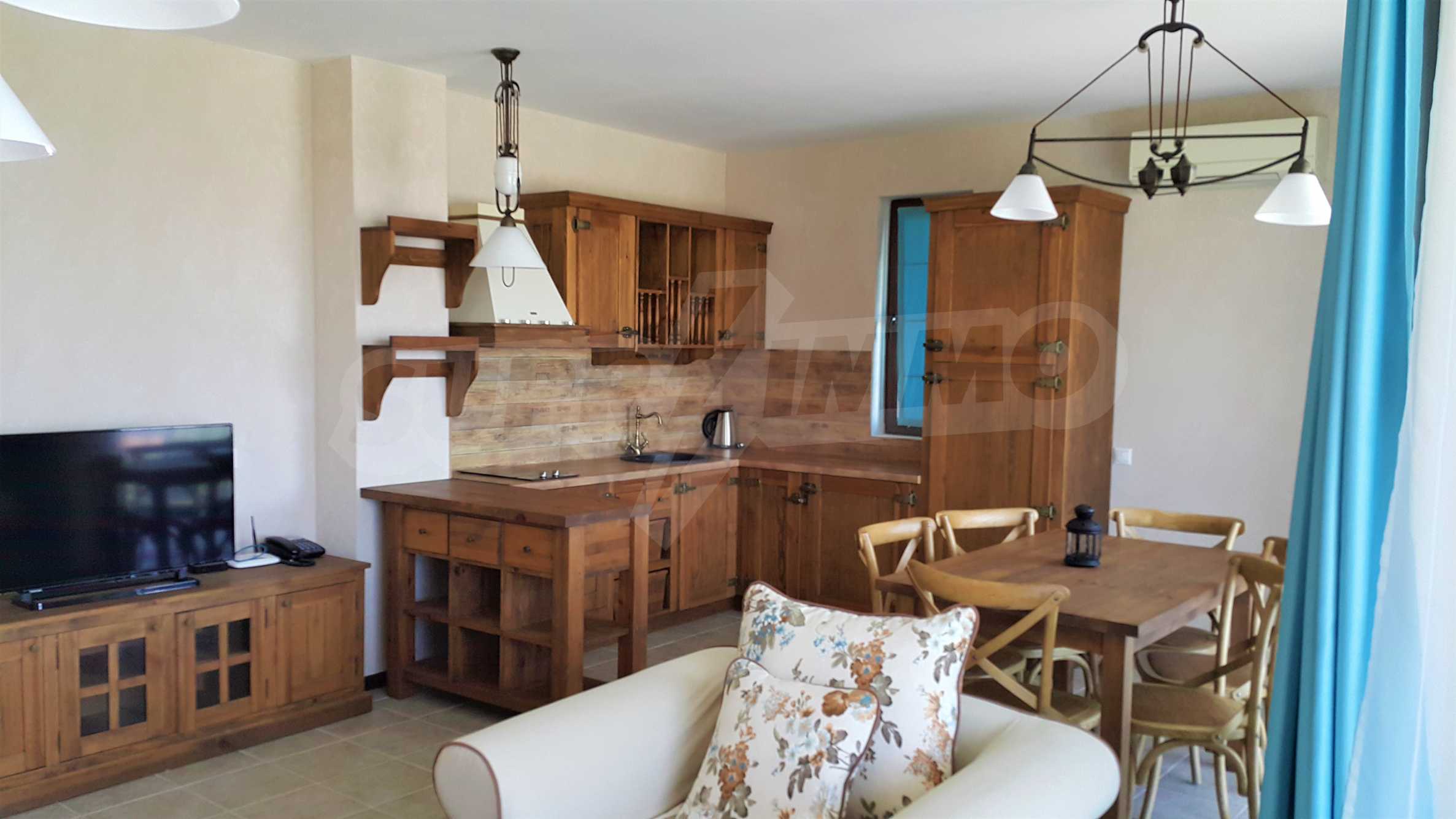 Стильно меблированные и полностью оборудованные апартаменты расположены на втором этаже. Недвижимость состоит из кухни, гостиной и столовой, спальни, ванной комнаты. Квартира с видом на северо-запад и имеет балкон с видом на Созополь и море.