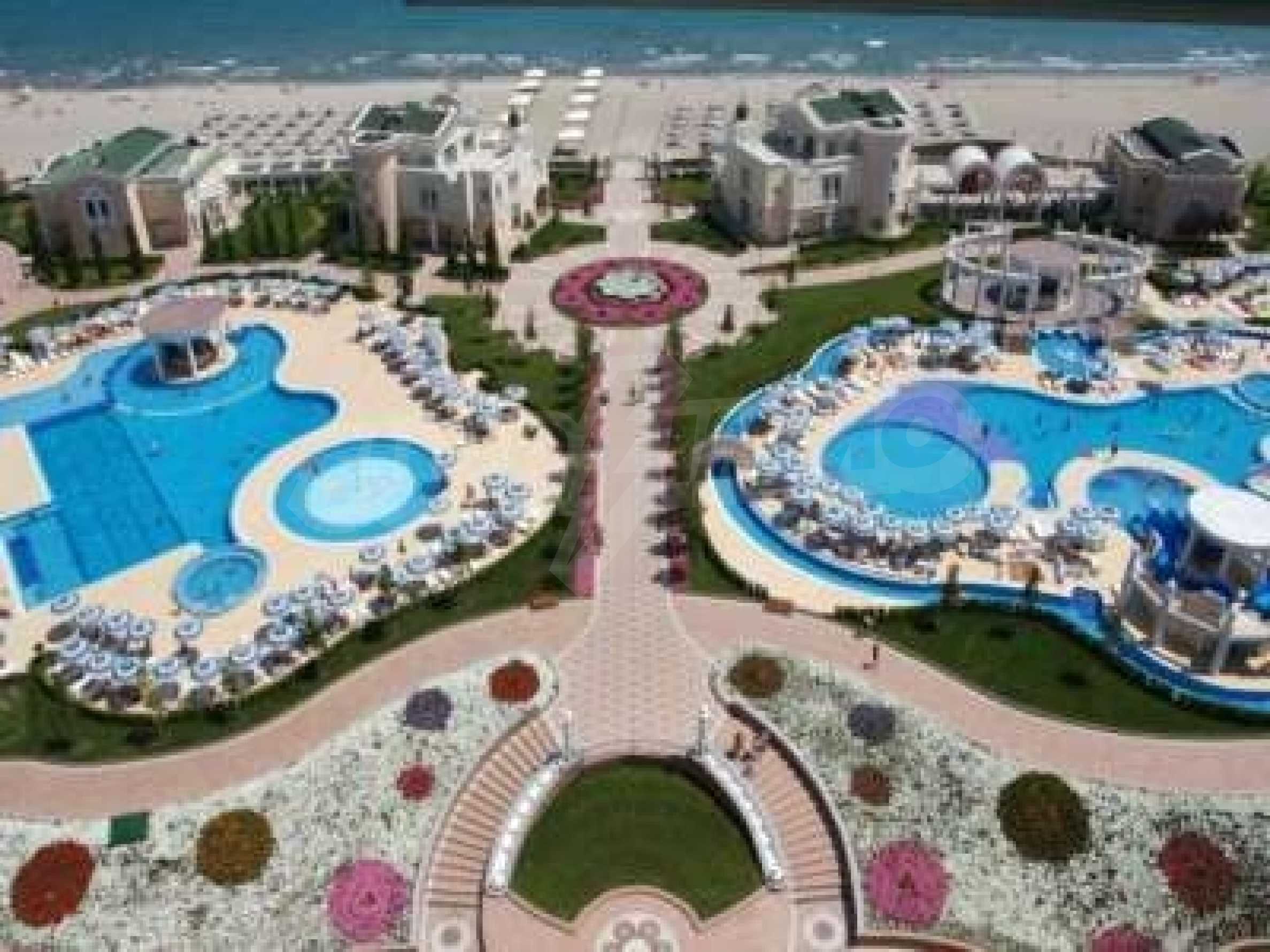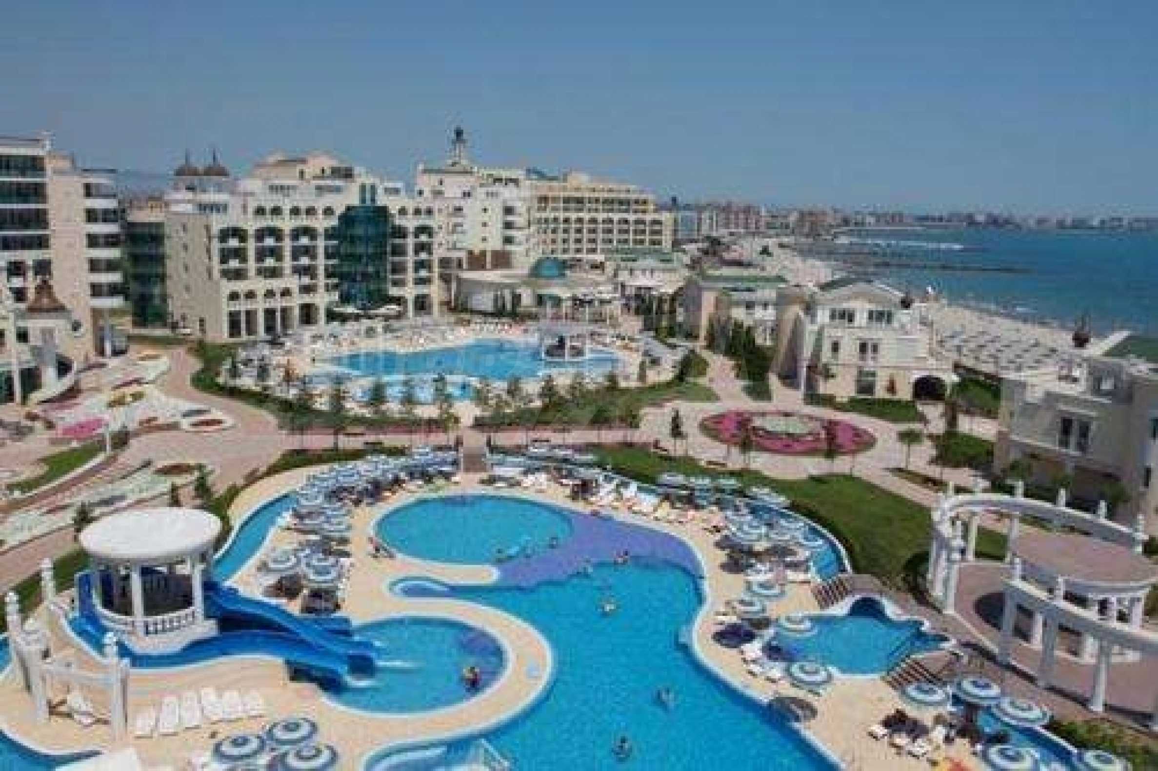 Sunset Resort - сказочный комплекс, расположенный прямо на красивом природном песчаном пляже в Поморие на побережье Черного моря. Роскошный комплекс 5 * состоит из 5 зданий и 6 роскошных вилл на набережной, построенных на площади 115 000 кв. в Поморие является одним из крупнейших 2-спальных объектов недвижимости на курорте. Он расположен в тихом здании Alpha, что позволяет владельцу пользоваться всеми удобствами, доступными на курорте, избегая при этом каких-либо помех или громкого шума в конце дня. Это современные апартаменты с просторной гостиной с диваном-кроватью и обеденной зоной. , полностью оборудованная кухня, семейная ванная комната, 2 спальни, достаточно места для хранения и сейф. Отель комфортабелен и полностью меблирован и может вместить 6 человек, что идеально подходит для семьи с маленькими детьми. Балкон в задней части здания является отличным и безопасным местом для размещения друзей и семьи вечером, наблюдая закат. Квартира находится менее чем в 5 минутах ходьбы от пляжа и выходит на тихую приморскую улицу. Он находится в непосредственной близости от местных супермаркетов и ресторанов. На территории отеля есть: стойка регистрации и круглосуточная охрана. Бассейн с подогревом для взрослых и детей. Просторная терраса у бассейна. Детская игровая площадка. Коктейль и кафе-бары. , процедуры и лечениеБьюти-салонМагазиныБоулинг-аллеяНастольные бассейныКомплекс расположен на южном пляже города Поморие и является одним из самых безопасных пляжей в Болгарии, так как здесь есть небольшой прибой и почти нет прилива. Аквапарк находится рядом с комплексом и является сказочным семейным выходным днем. Сансет Ризорт находится недалеко от главной автомагистрали, по которой можно добраться до популярного курорта Солнечный берег и древнего города Несебр. Всего в 15 минутах от аэропорта Бургаса это замечательное место для покупки семейного дома для отдыха в Болгарии !! , Этот отель является одним из самых больших апартаментов с 2 спальнями в Сансет Резорт, он расположен в здании Альфа и позволяет владельцу пользоваться всеми удобствами, доступными на курорте, избегая при этом каких-либо помех или громкого шума в конце дня. Обнесенный стеной балкон в задней части здания является отличным и безопасным местом для размещения друзей и семьи вечером, наблюдая закат.