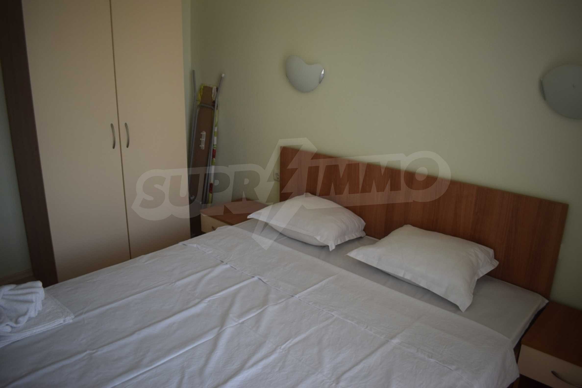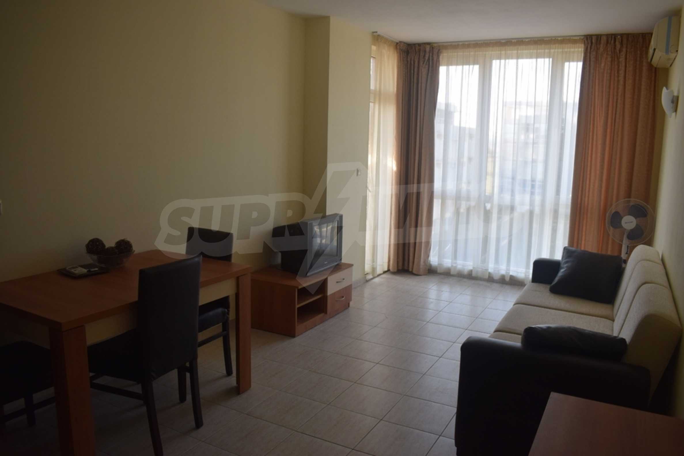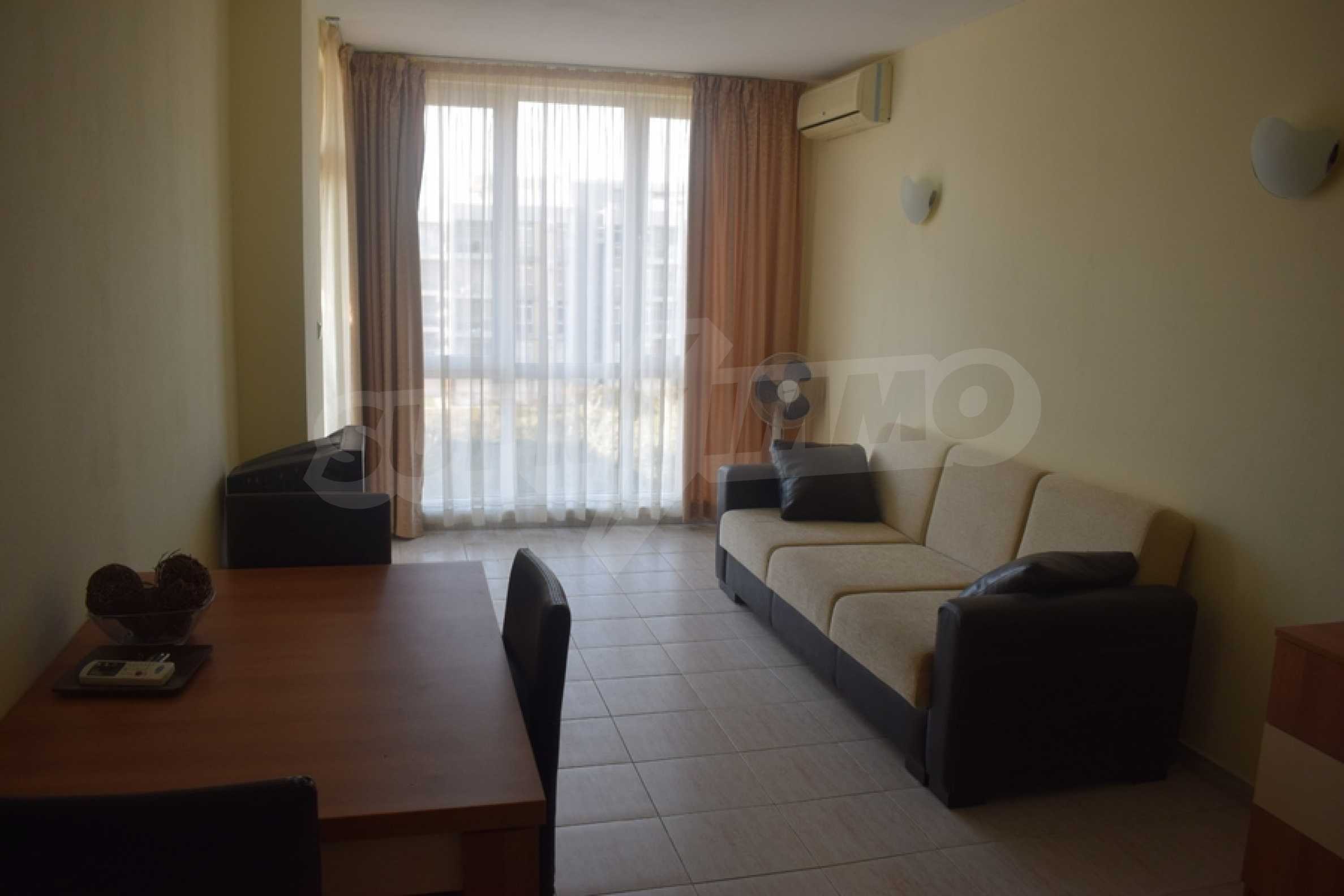 Эта квартира на третьем этаже на Солнечном берегу меблирована по очень высокому стандарту. Включает в себя гостиную открытой планировки со столовой и полностью оборудованной кухней, спальню с двуспальной кроватью, полностью оборудованную ванную комнату и отдельный балкон со спальней с видом на улицу.