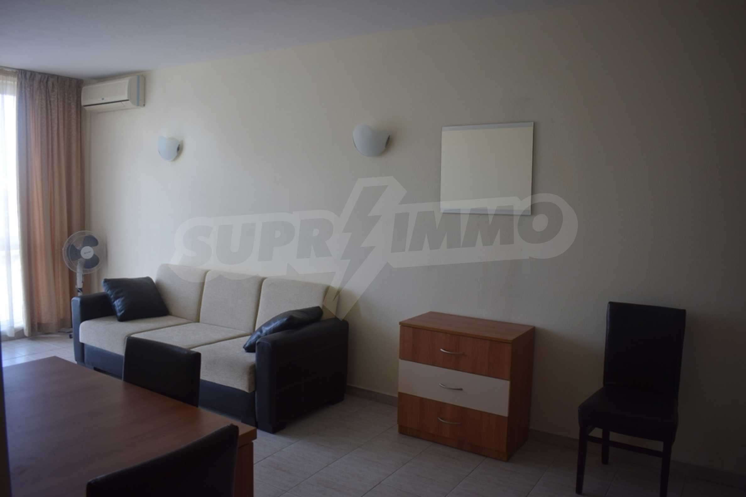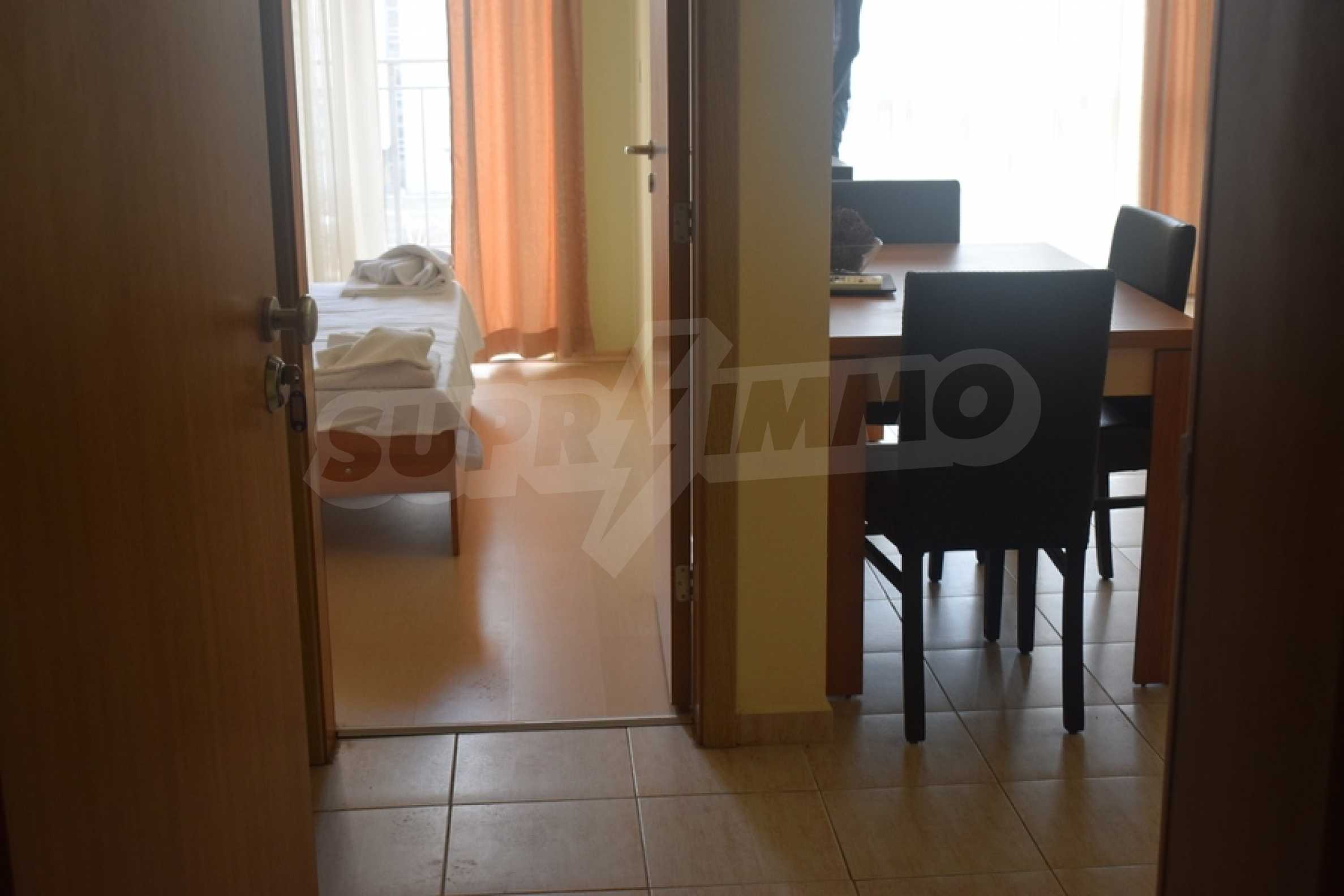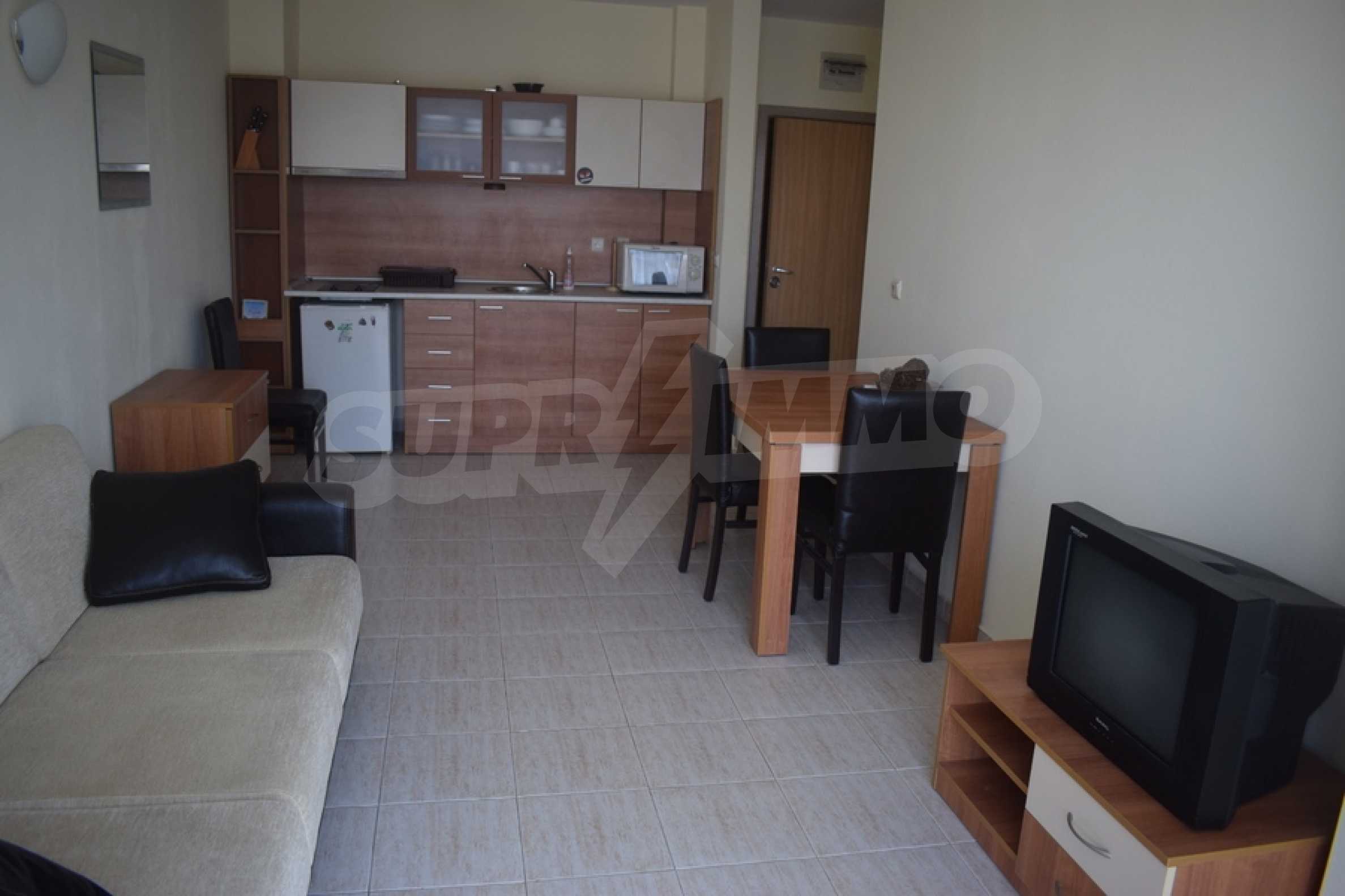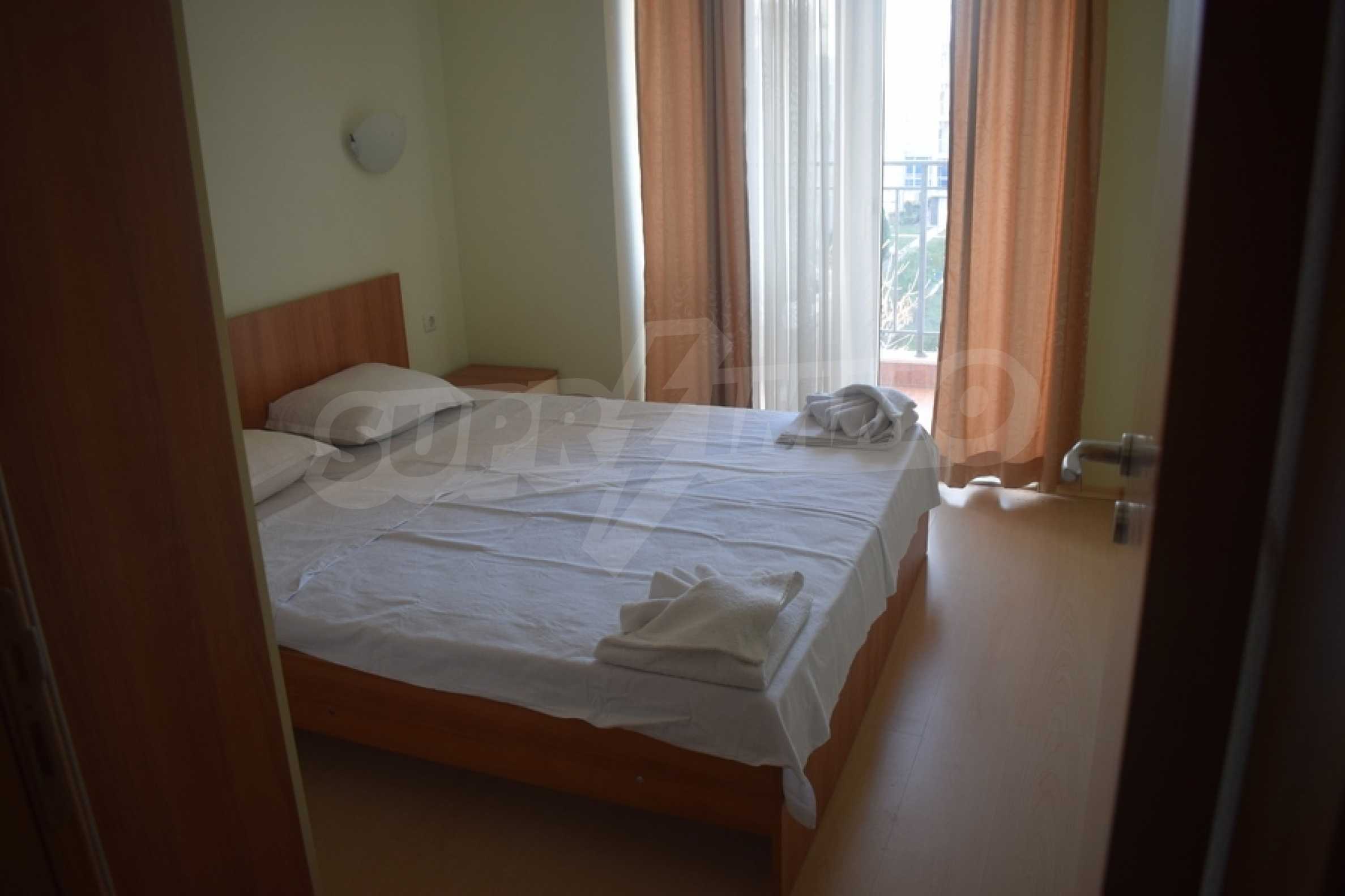 Эта квартира на третьем этаже на Солнечном берегу меблирована по очень высокому стандарту. Включает в себя гостиную открытой планировки со столовой и полностью оборудованной кухней, спальню с двуспальной кроватью, полностью оборудованную ванную комнату и отдельный балкон со спальней с видом на улицу.
