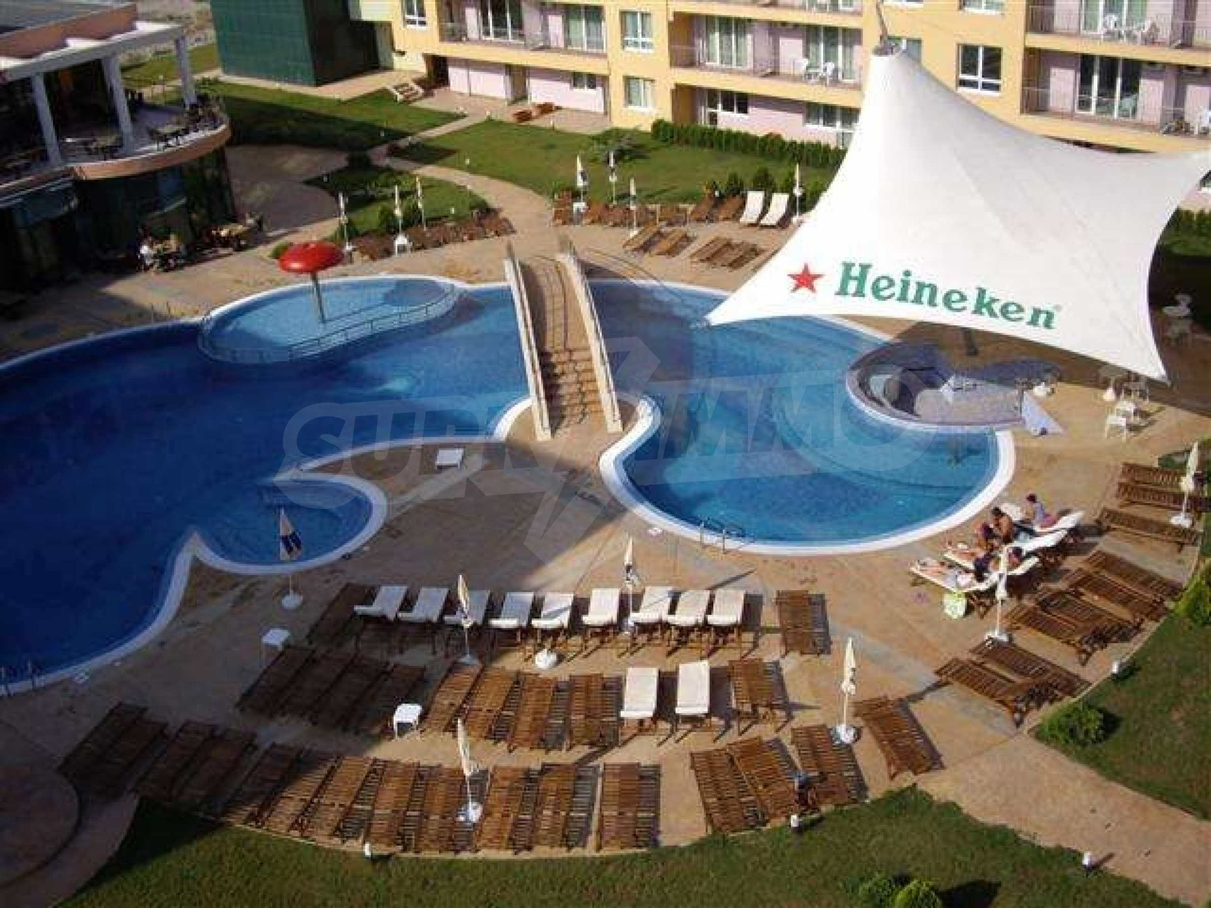 Pollo Resort - красивый комплекс на Солнечном берегу, один из самых популярных курортов на побережье Черного моря. В это современный и стильный комплекс с множеством удобств для владельцев и их гостей. Комплекс находится в прекрасном месте, в нескольких минутах ходьбы от центра курорта, где вы найдете множество торговых центров, супермаркетов, баров и ресторанов.
