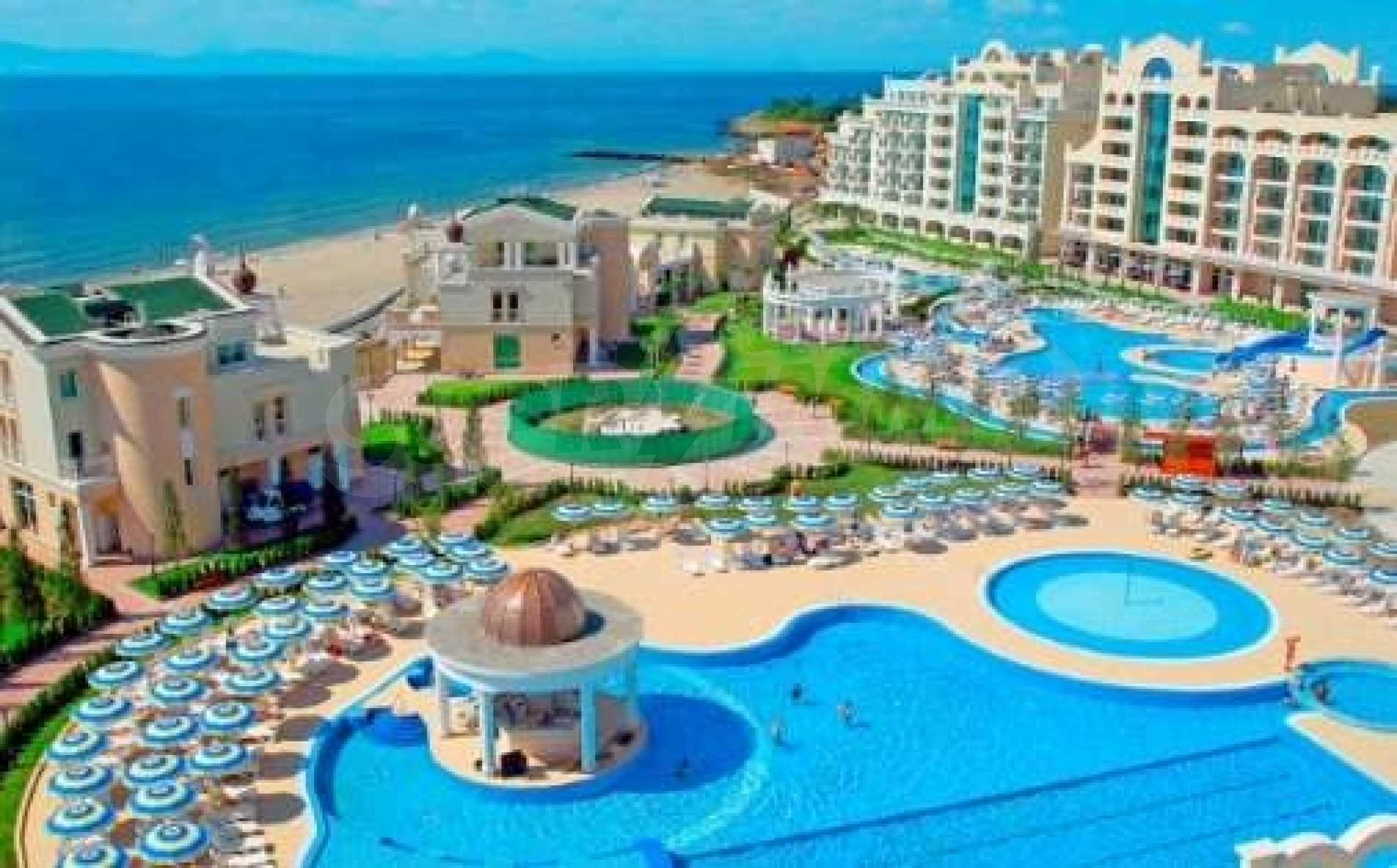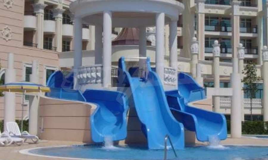 Sunset Resort - красивый комплекс, расположенный в небольшом городе Поморие на берегу Черного моря. Комплекс представляет собой 5-звездочный курорт со сказочными удобствами для взрослых и детей и всего в 15 минутах от аэропорта Бургаса с хорошим арендным потенциалом. Эта квартира на втором этаже для продажи в Поморие имеет гостиную открытой планировки, столовую, хорошо оборудованную кухню, 2 спальни, семейная ванная комната и балкон с видом на бассейн. Квартира была отремонтирована в 2016 году и оснащена высококачественным пакетом мебели Gold Standard. Услуги в комплексе включают в себя: Прием и 24-часовая охранаБассейны с бассейном. Детский бассейн с горкой. Просторные террасы у бассейна. Бар у бассейна. Детская игровая зона. Коктейль и кафе-бары. Рестораны, гриль-бар и спа-центр. сауна, паровая баня, массаж, процедуры и лечениеБьюти-салонБоулинг-аллеяБильярдные столыМагазины Аквапарк Sunset - это новый аквапарк, который был открыт в 2016 году и находится всего в 150 метрах от комплекса. Аквапарк отлично подходит для всех возрастов, здесь есть множество водных горок и аттракционов. Есть также игровая площадка, зеленая зона для принятия солнечных ванн и специально построенная мульти-развлекательная арена. Это фантастическая квартира, которую можно купить в Болгарии с отличным арендным потенциалом. , Сказочный 5 * роскошный курорт со всеми удобствами для отдыха, которые вы можете пожелать, отличный выбор для отдыха высокого класса. Это полностью меблированная квартира с 2 спальнями (недавно отремонтированная). Sunset Aquapark - это совершенно новый аквапарк, расположенный всего в 150 м от комплекса. В 15 минутах езды от аэропорта Бургас