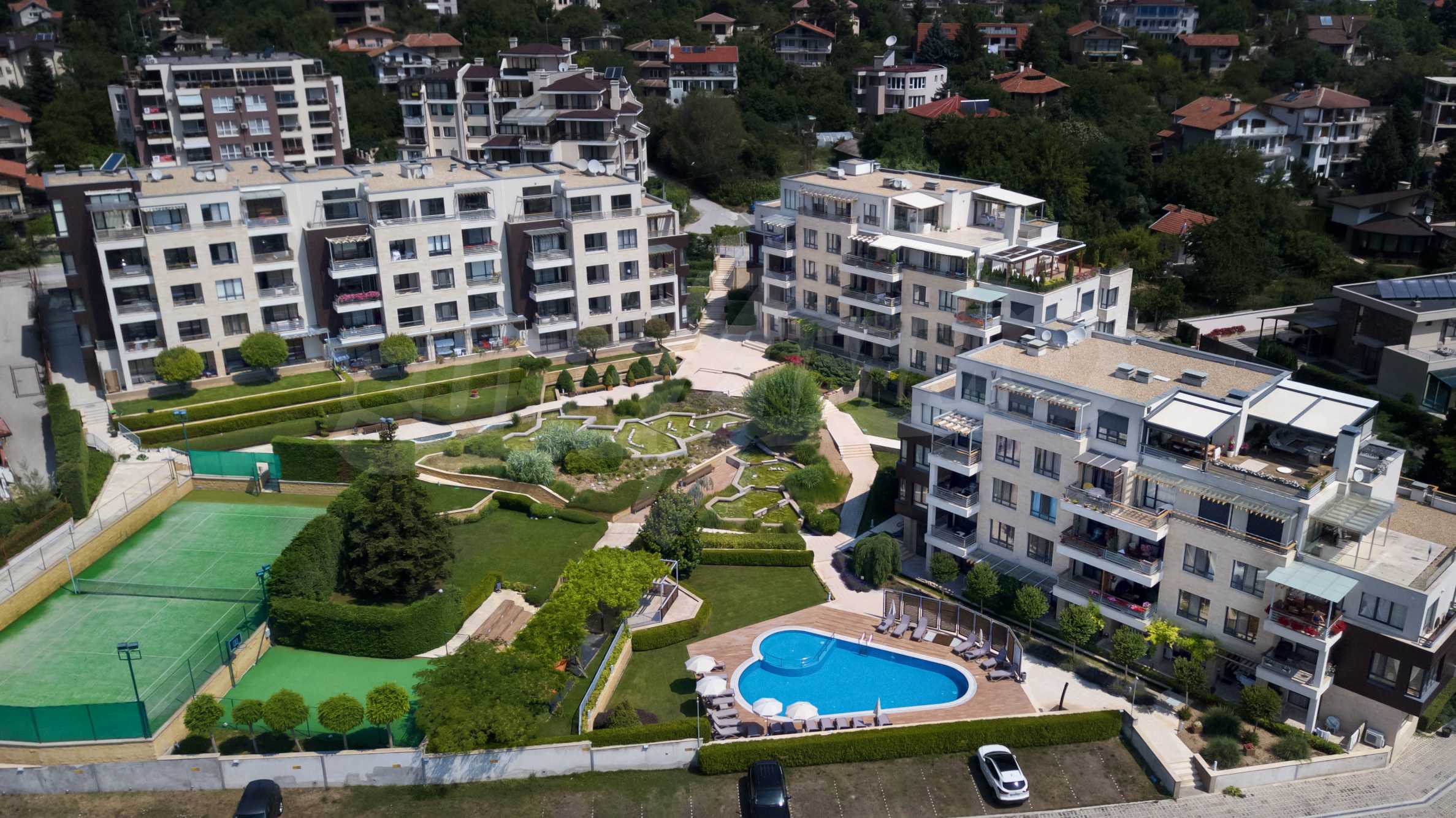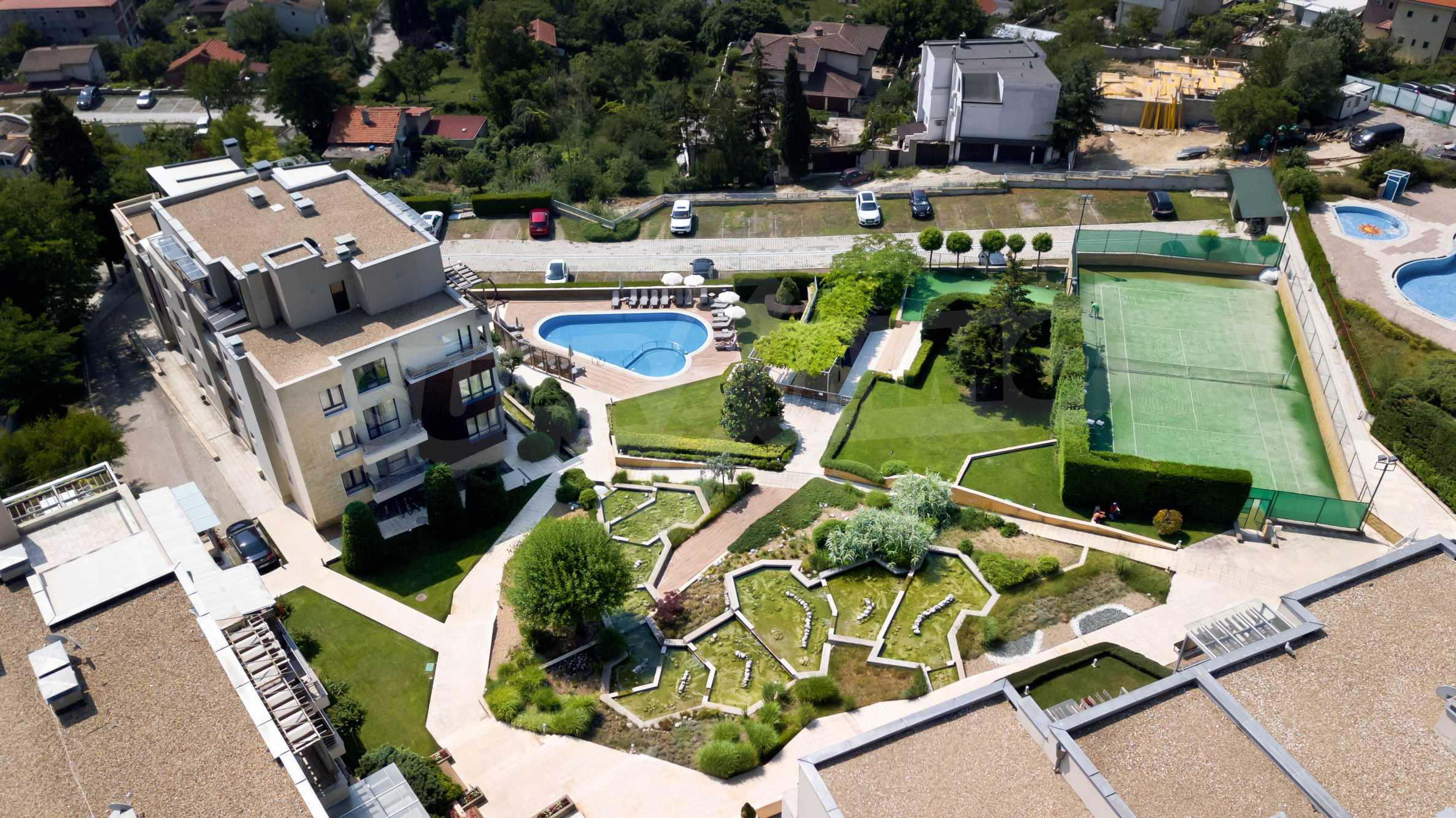 Для уюта и комфорта жителей в комплексе способствуют: бассейн, игровая площадка, теннисный корт, свободнотекущий ручей, снэк-бар, фитнес и сауна, круглосуточная охрана и видеонаблюдение комплекса, а также уход за зеленью и газонами.