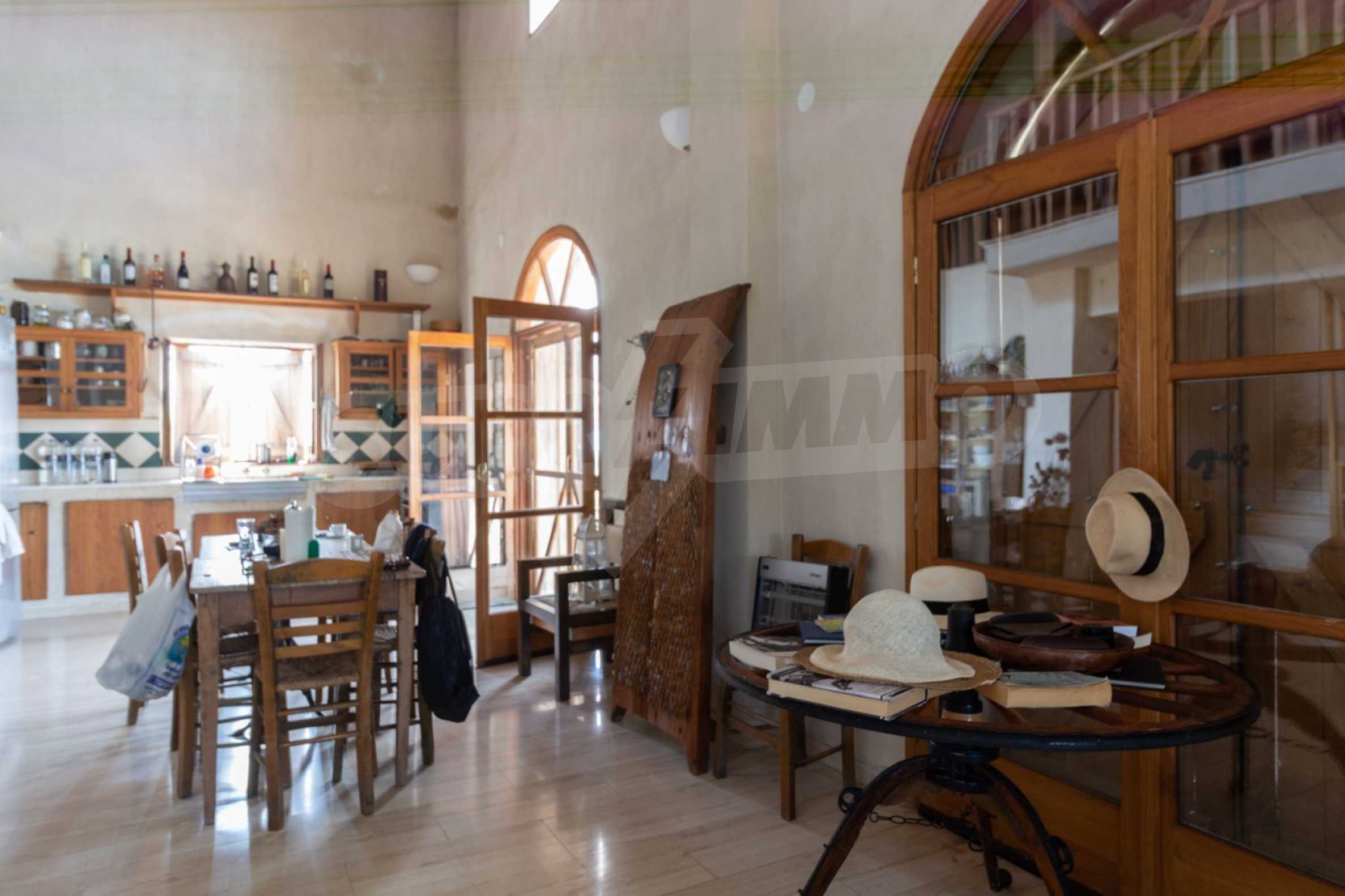 Каменный отдельно стоящий дом, 302 м², в Ситонии, Халкидики с западной ориентацией и с беспрепятственным постоянным видом на море. Свойство 2 км. от пляжа, 3 км. от центра поселка и окружен 13,5-акровым участком. Дом разделен на три уровня, состоит из гостиной, соединенной с кухней и столовой, двух спален и двух ванных комнат на первом этаже, двух спальни и ванная комната на первом этаже и кладовая с котельной на цокольном этаже. В собственности также есть большие балконы и сигнализация. Дом полностью оборудован и меблирован.