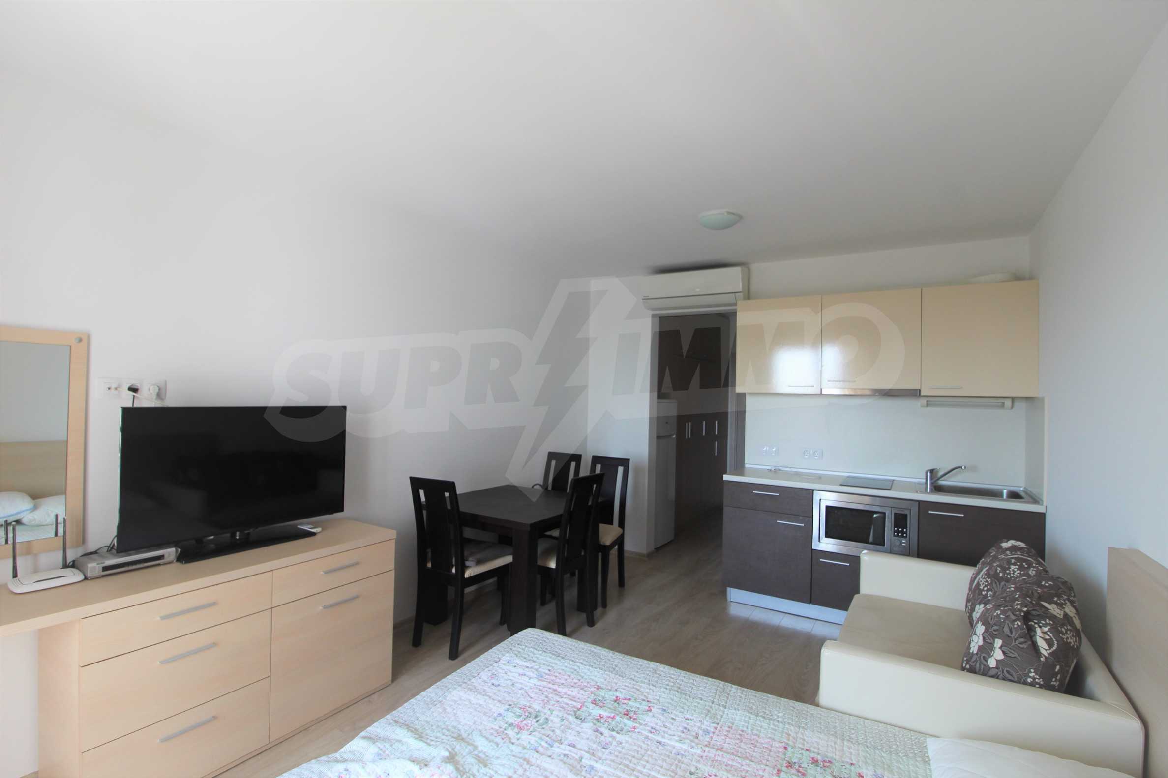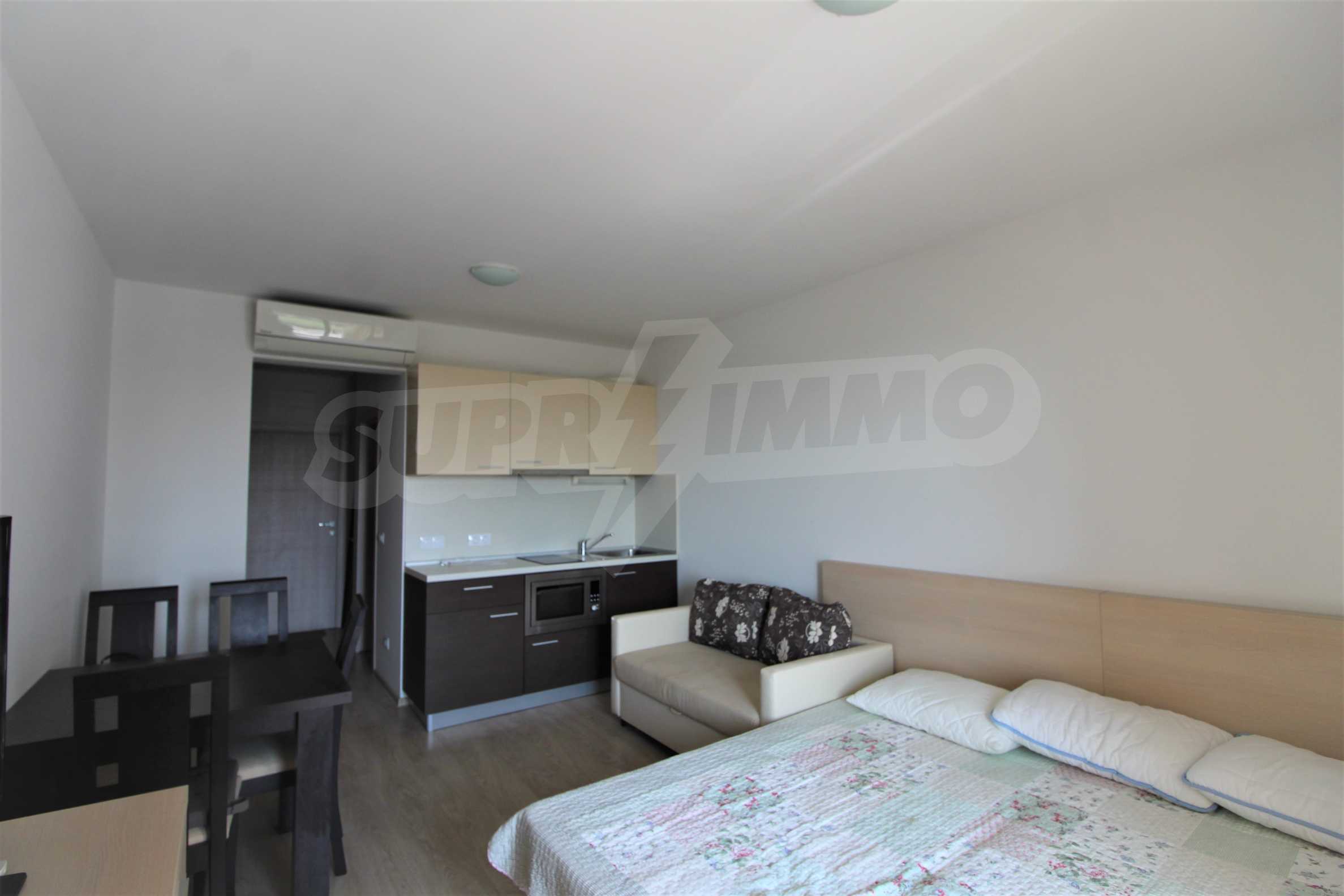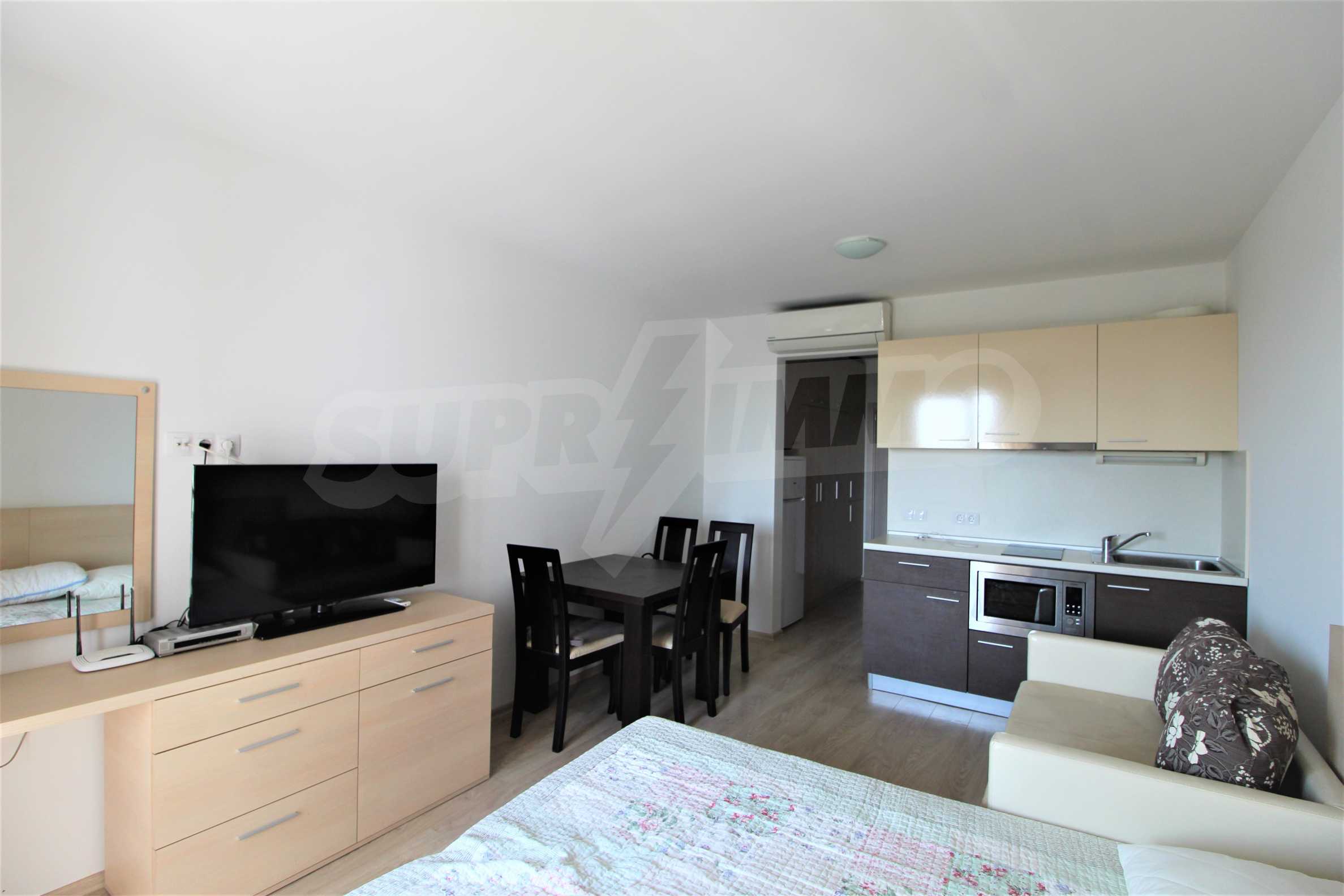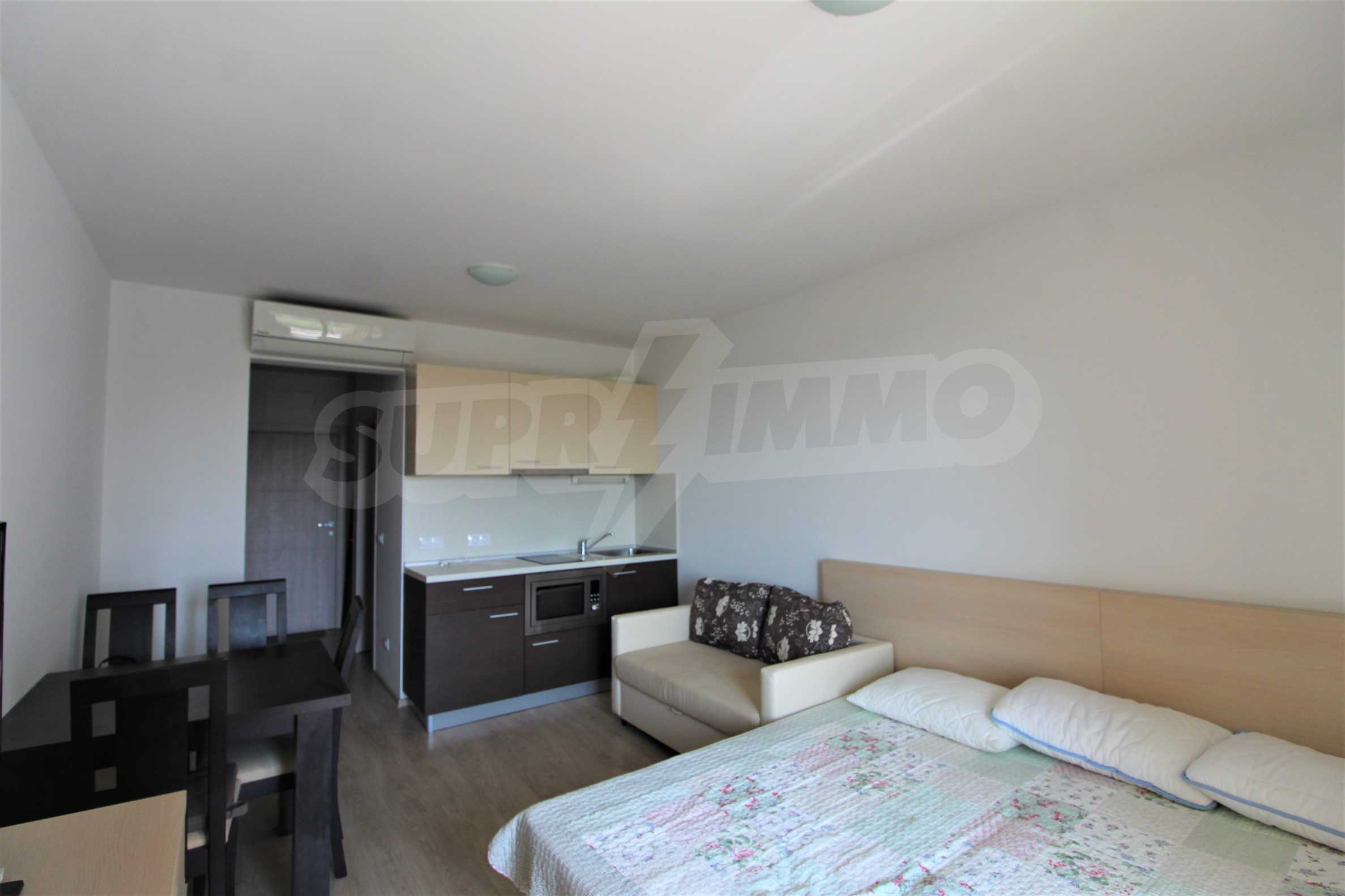 Мы предлагаем на продажу новую, просторную студию 37 м2, с удобной меблировкую и превосходным расположением всего в 300 метрах от пляжа Атлантис в Сарафово.