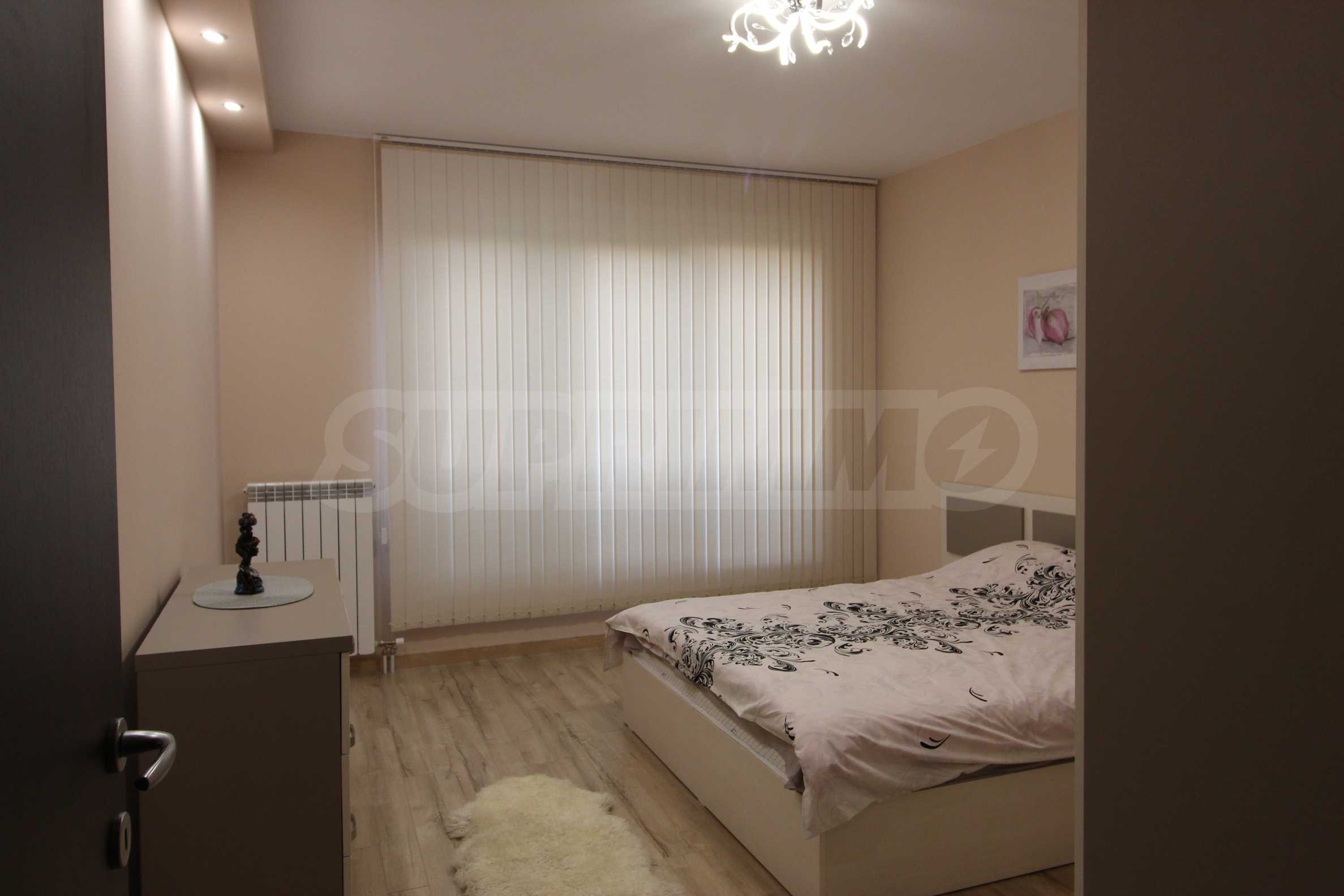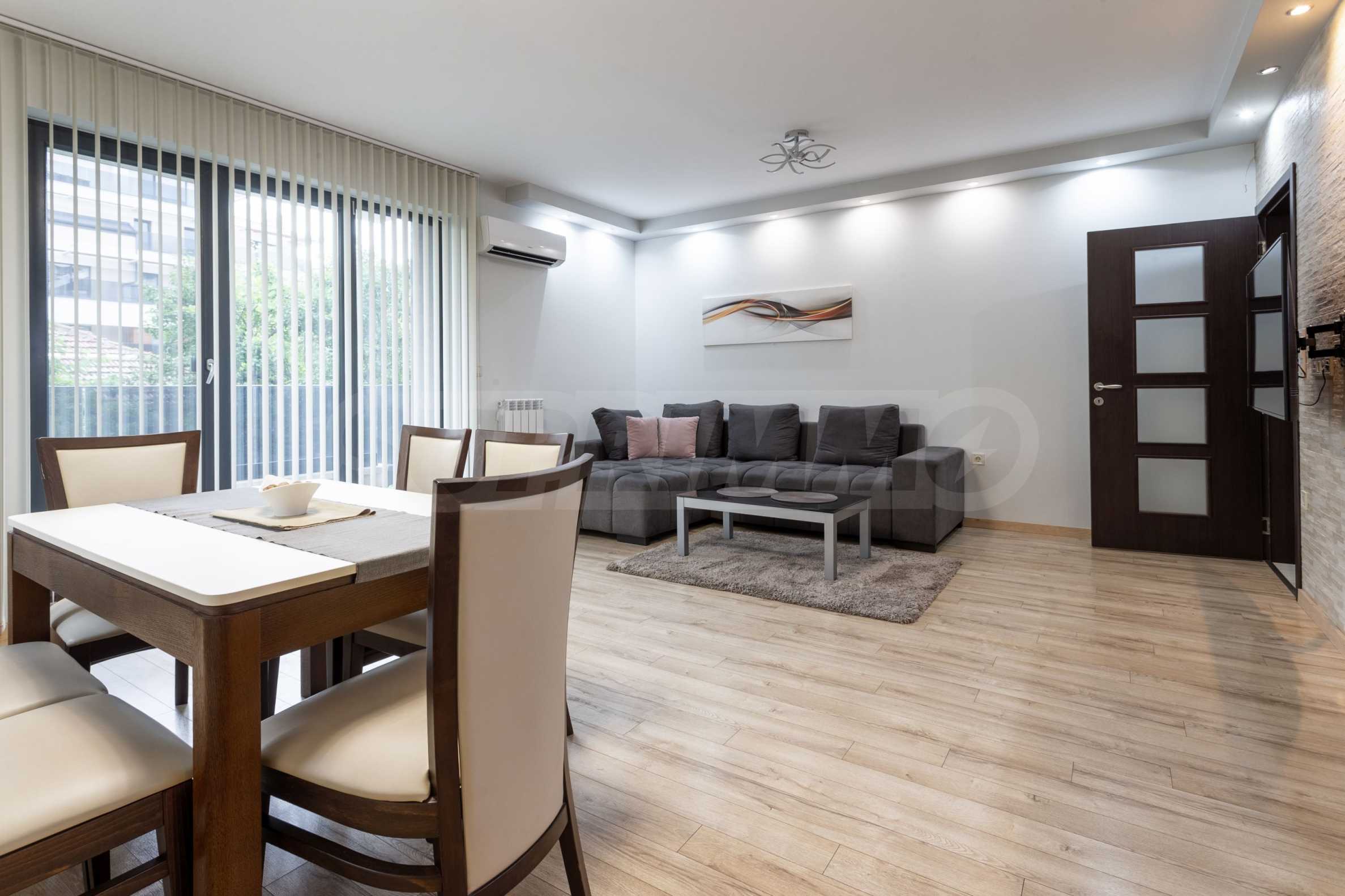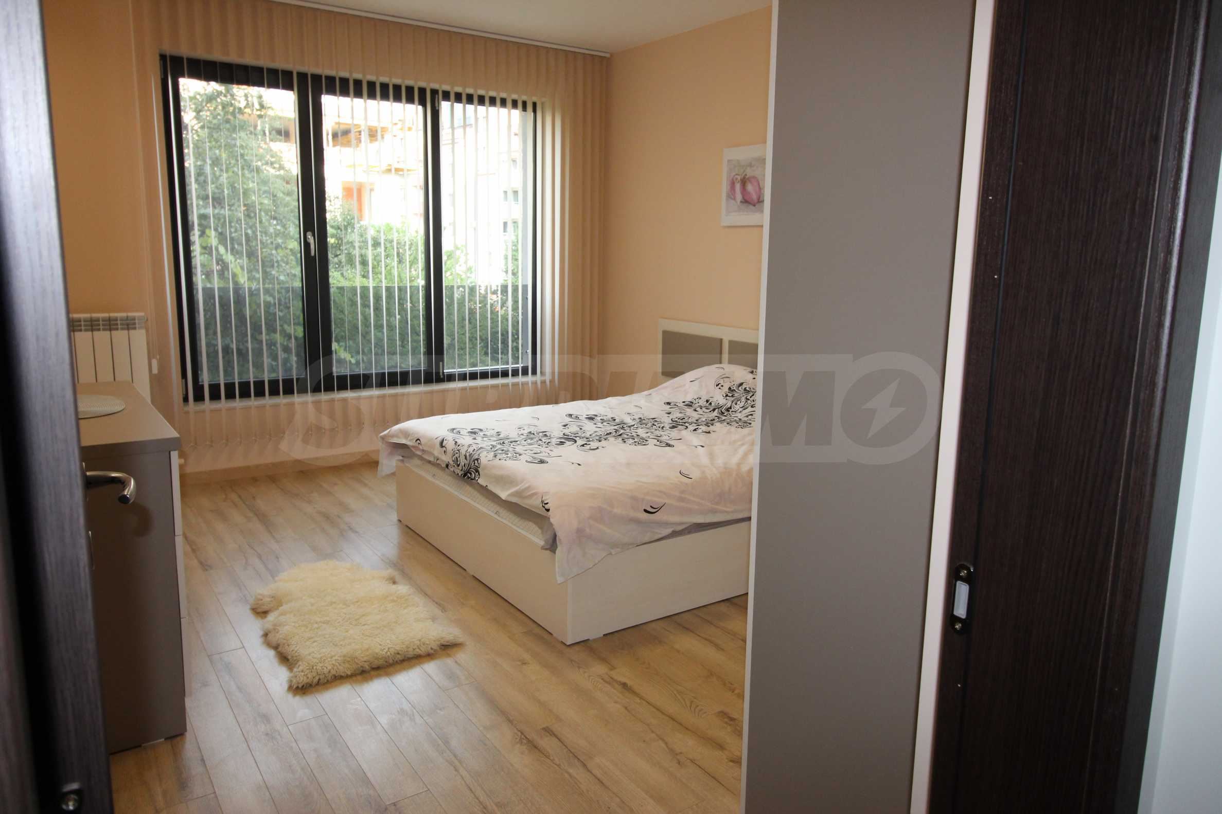 Представляем полностью меблированную и оборудованную однокомнатную квартиру в удобном месте, недалеко от парка Борисова Градина. Квартира является частью нового здания с благоустроенным садом и полностью отделанными помещениями общего пользования. Окна выходят на восток.