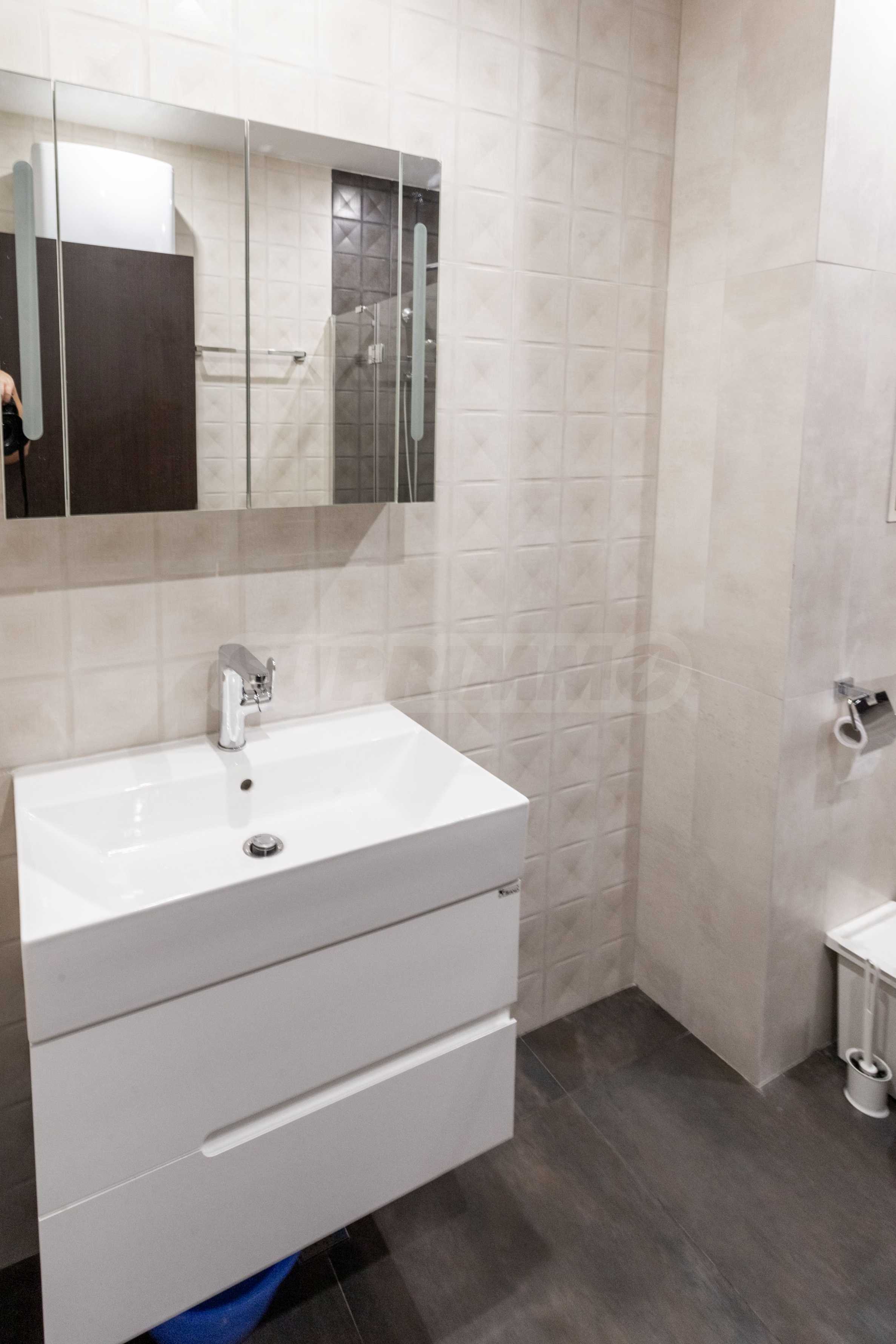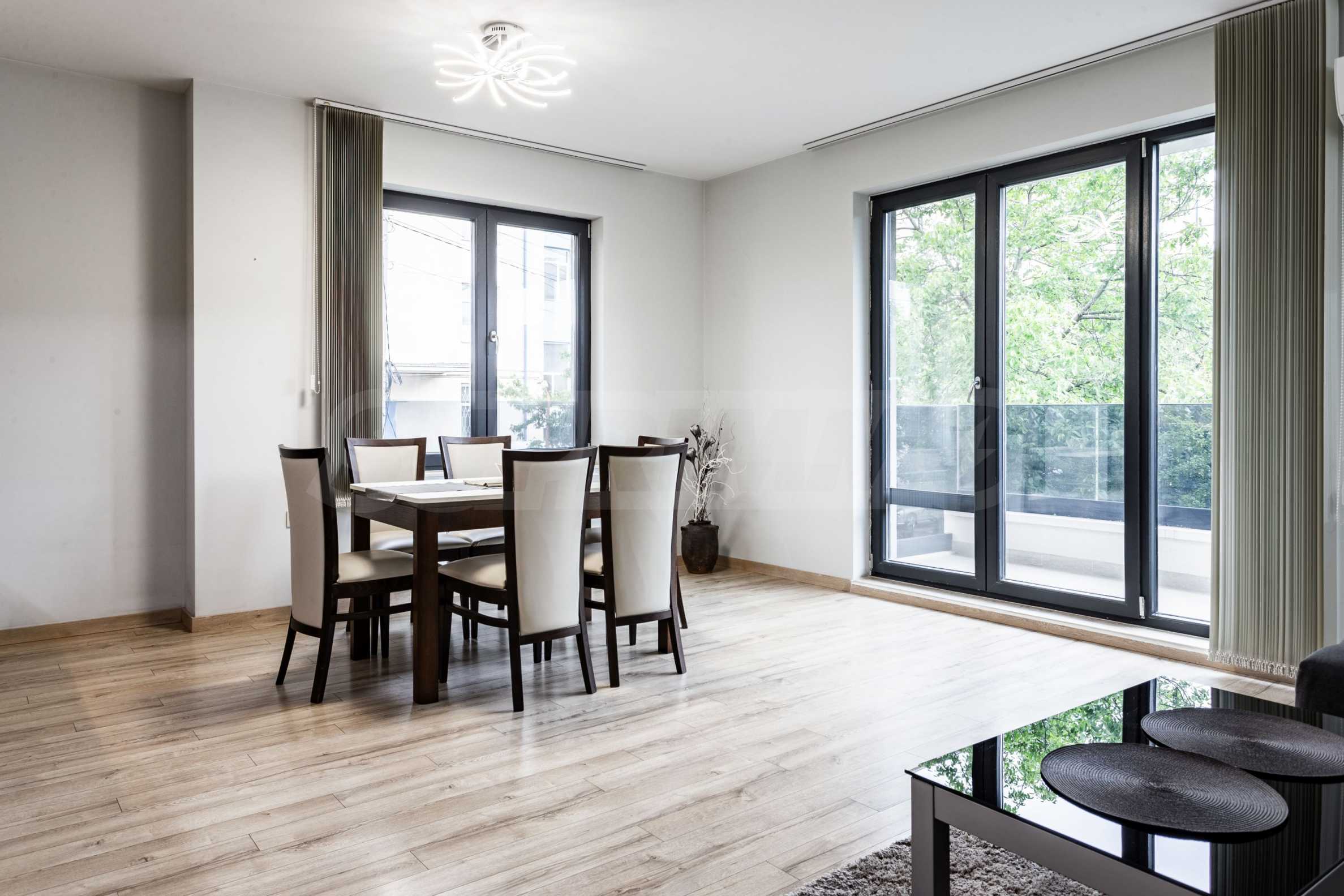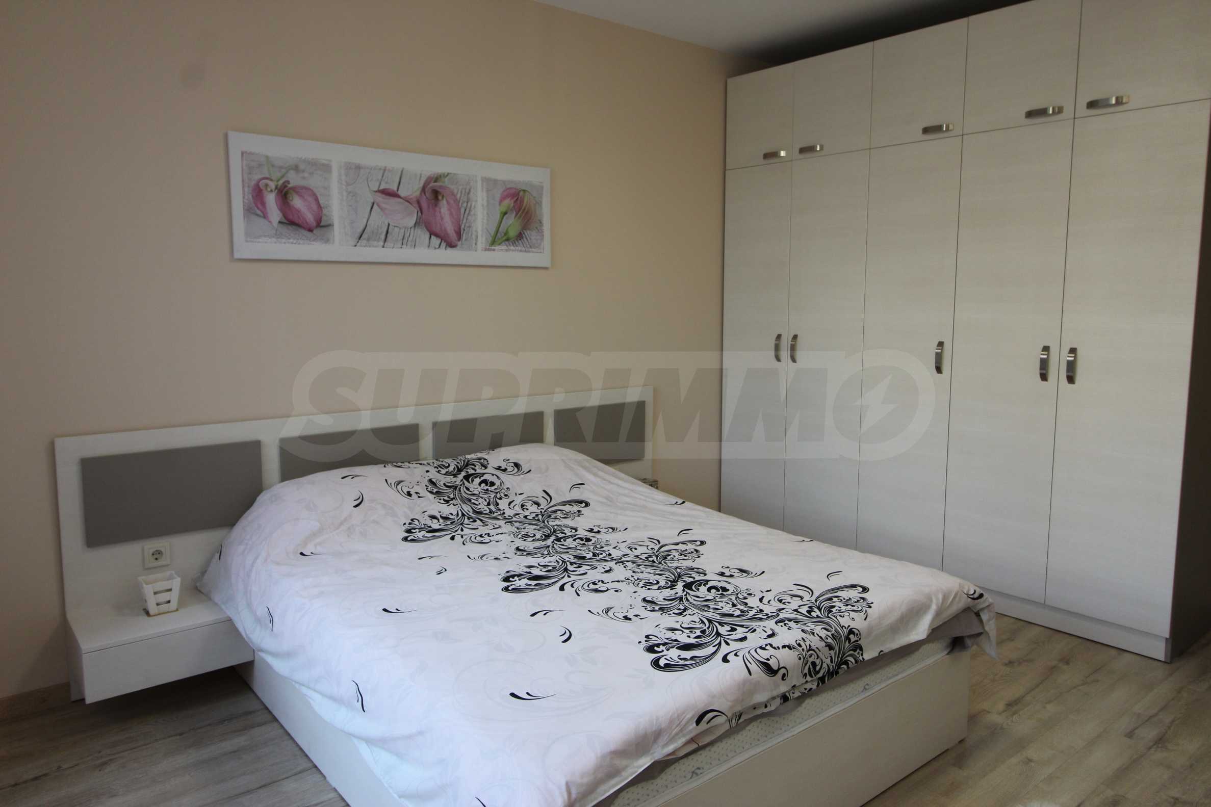Представляем полностью меблированную и оборудованную однокомнатную квартиру в удобном месте, недалеко от парка Борисова Градина. Квартира является частью нового здания с благоустроенным садом и полностью отделанными помещениями общего пользования. Окна выходят на восток.