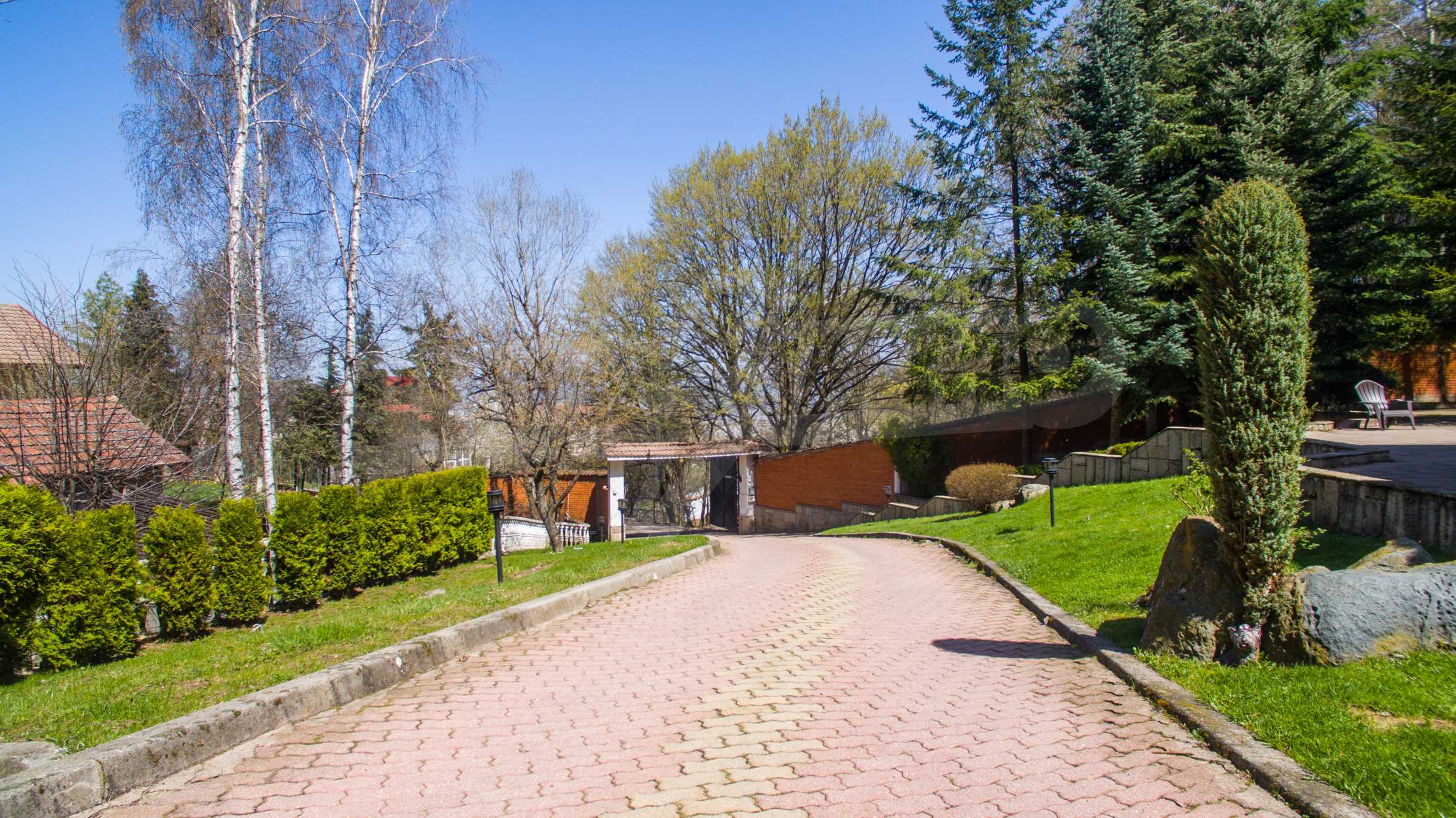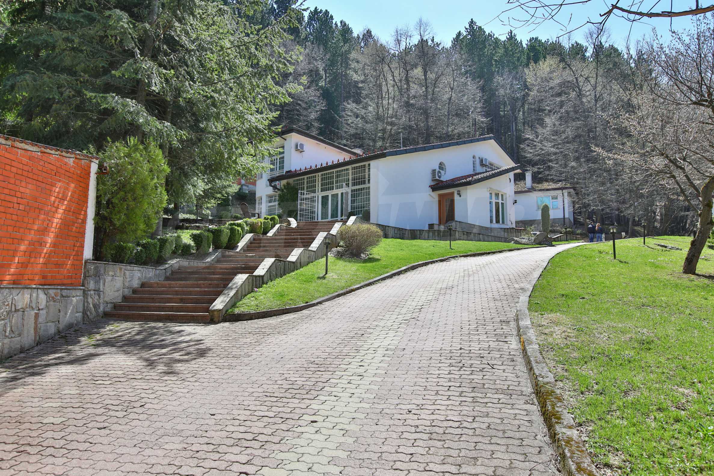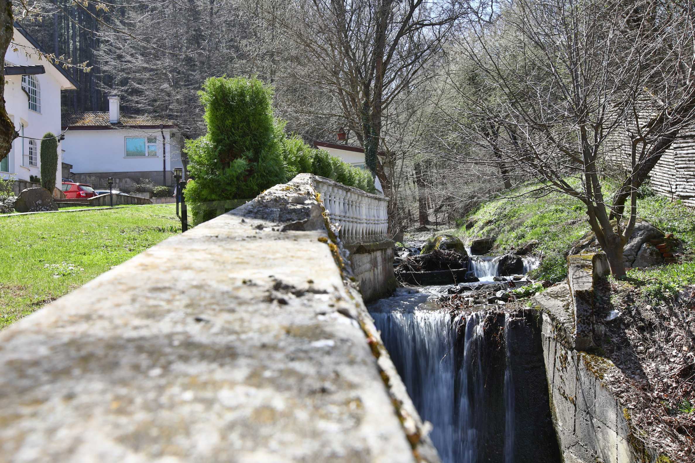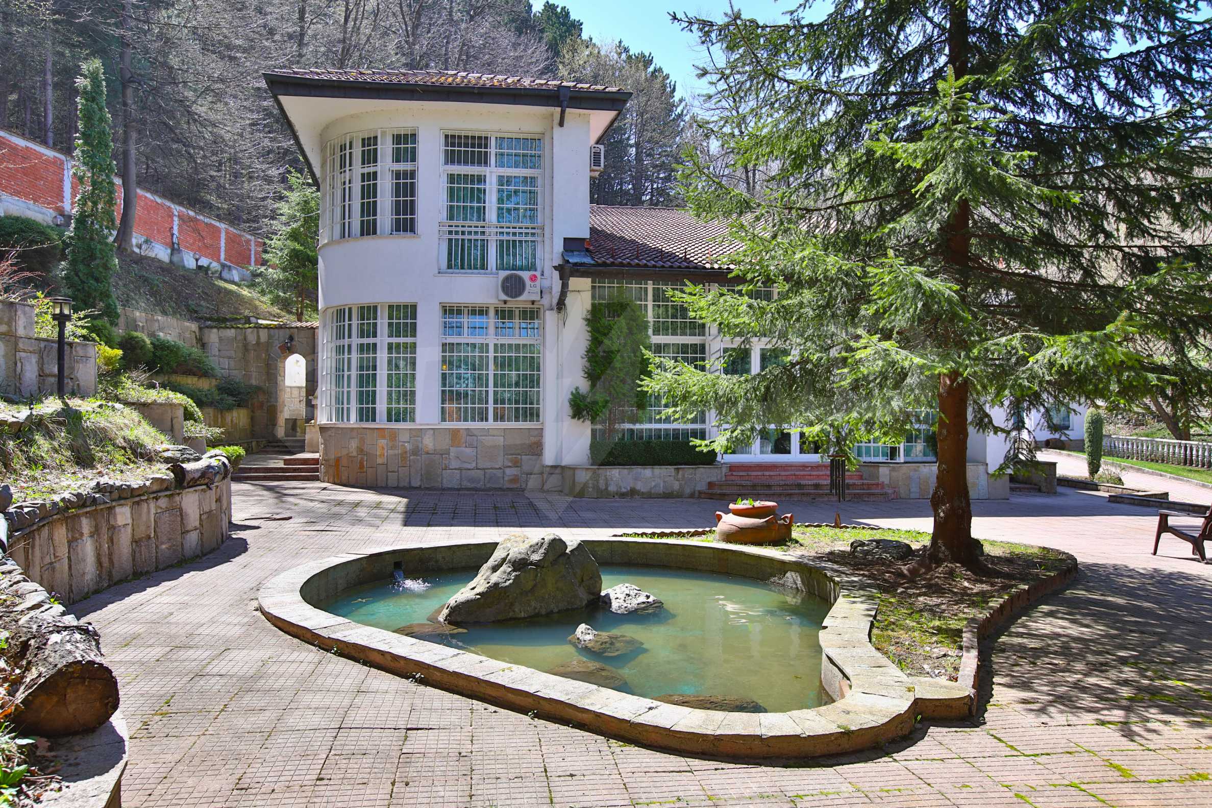 В доме есть большой и уникальный двор, через который проходит река, есть искусственный водопад, небольшой бассейн и богатый хвойный лес, а само имущество имеет следующее распределение: