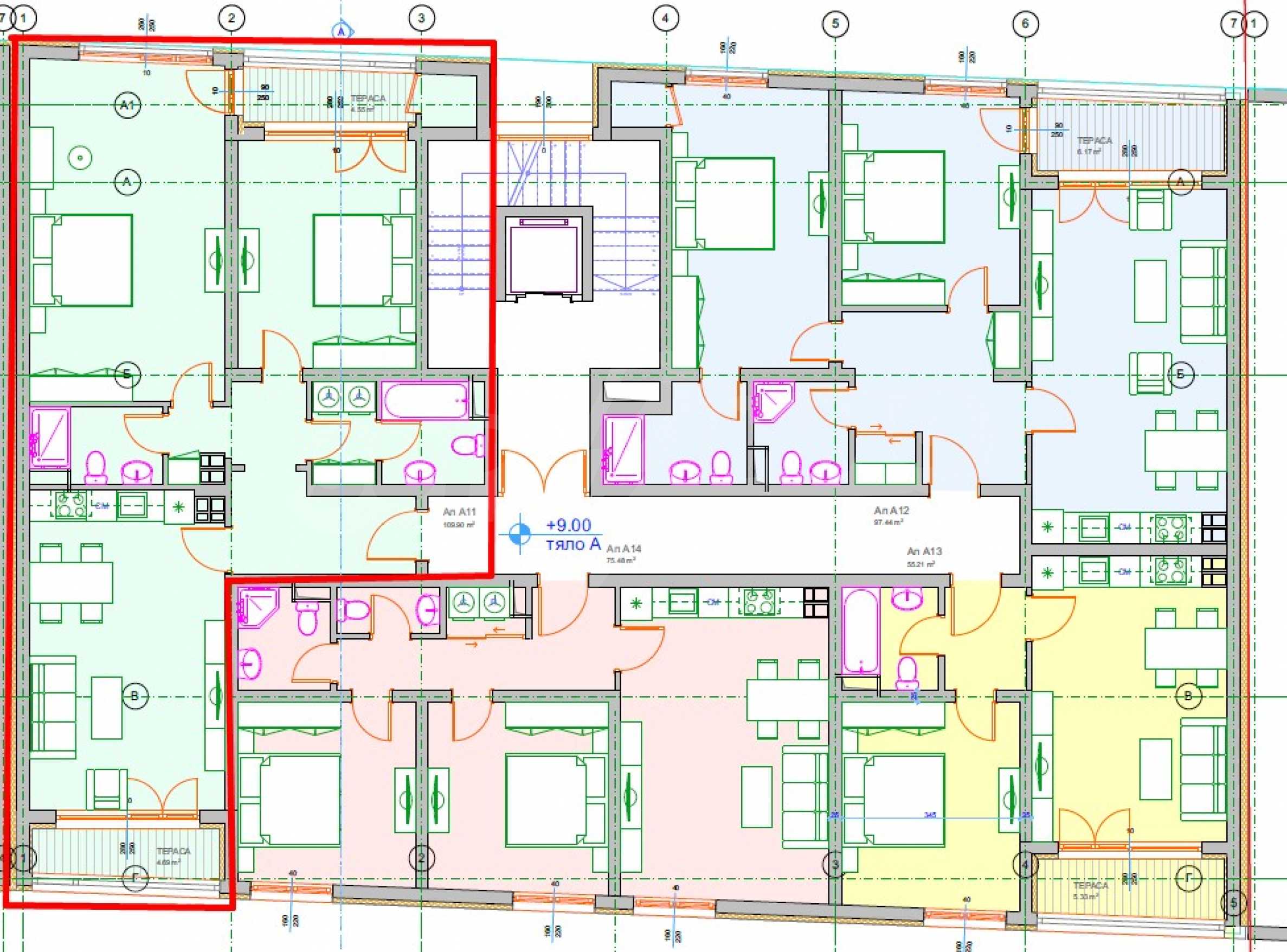 - Корпус A с 8 жилыми этажами и 34 квартирами;