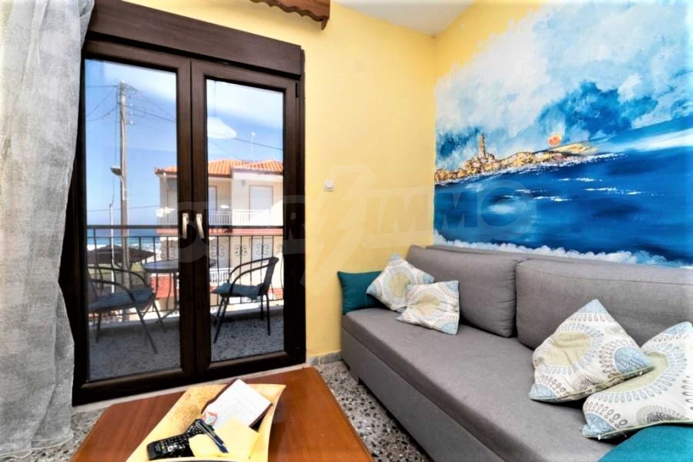 Инвестиционная недвижимость - площадью 185 кв.м. на участке 158 кв.м на Праля Врасна Салоники. Здание находится на двух уровнях. В общей сложности 6 квартир, 4 из них на первом этаже, состоят из просторной комнаты с кухней, одной спальни и ванной комнаты каждая. Два других находятся на 1 этаже, и каждый состоит из просторной комнаты с кухней, двух спален и ванной комнаты. Здание имеет алюминиевые рамы, кондиционер и солнечный водонагреватель. Расположен в 50 метрах от моря и ориентирован на восток. Год постройки: 1986