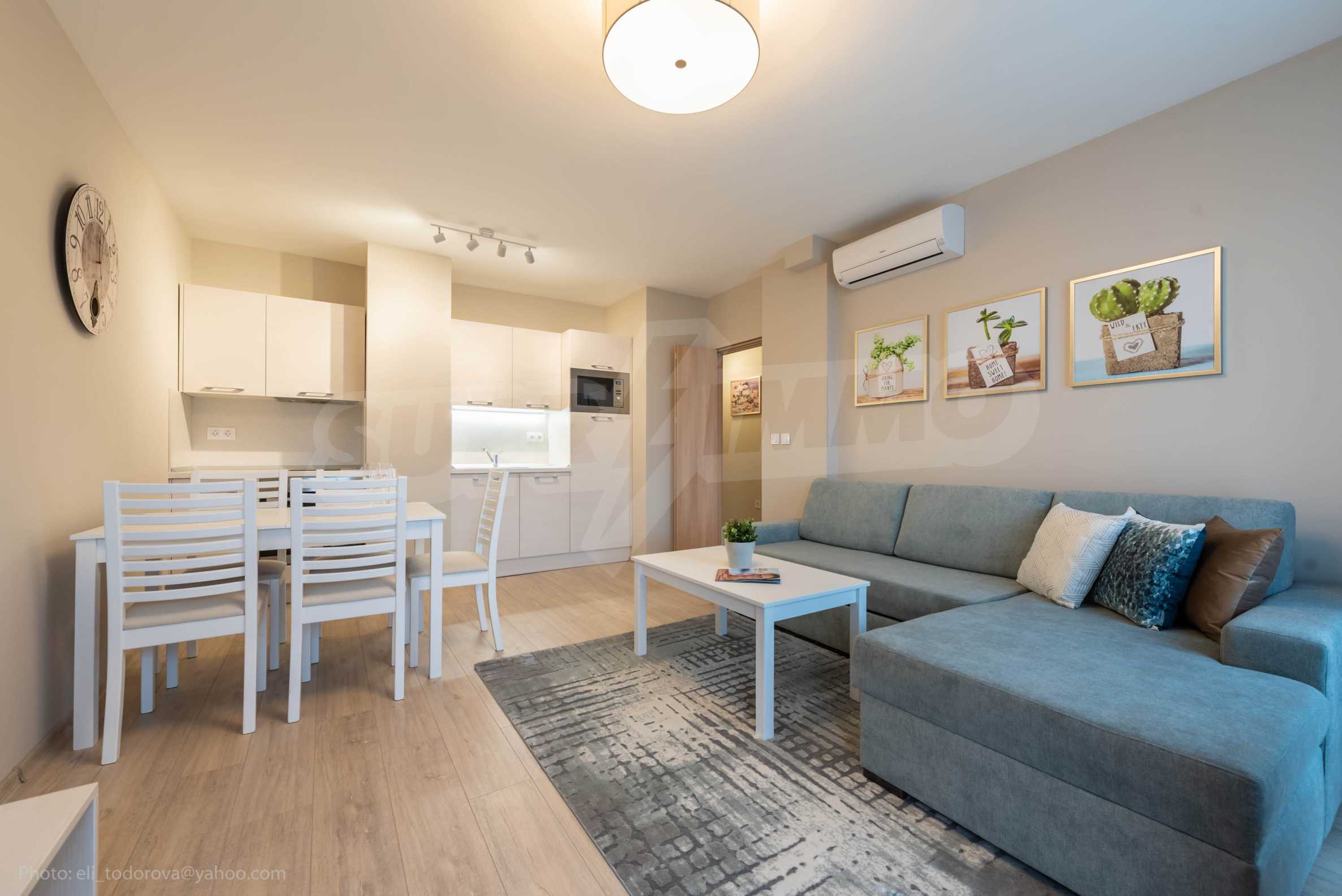 • современная гостиная со встроенной полностью оборудованной кухней, включая посудомоечную машину;
