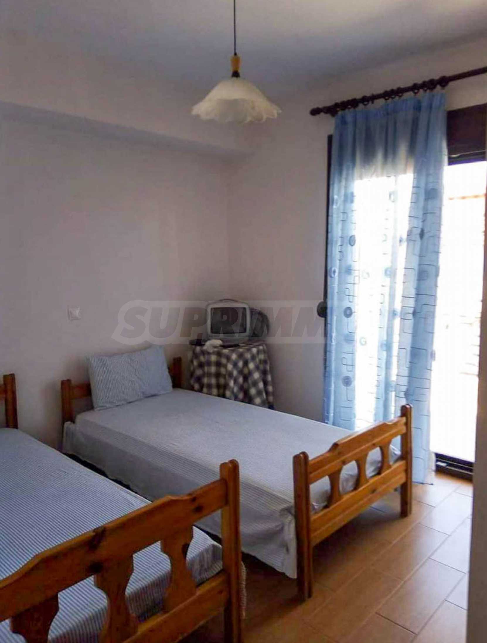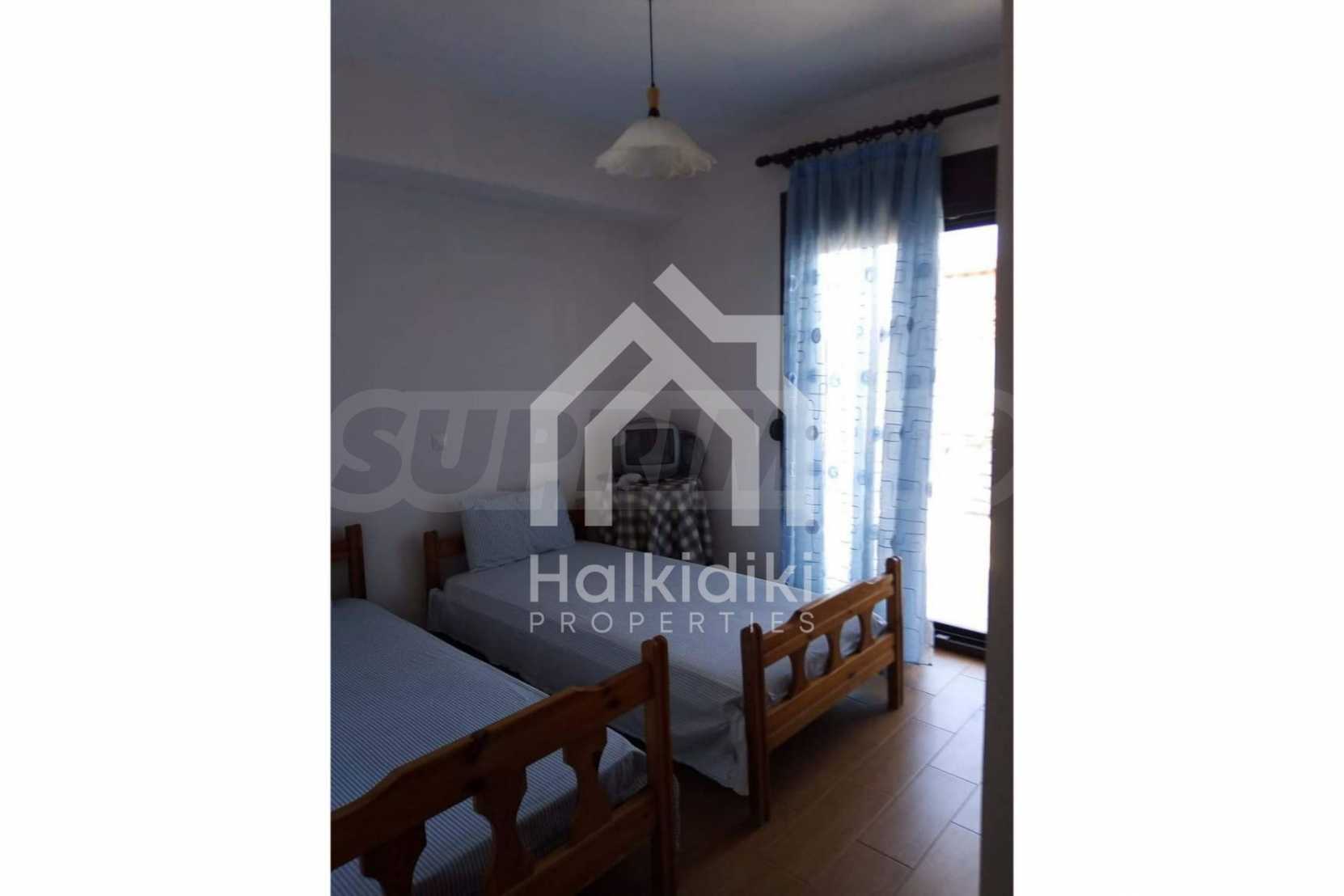 Двухэтажный мезонет, 78 м², в Кассандре, Халкидики с юго-западной ориентацией и с беспрепятственным постоянным видом. Собственность составляет 150 м. от пляжа и 100 м. далеко от центра деревни. Мезонет разделен на два уровня, состоит из гостиной, соединенной с кухней, двух спален, одной ванной комнаты и туалета. В собственности также есть большие балконы, алюминиевые окна, бронированная дверь и кафельные полы. Мезонет был построен в 2013 году.