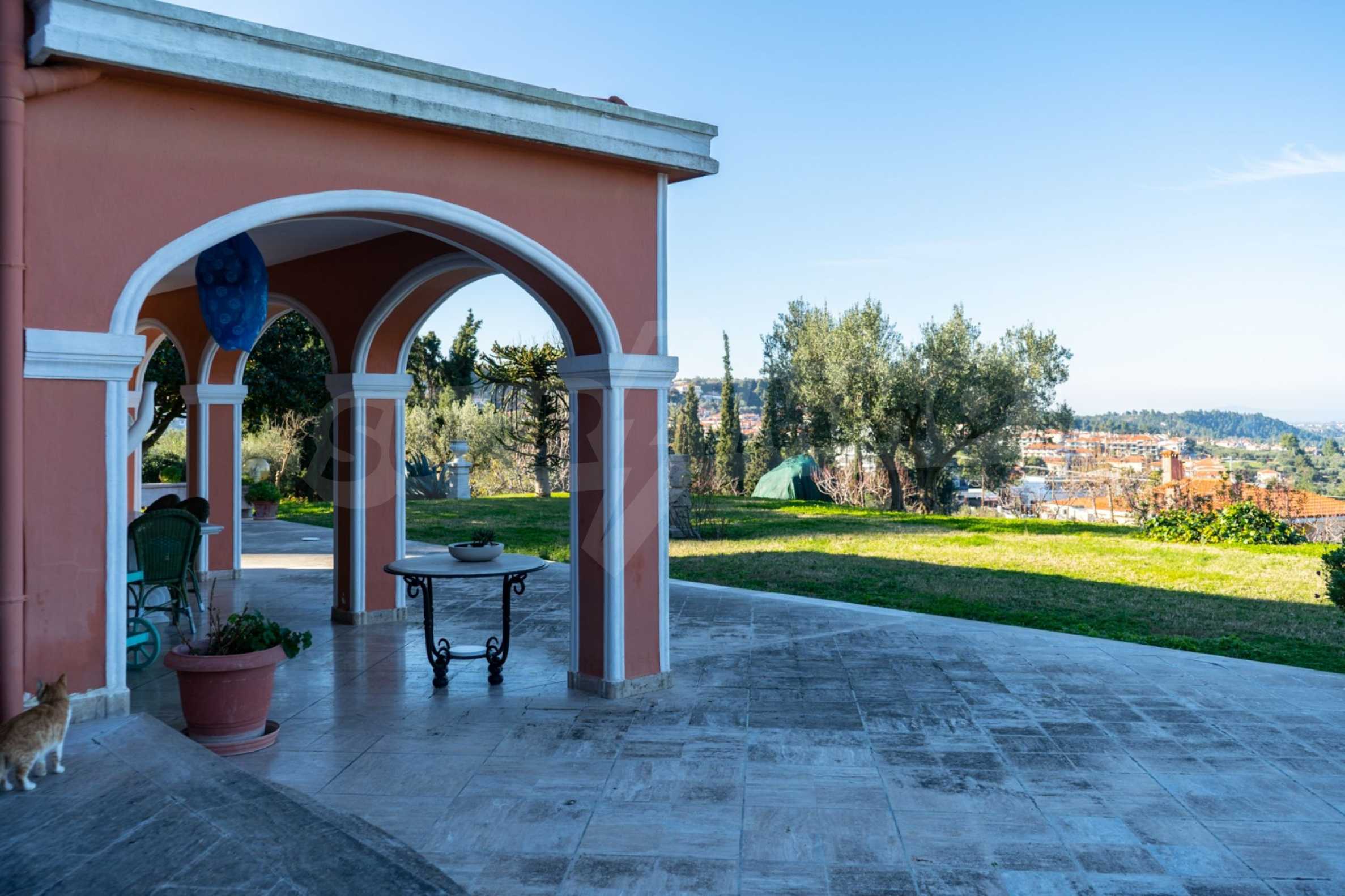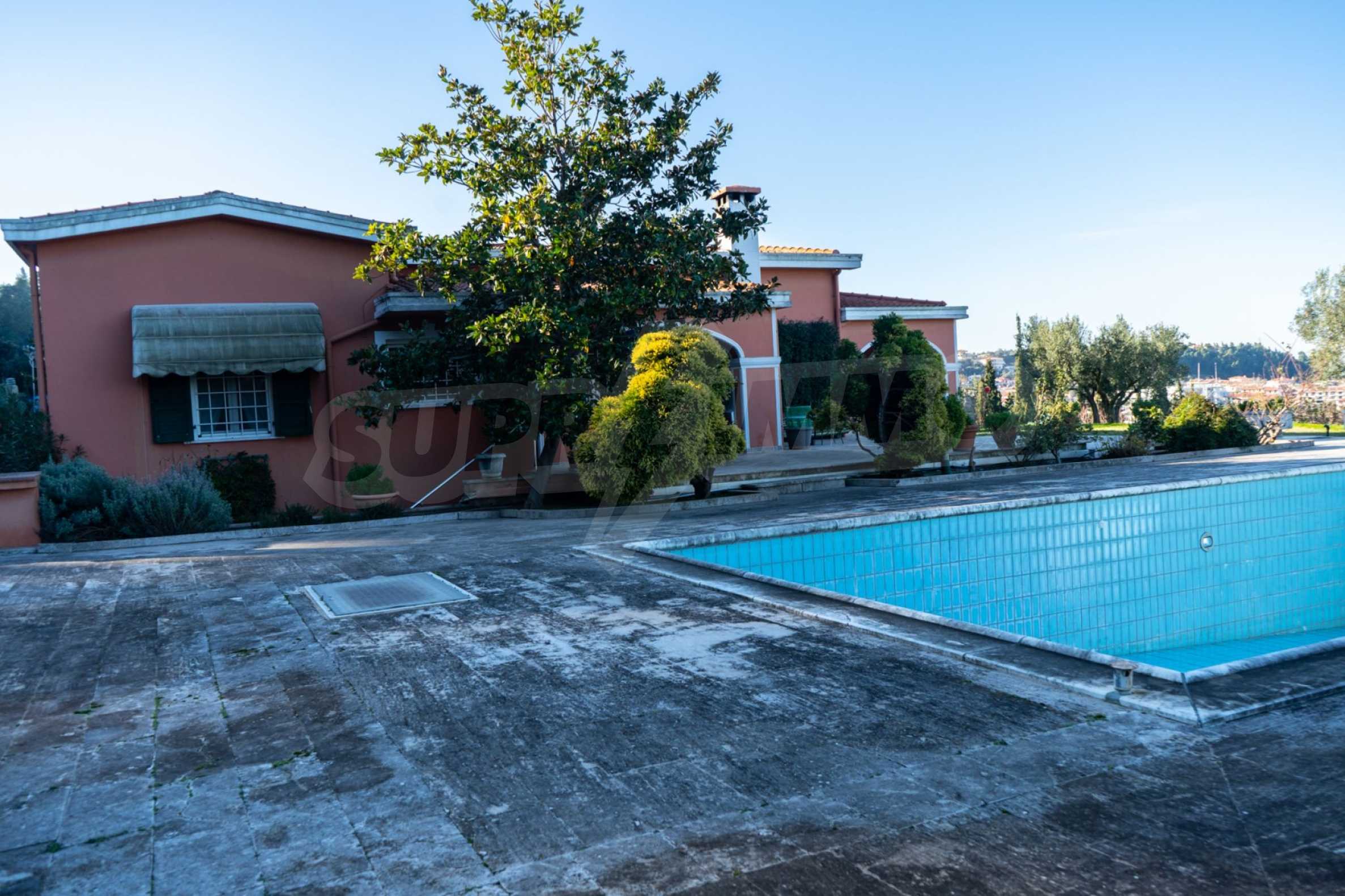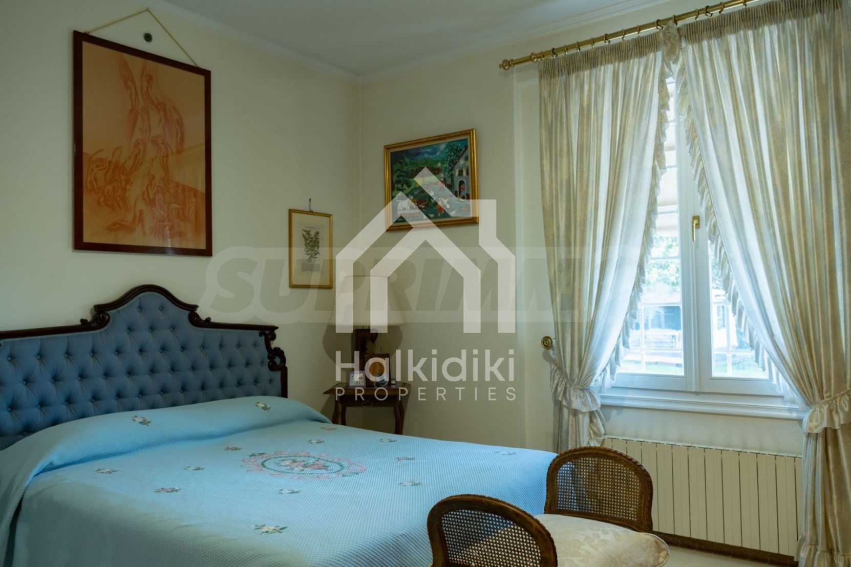 Красивая вилла, 700 м², в Кассандре, Халкидики с восточной ориентацией и с беспрепятственным постоянным видом на море на залив Торонайос. Собственность окружена усаженной деревьями площадью 11 000 м². Вилла разделена на два уровня, состоящая из одной гостиной, одна столовая, одна кухня, две ванные комнаты, тренажерный зал и винный погреб. В собственности также есть отдельный дом на участке для персонала. Вилла 800 м. от центра деревни и в 1,7 км. далеко от пляжа. В отеле также есть внешний бассейн и душ, мраморные полы, алюминиевые окна, большие балконы, киоск, барбекю, бронированная дверь, автоматический полив, бурение, места для парковки, резервуары для воды, спутниковая антенна и видеодомофон.
