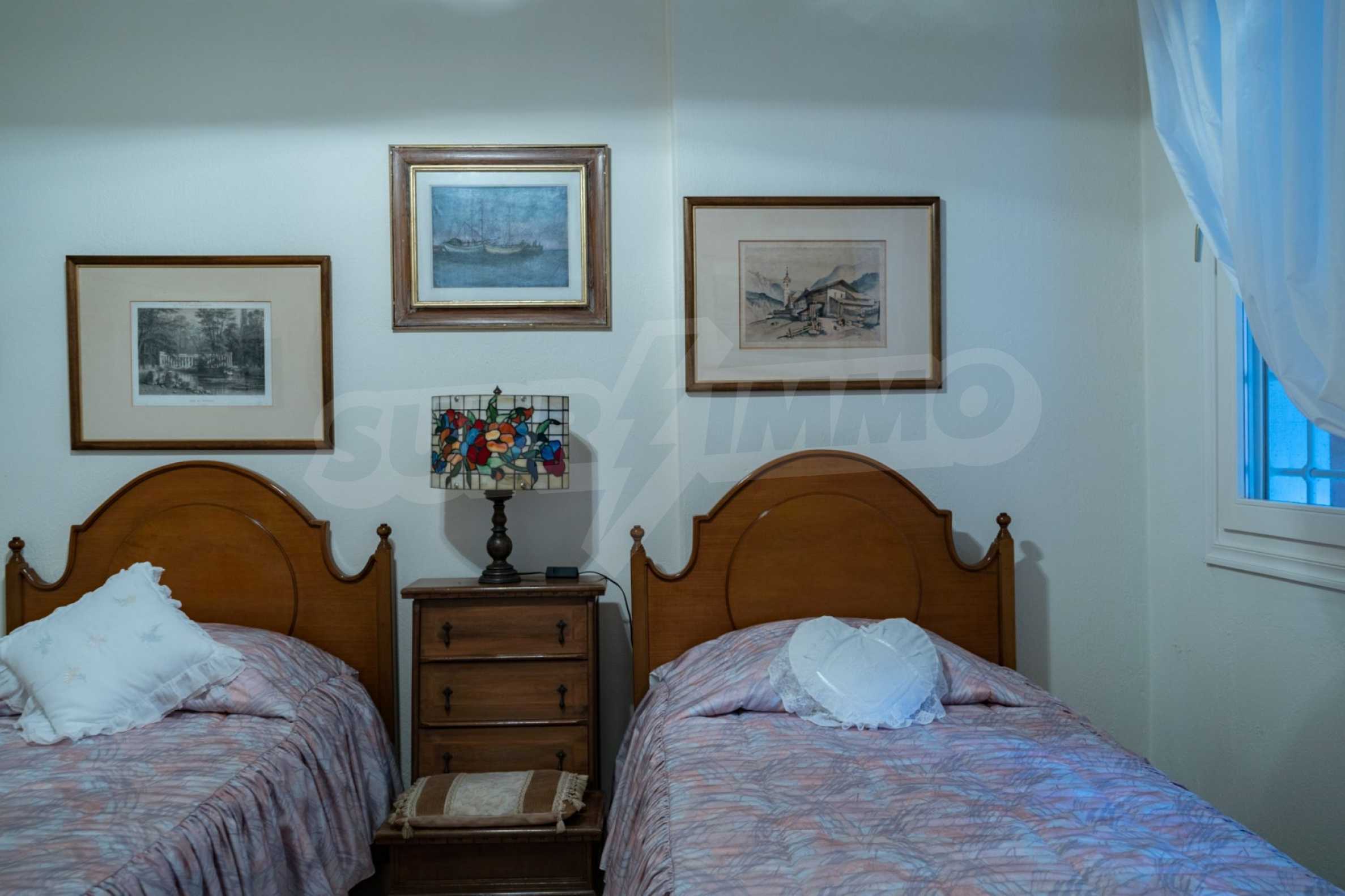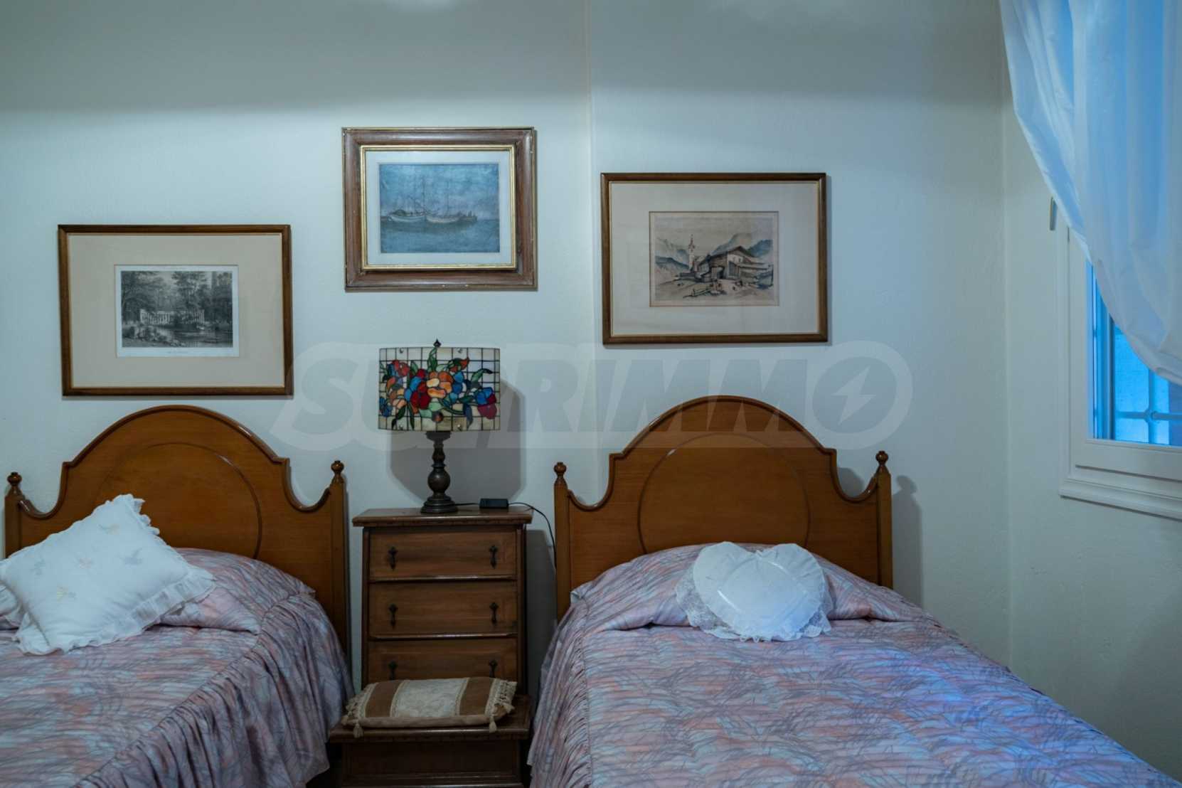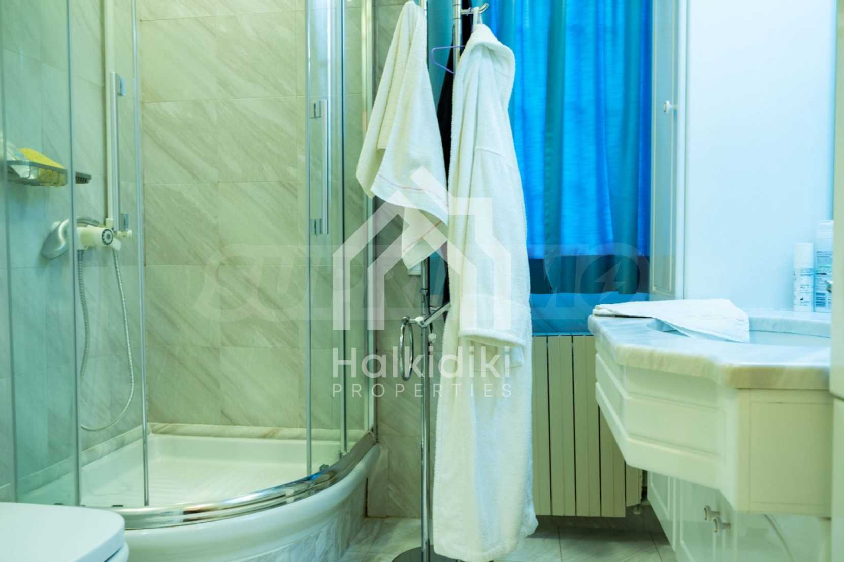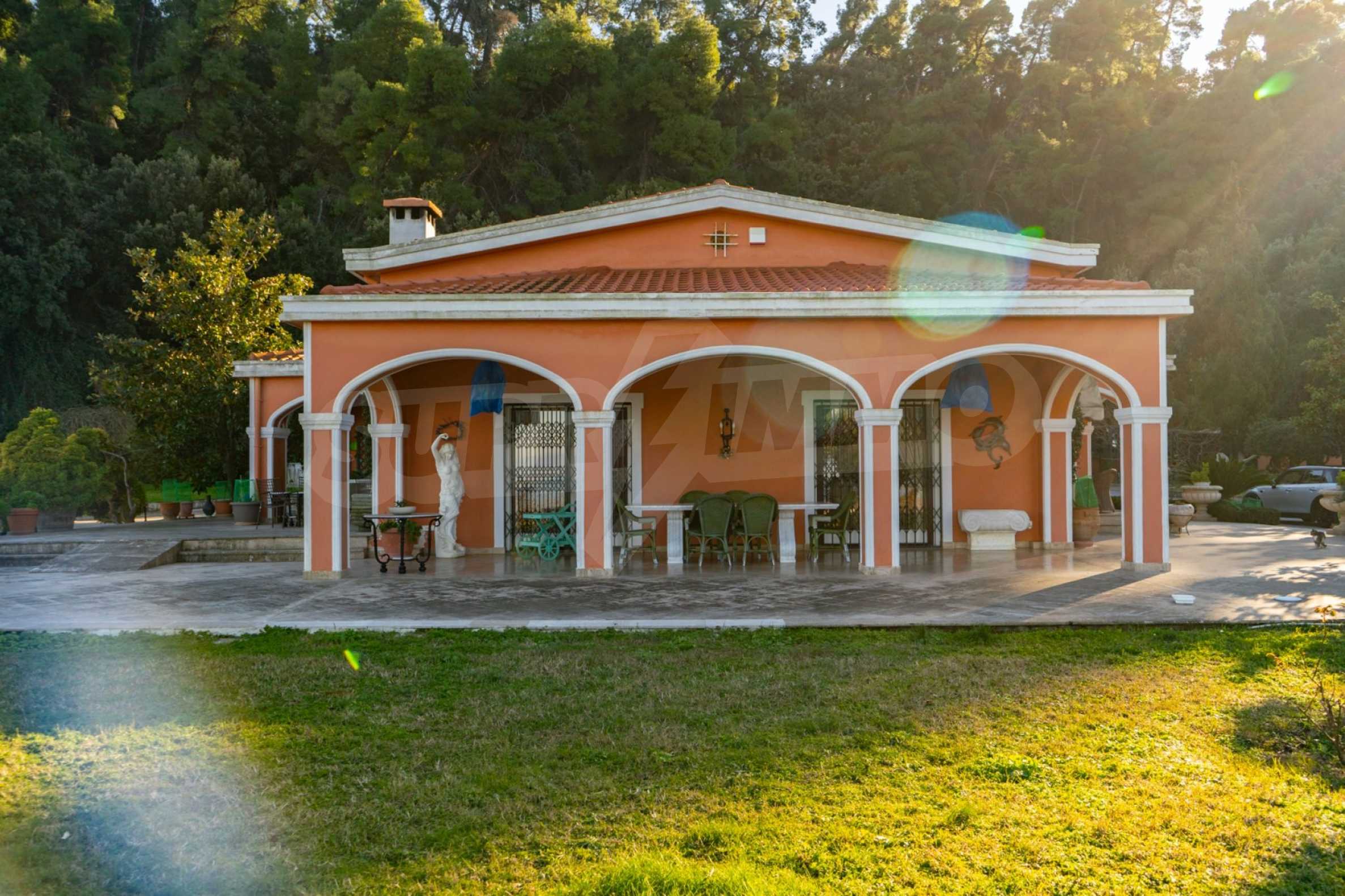 Красивая вилла, 700 м², в Кассандре, Халкидики с восточной ориентацией и с беспрепятственным постоянным видом на море на залив Торонайос. Собственность окружена усаженной деревьями площадью 11 000 м². Вилла разделена на два уровня, состоящая из одной гостиной, одна столовая, одна кухня, две ванные комнаты, тренажерный зал и винный погреб. В собственности также есть отдельный дом на участке для персонала. Вилла 800 м. от центра деревни и в 1,7 км. далеко от пляжа. В отеле также есть внешний бассейн и душ, мраморные полы, алюминиевые окна, большие балконы, киоск, барбекю, бронированная дверь, автоматический полив, бурение, места для парковки, резервуары для воды, спутниковая антенна и видеодомофон.
