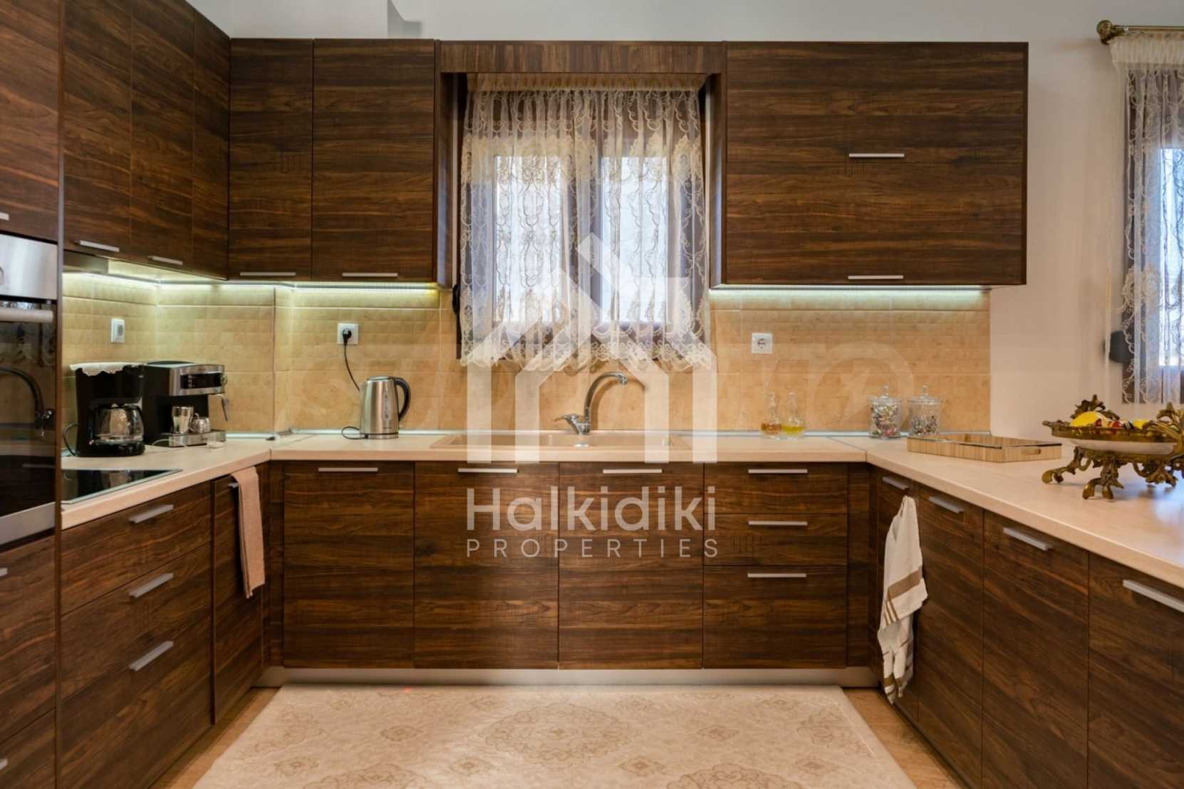 Отдельная вилла, 260 м², в Кассандре, Халкидики с частным садом 650 м² и с беспрепятственным постоянным видом на море на залив Торонайос. Собственность находится в 2,5 км. Вдали от пляжа и центра деревни. Мезонет разделен на три уровня, состоящий из двух гостиных, игровой комнаты, одной кухни, четырех спален, трех ванных комнат и двух кладовых. В доме также есть большие балконы из алюминия. столярка, киоск, бронированная дверь, барбекю, встроенные шкафы и кухня. Вилла полностью оборудована и меблирована.