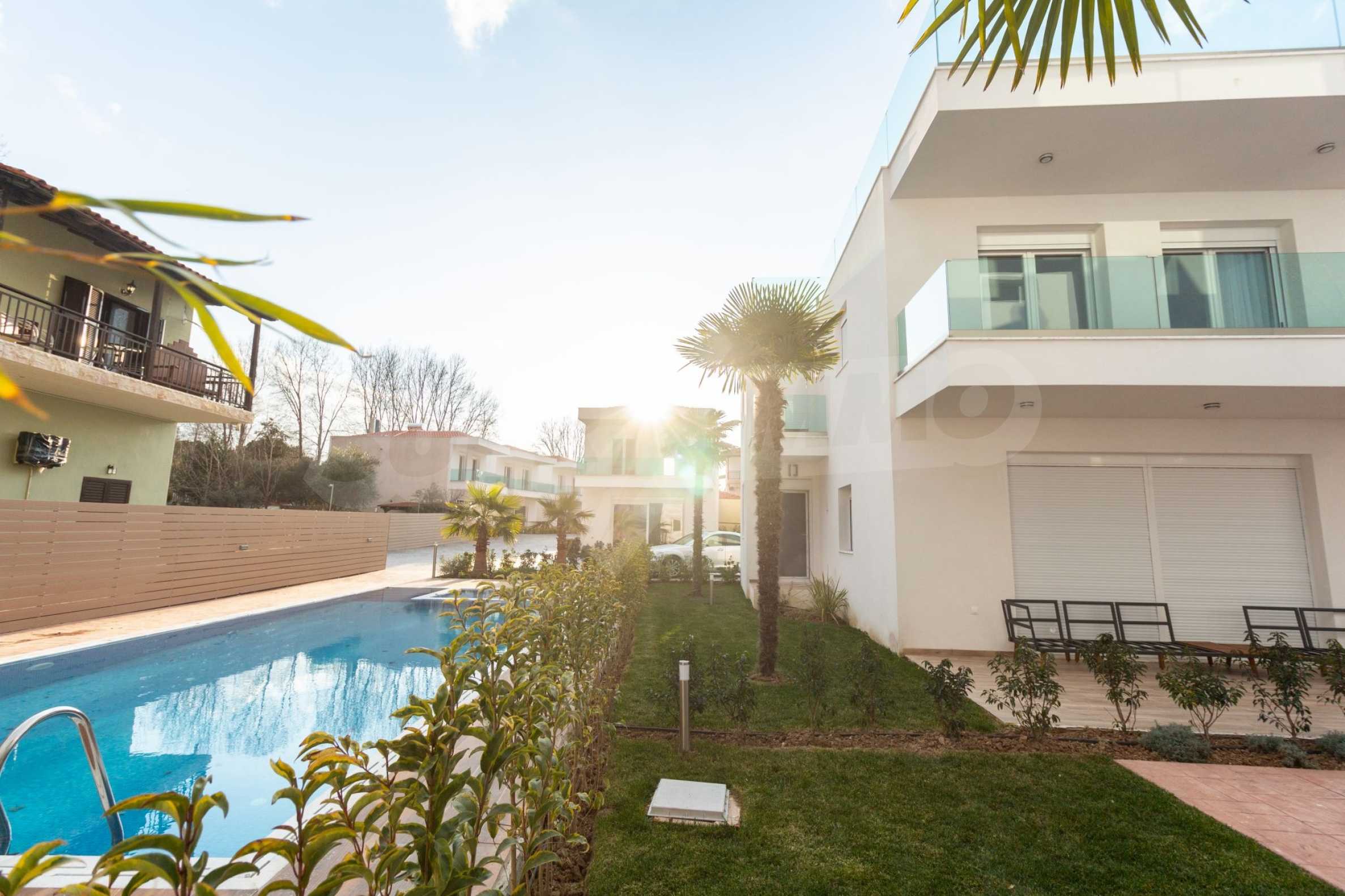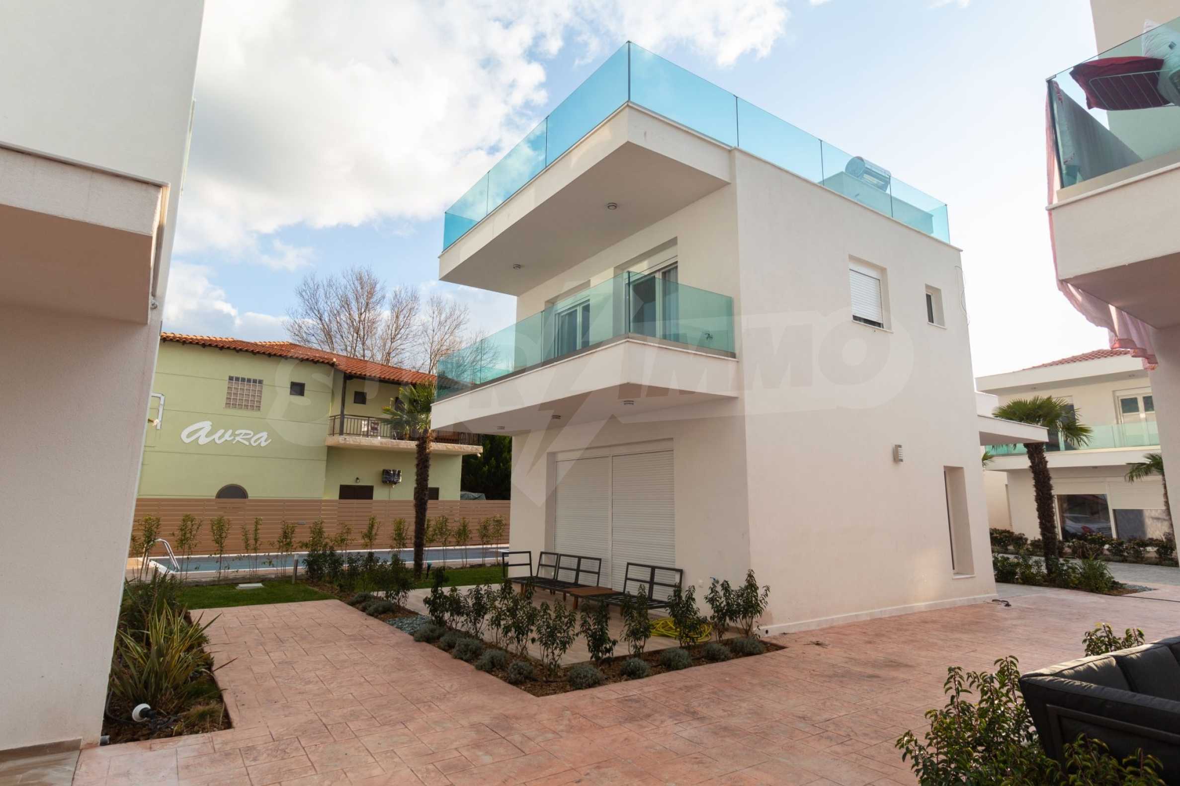 Вилла, Ситония, 116 м², вид на море, открытый вид, вид на сад, Открытое поле, Угловая недвижимость, Внутренняя деревня, Вид на море, Близко к морю, Огорожено, Паркинг, Автоматизированный полив, Моделированные открытые пространства, Встроенные шкафы, Открытый бассейн снаружи, Меблированный, Техника, Солнечный обогреватель, Просторный сад, Оконные рамы, Предустановка системы сигнализации, Без НДС, Отдельный дом в комплексе, Просторные, Большие балконы, Недавно построенные, Элитная, Современная конструкция, Высокие потолки