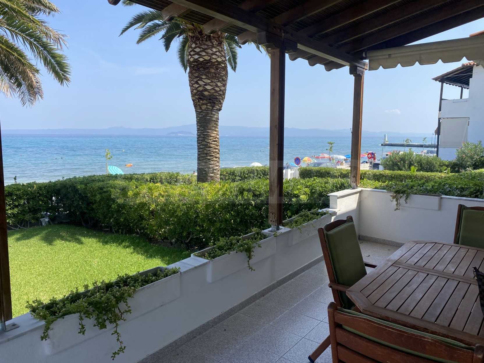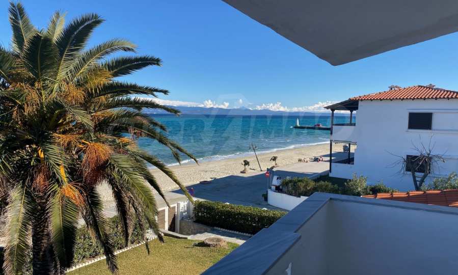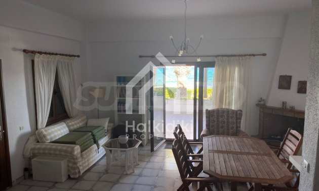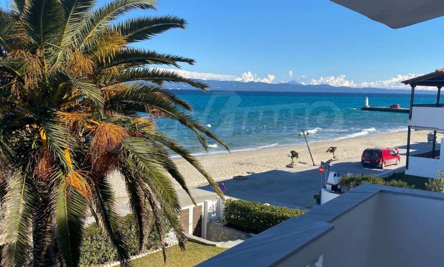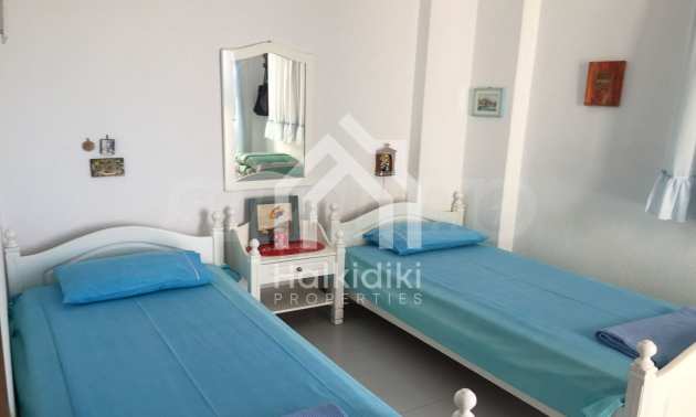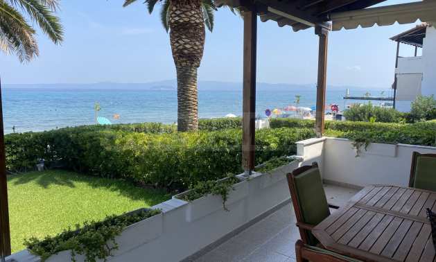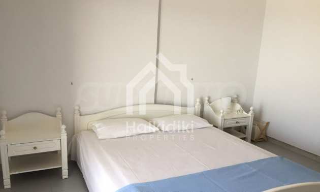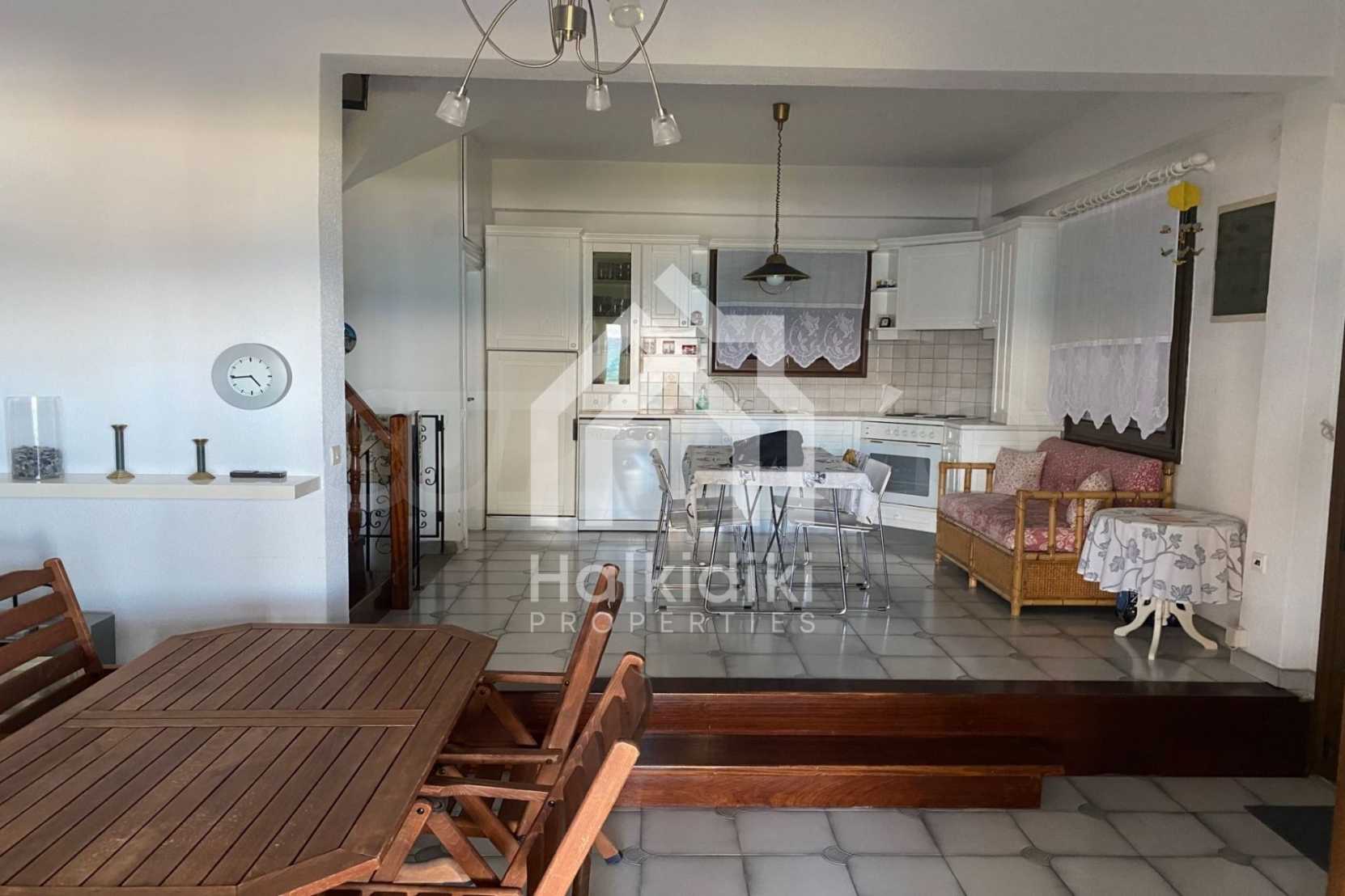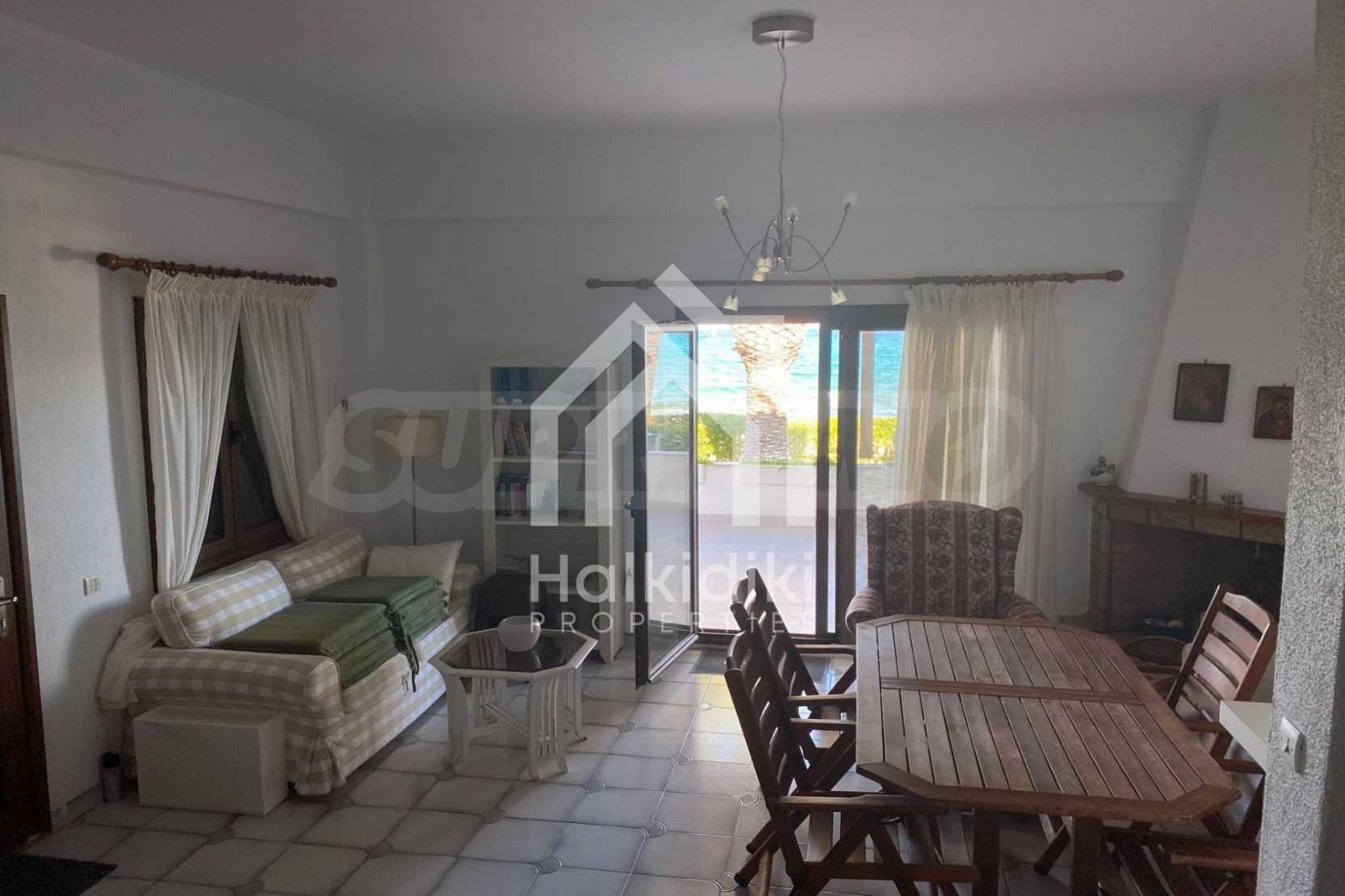 Мезонет, Кассандра, 120 м², вид на море, открытый вид, восточная ориентация, беспрепятственный постоянный вид, открытое поле, северная ориентация, угловая недвижимость, внутренняя деревня, вид на море, рядом с морем, свойство береговой линии, панорамный, огороженный, освещенный, парковка, Смоделированные наружные пространства, Меблированный, Техника, Без НДС, Просторная, Деревянные столярные изделия, Большие балконы