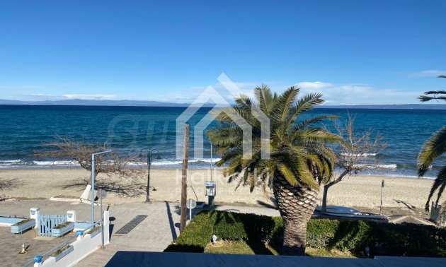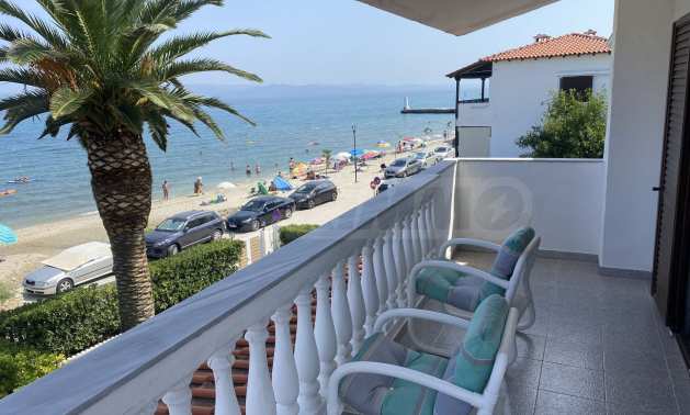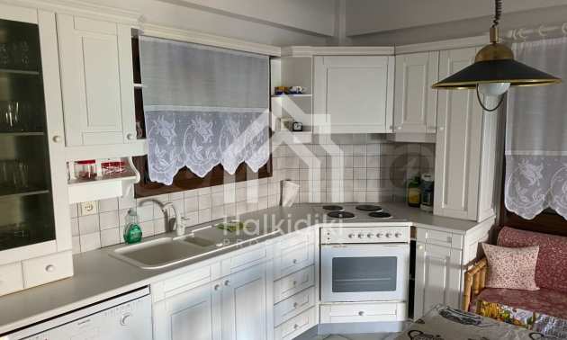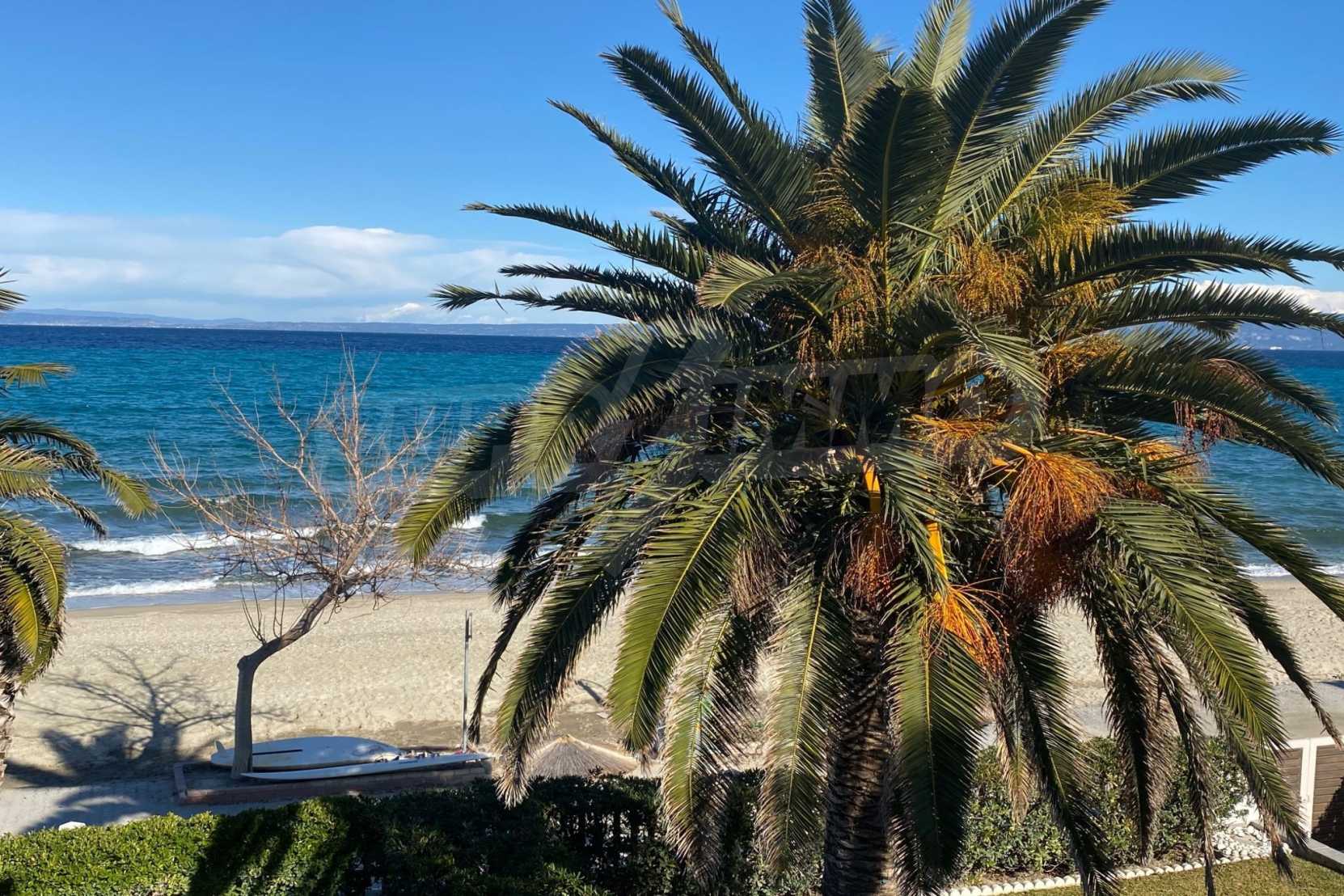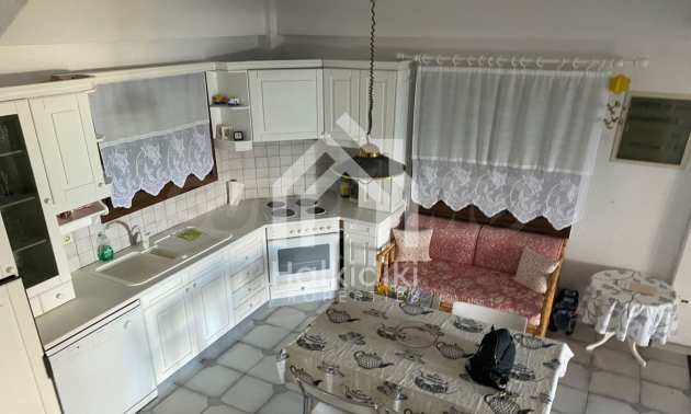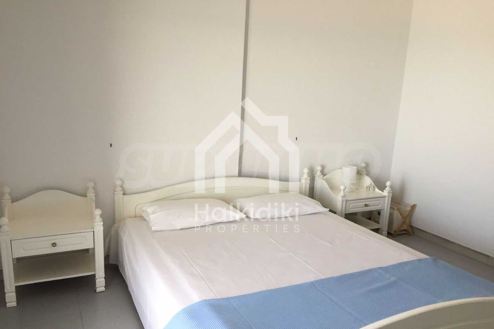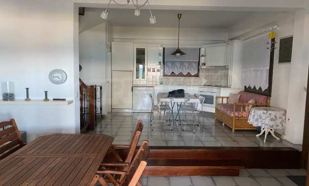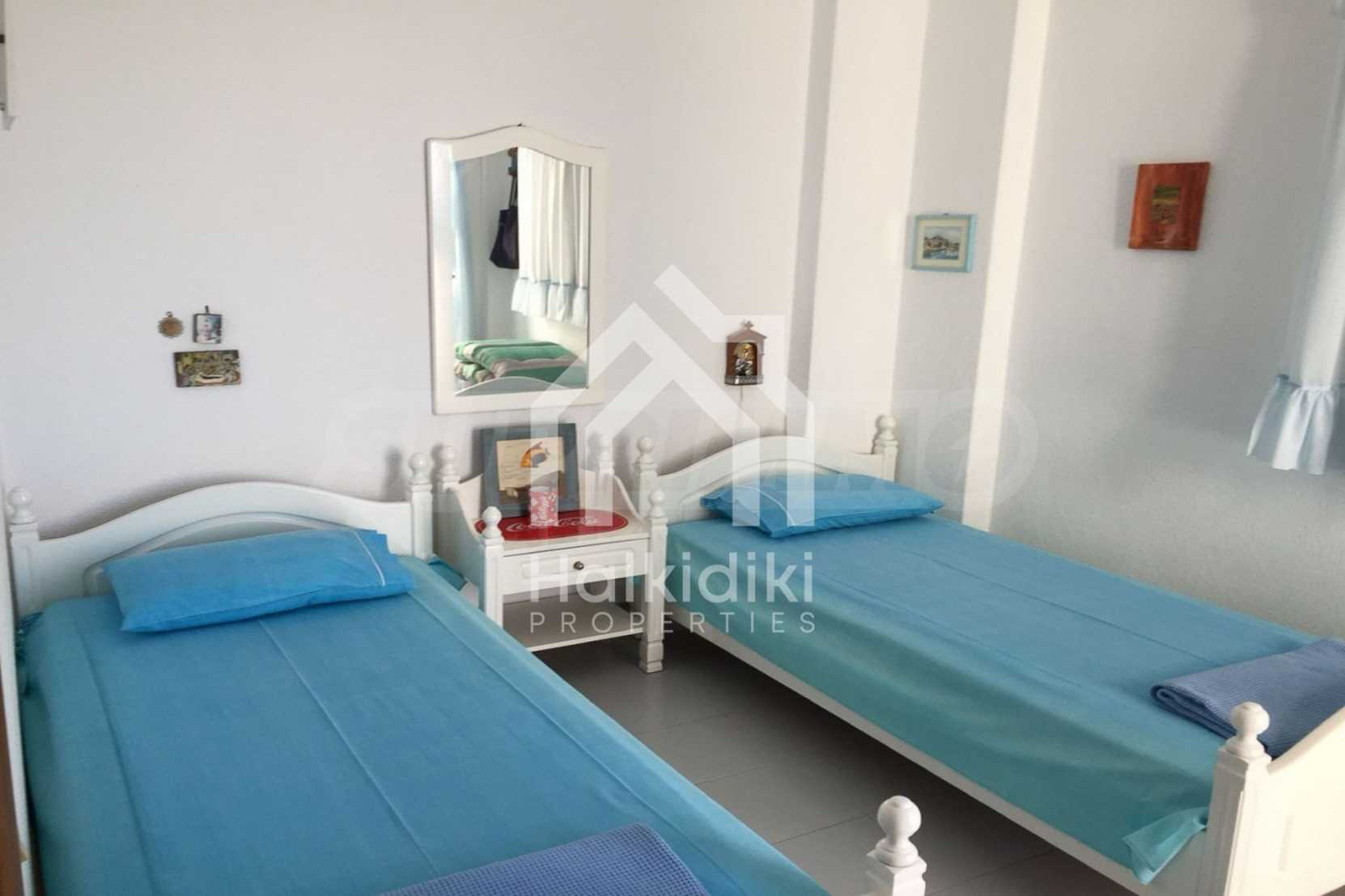Мезонет, Кассандра, 120 м², вид на море, открытый вид, восточная ориентация, беспрепятственный постоянный вид, открытое поле, северная ориентация, угловая недвижимость, внутренняя деревня, вид на море, рядом с морем, свойство береговой линии, панорамный, огороженный, освещенный, парковка, Смоделированные наружные пространства, Меблированный, Техника, Без НДС, Просторная, Деревянные столярные изделия, Большие балконы