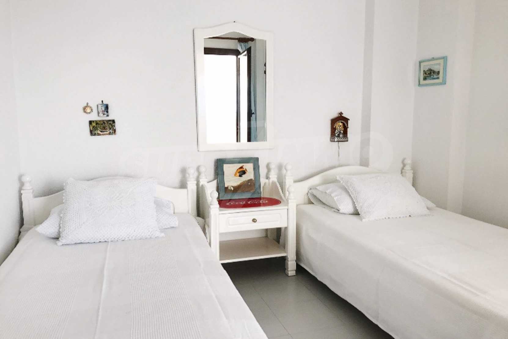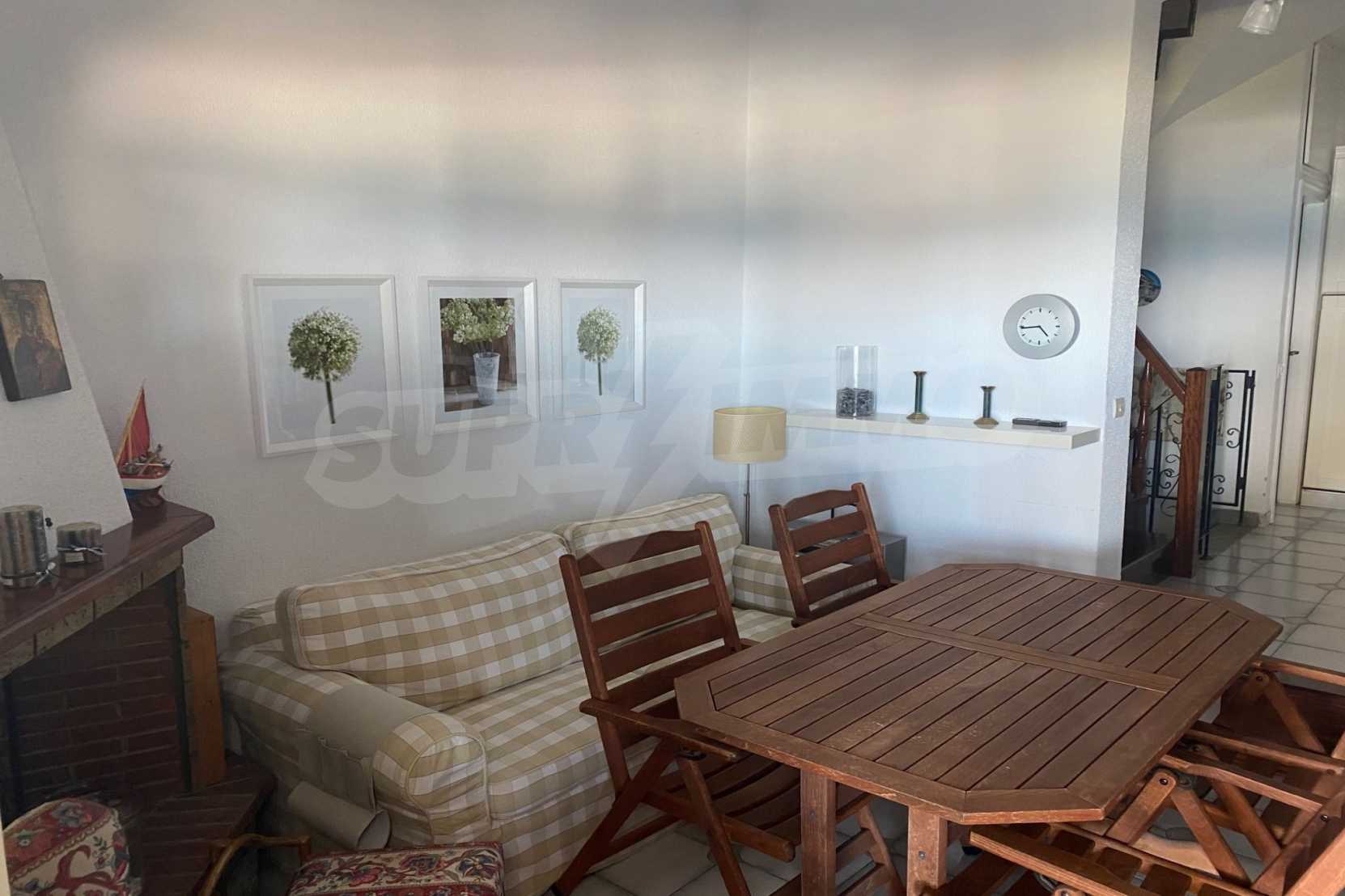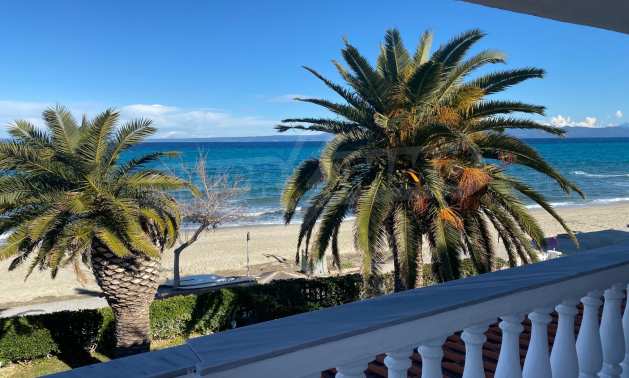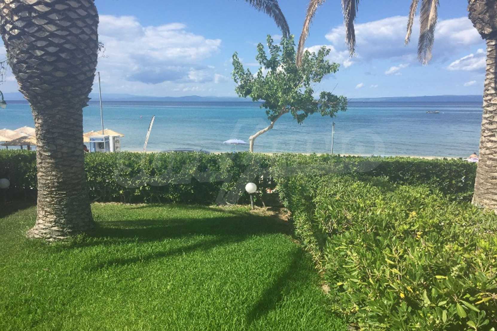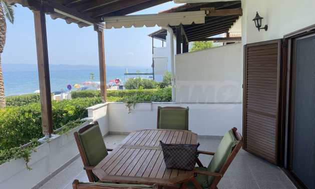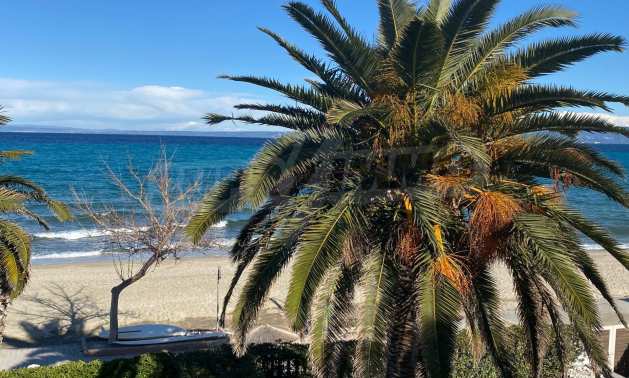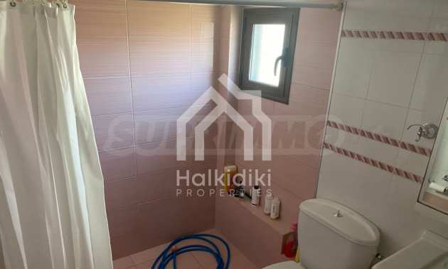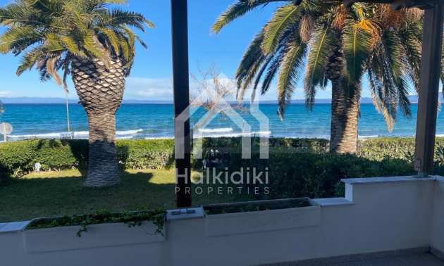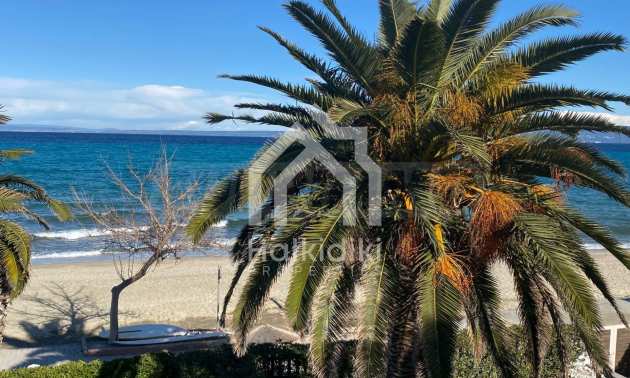 Мезонет, Кассандра, 120 м², вид на море, открытый вид, восточная ориентация, беспрепятственный постоянный вид, открытое поле, северная ориентация, угловая недвижимость, внутренняя деревня, вид на море, рядом с морем, свойство береговой линии, панорамный, огороженный, освещенный, парковка, Смоделированные наружные пространства, Меблированный, Техника, Без НДС, Просторная, Деревянные столярные изделия, Большие балконы