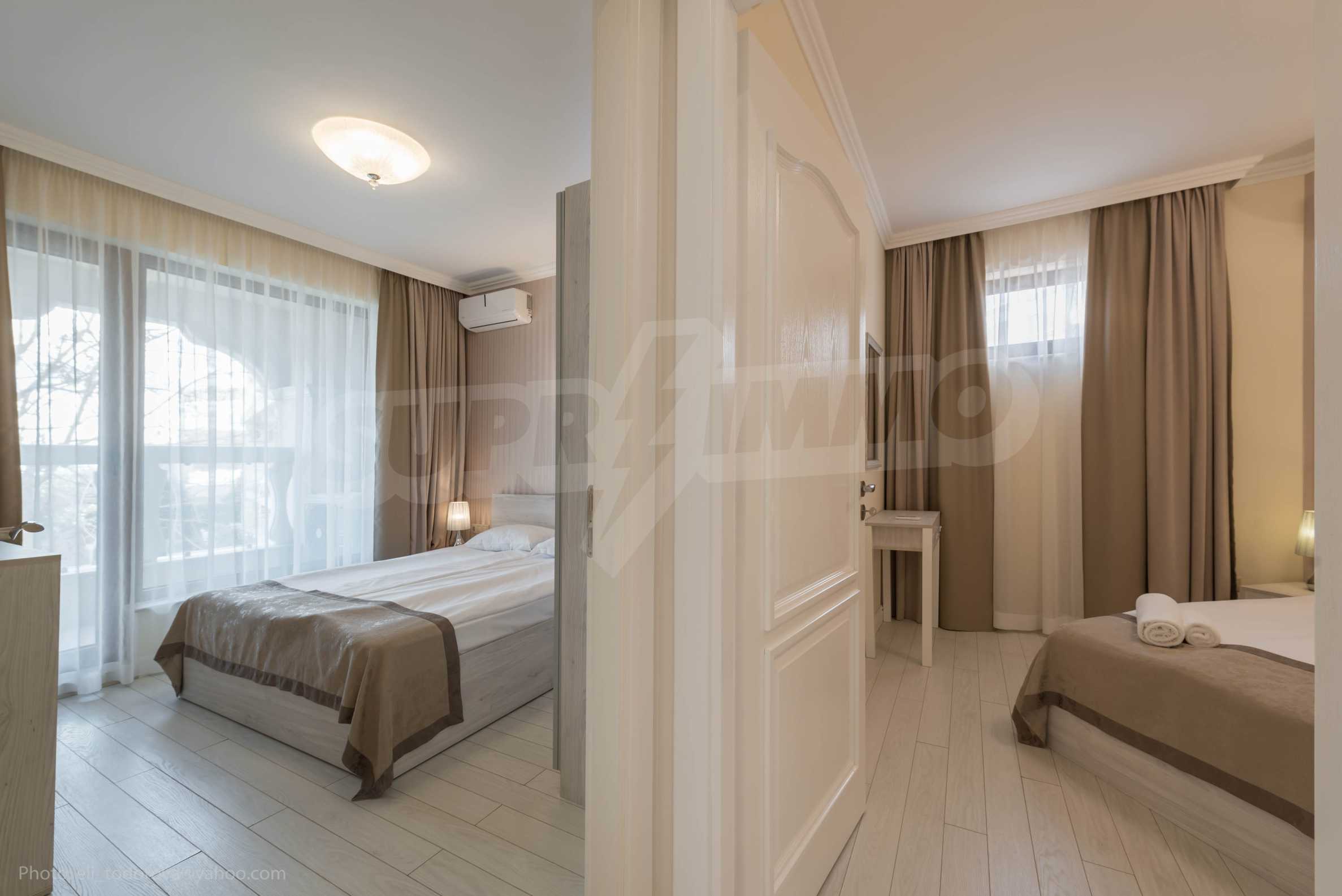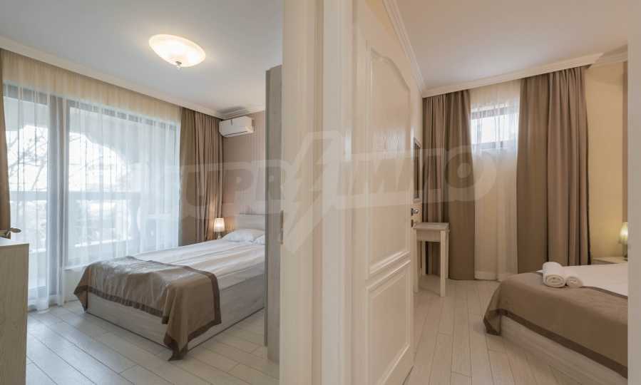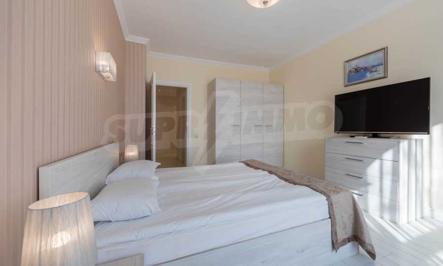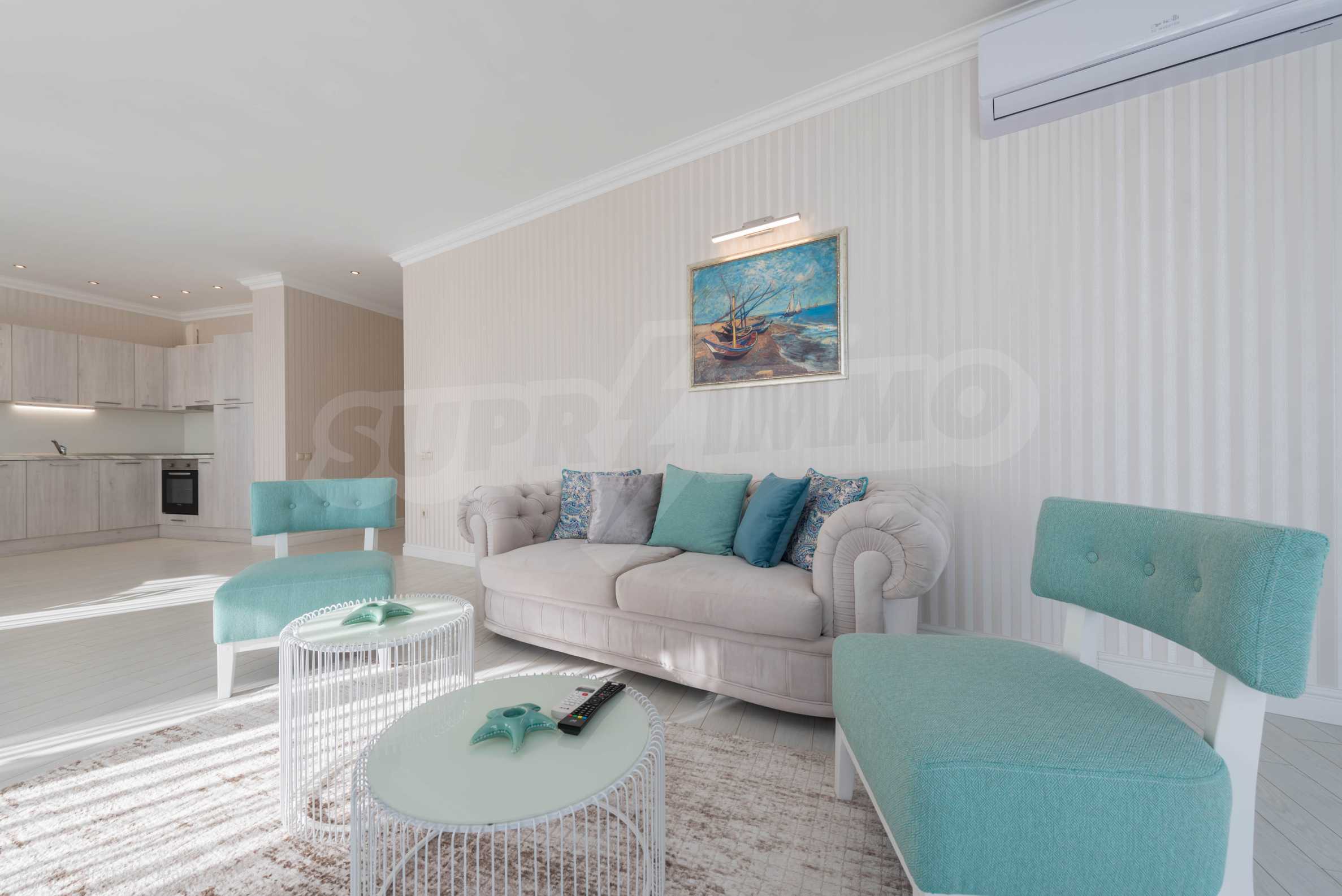 Предлагаем в аренду впечатляющую четырехкомнатную квартиру в элитном комплексе на пляже Кабакум (Варна).