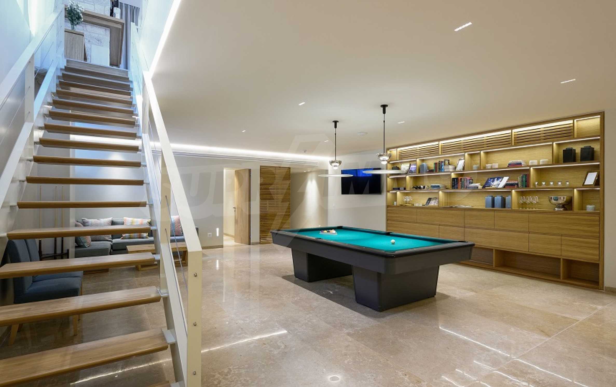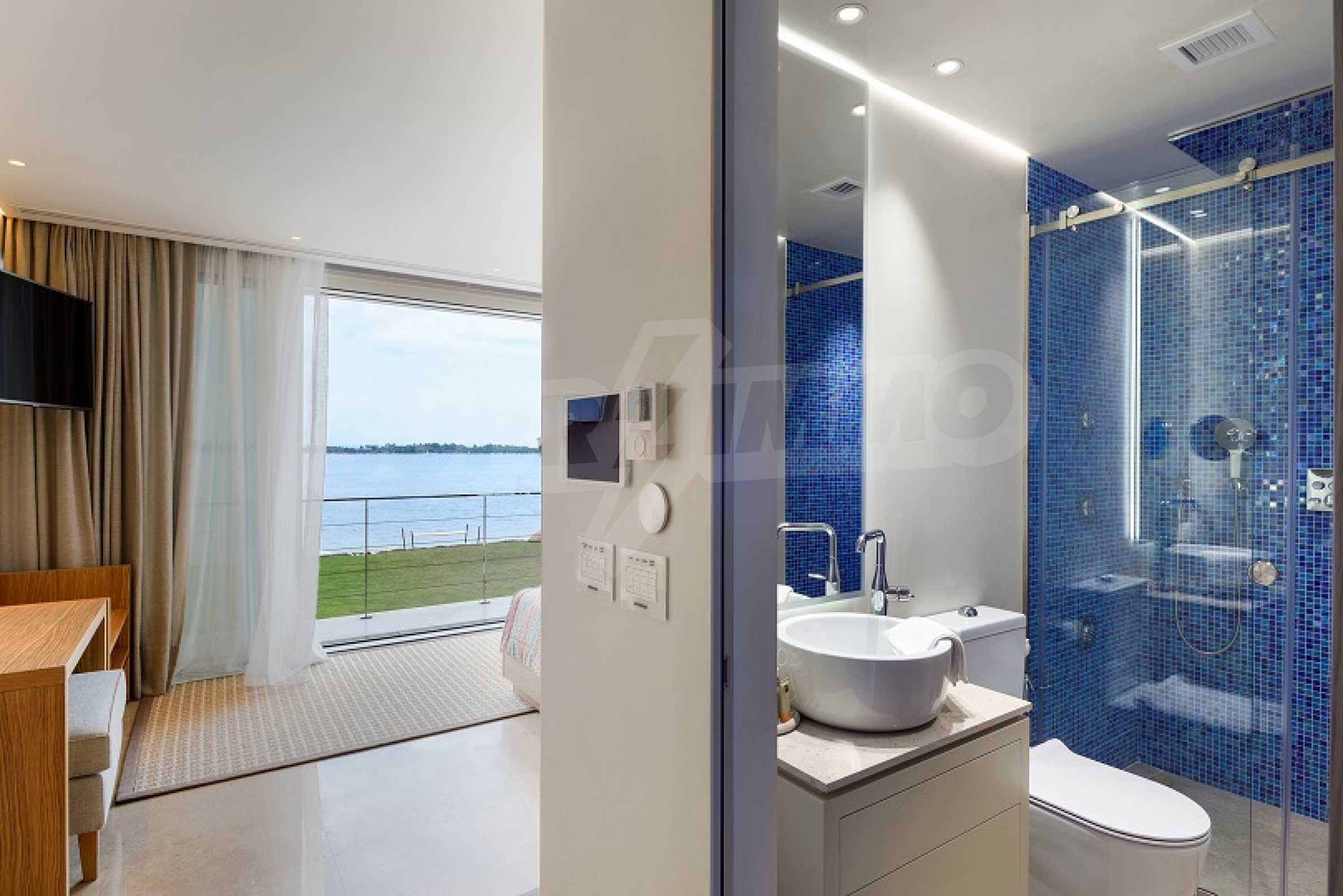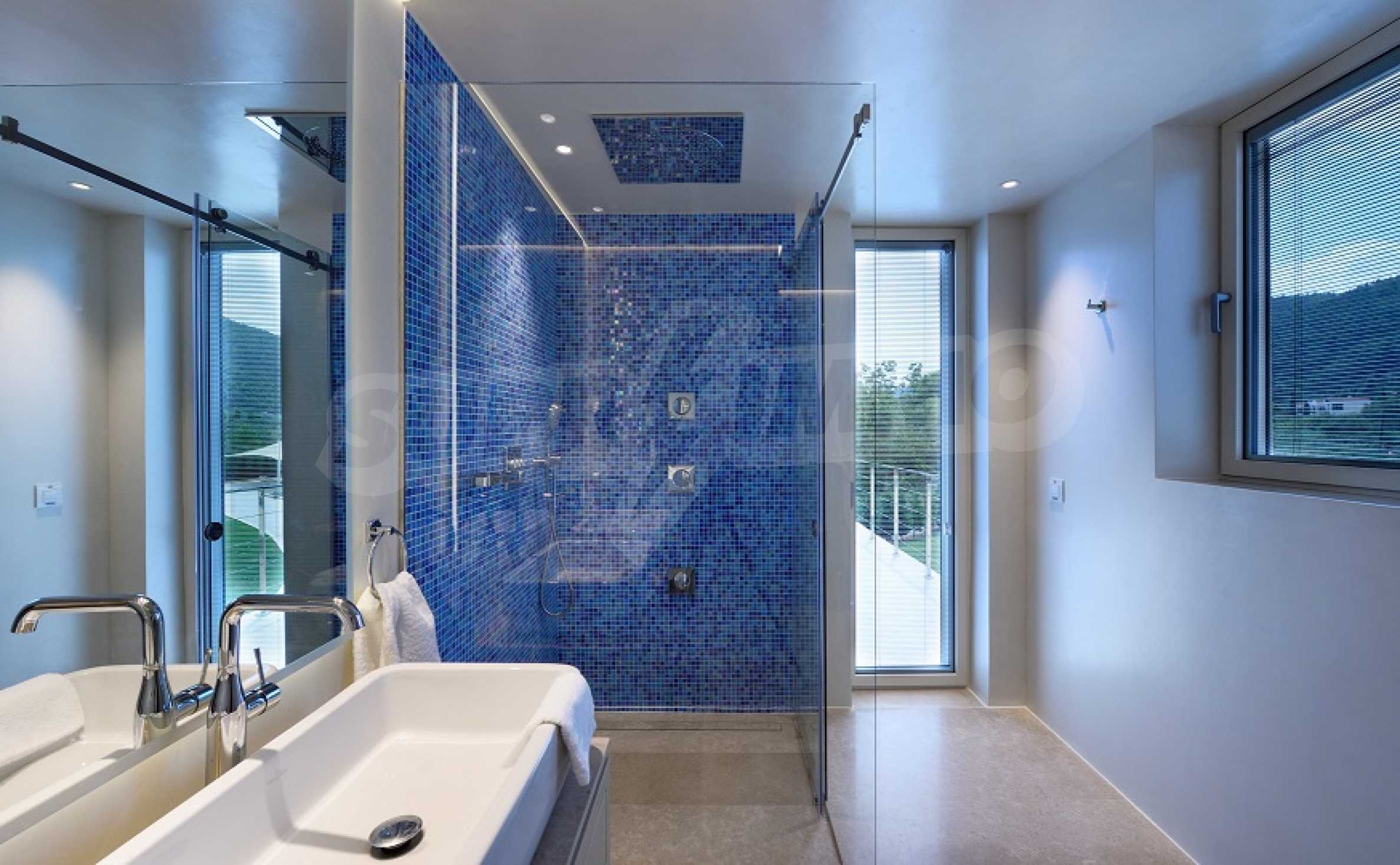 Вилла «Наталия» включает в себя полный спектр современных удобств, предлагаемых с помощью iPad, который управляет инновационным программным обеспечением для автоматизации системы «умный дом» KNX, сочетающим в себе роскошь и самые современные технологии. Одним касанием вы управляете температурой, влажностью, музыкой, освещением, телевизором, затемнением, жалюзи и многим другим. Все восемь спален имеют собственные ванные комнаты, жилые зоны спроектированы таким образом, чтобы вместить всю компанию, но есть несколько четко очерченных маленьких уголков, которые при желании могут легко обеспечить конфиденциальность. Потрясающий вид с виллы Наталия на море, горы и остров Диапорос не имеет себе равных. Терраса виллы с захватывающим видом на море приглашает вас провести вдохновляющие дни и вечера под греческим небом.