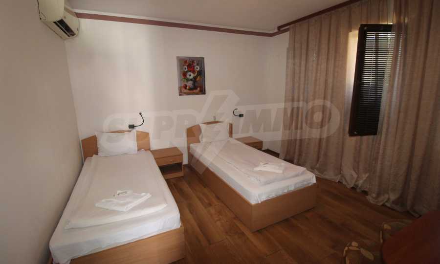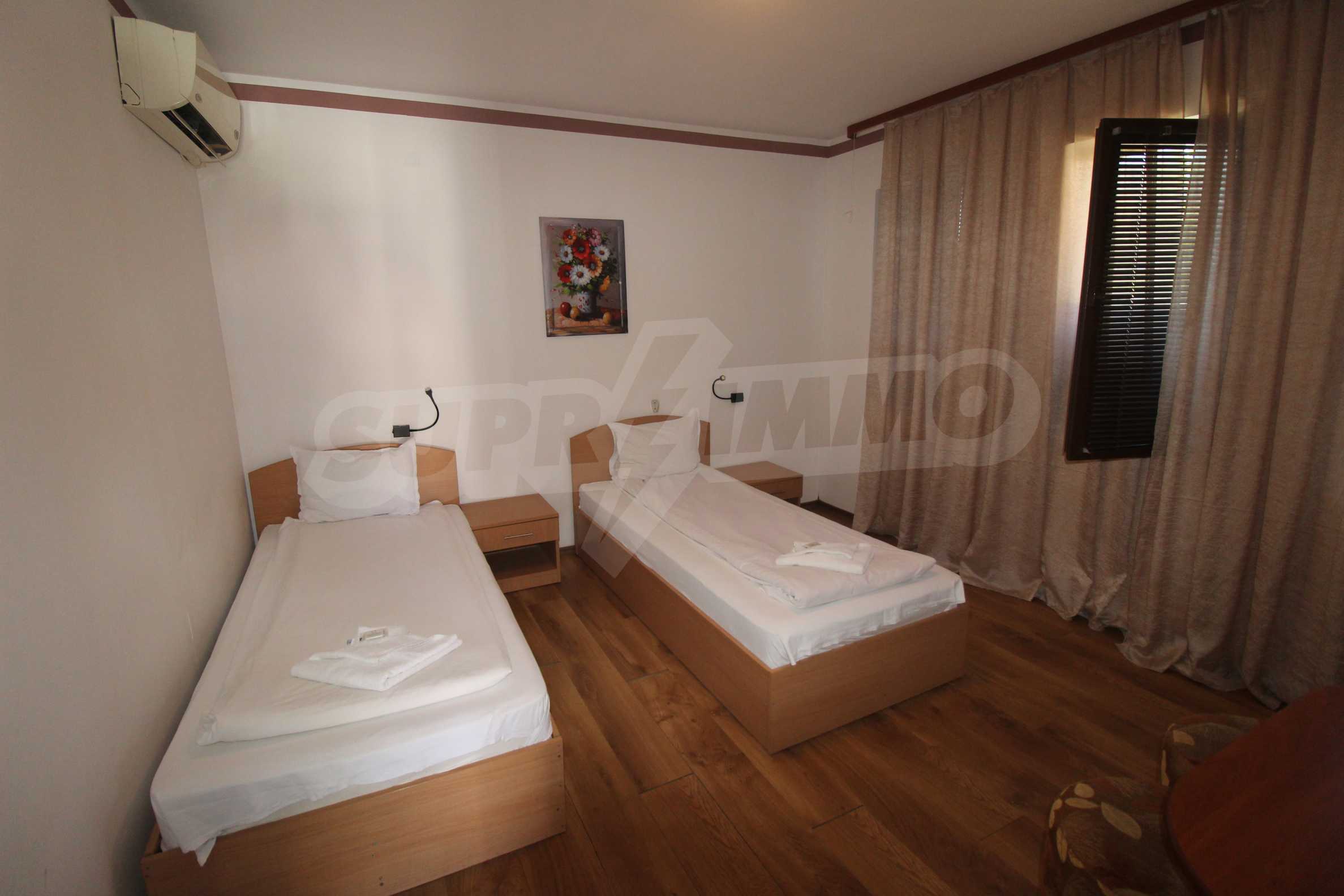 - Второй этаж - восемь двухместных номеров, каждая с ванной комнатой и одна квартира - две двухместные комнаты с ванной.
