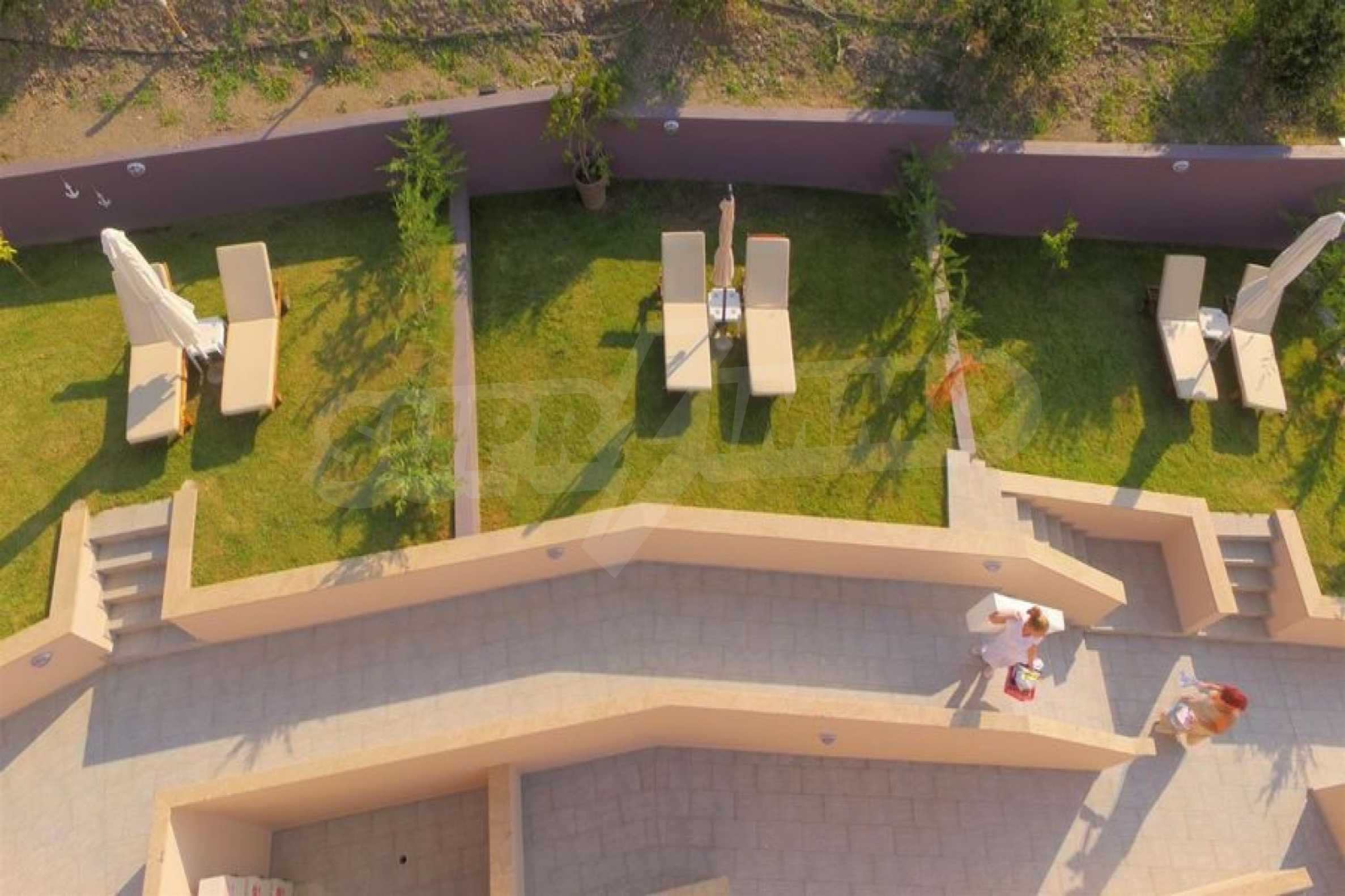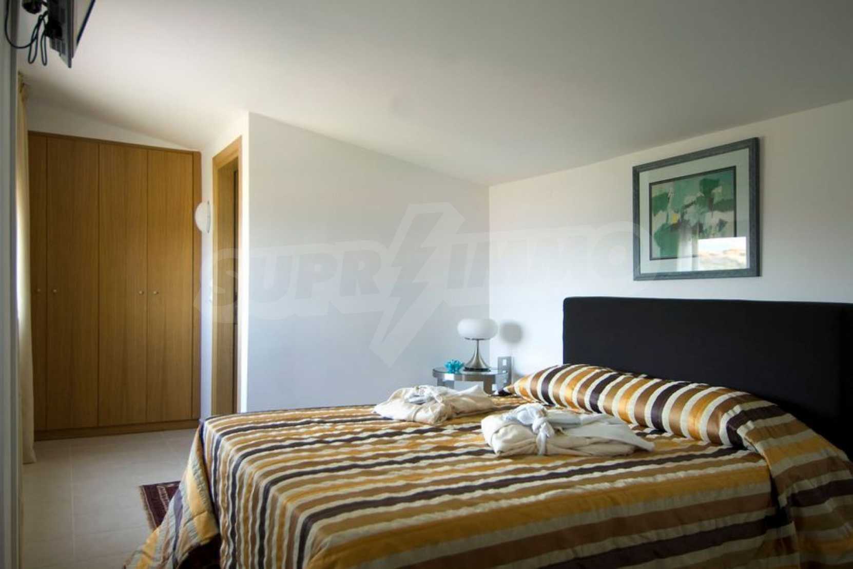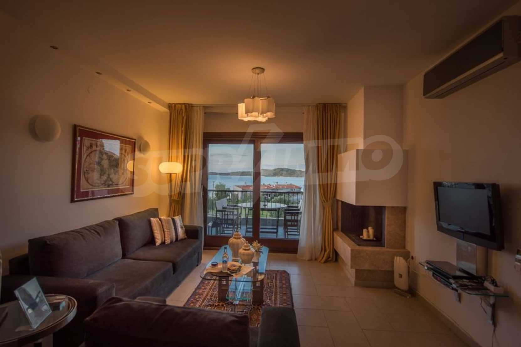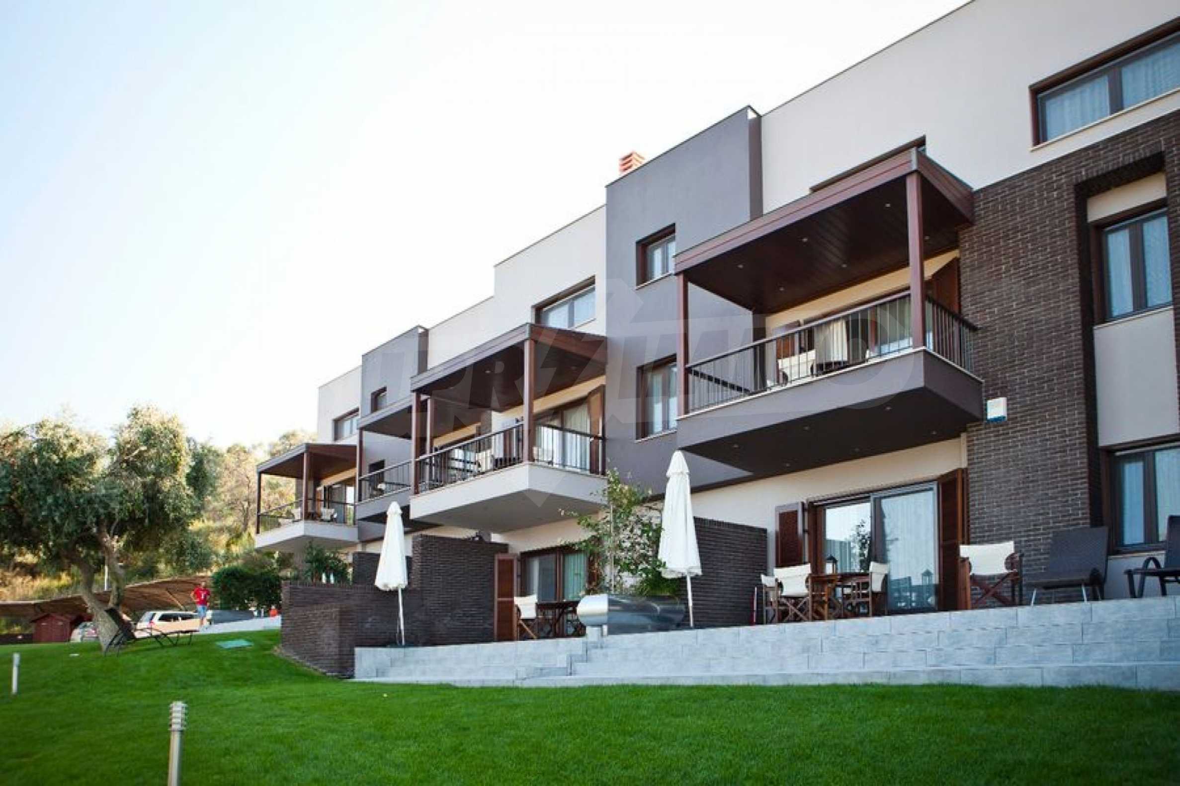 Роскошный двухэтажный таунхаус в комплексе, первый на берегу моря, с прекрасным видом и садом. Он имеет большой балкон, алюминиевые окна, кафельные полы, бойлер, встроенную кухню, бронированную дверь, барбекю и джакузи. Состоит из гостиной, соединенной с кухней, двух спален, ванной комнаты, туалета и кладовой. Это отличный выбор для эксплуатации.